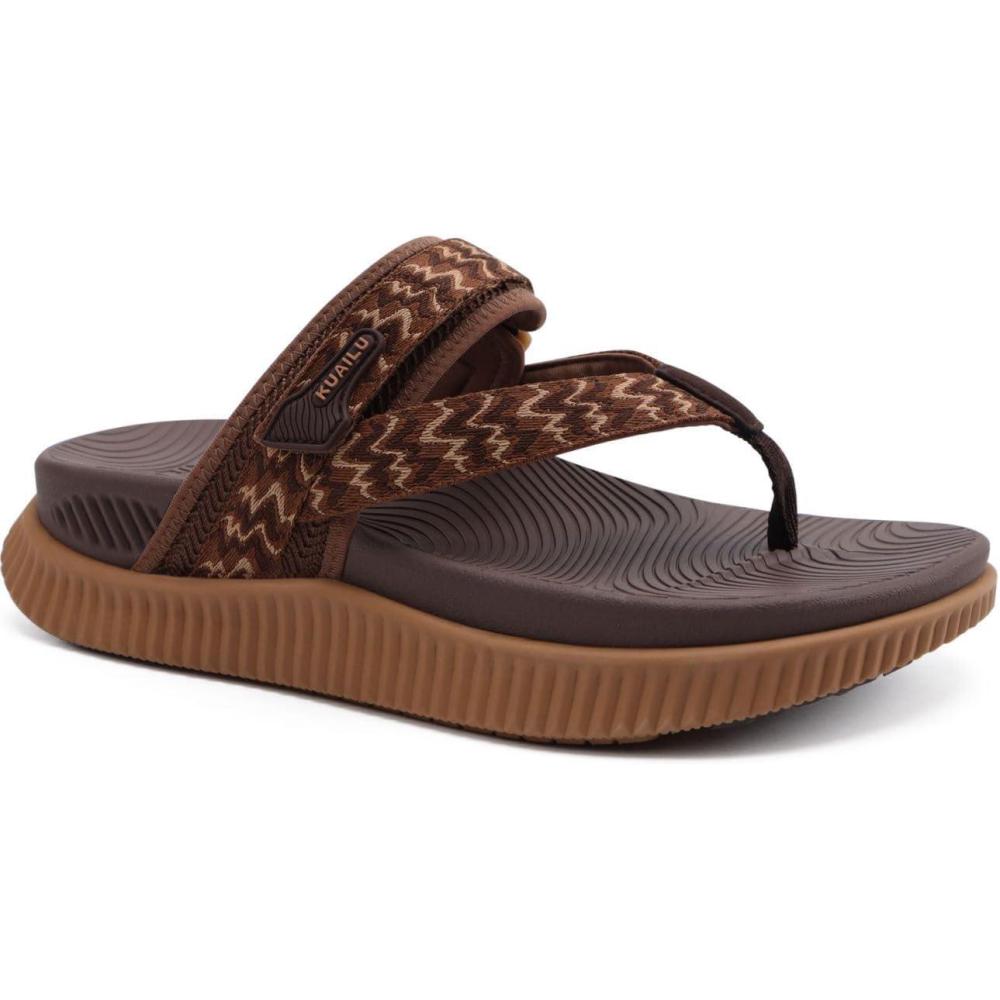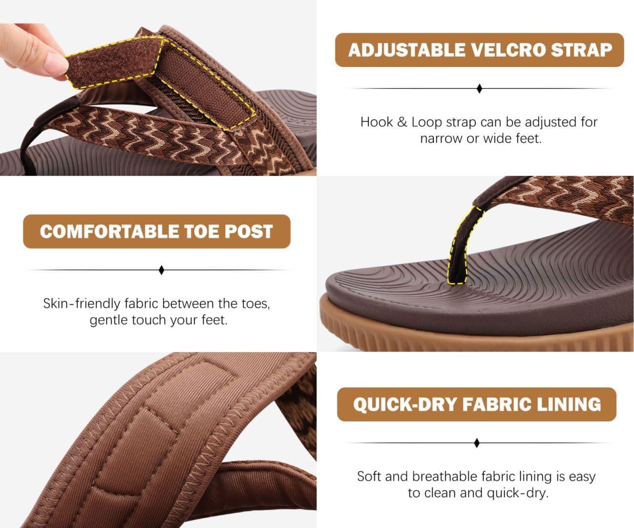 KuaiLu Womens Orthopedic Flip Flops With Arch Support Adjustable Thick Athletic Cushion Recovery Walking Sandals For Woman Ladies Fashion Comfortable Flip-Flop Slides, Water Resistant & Lightweight(Brown Khaki)