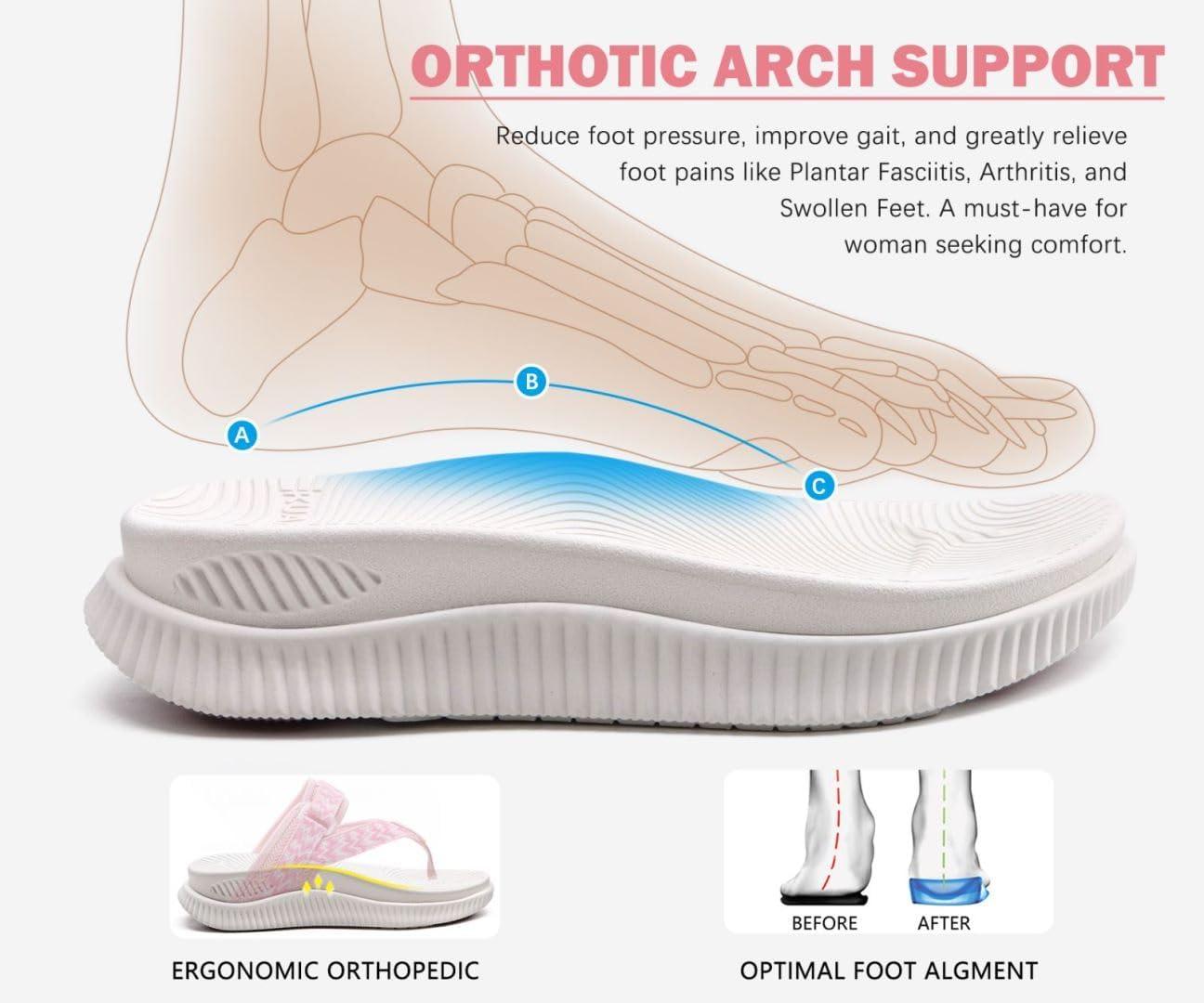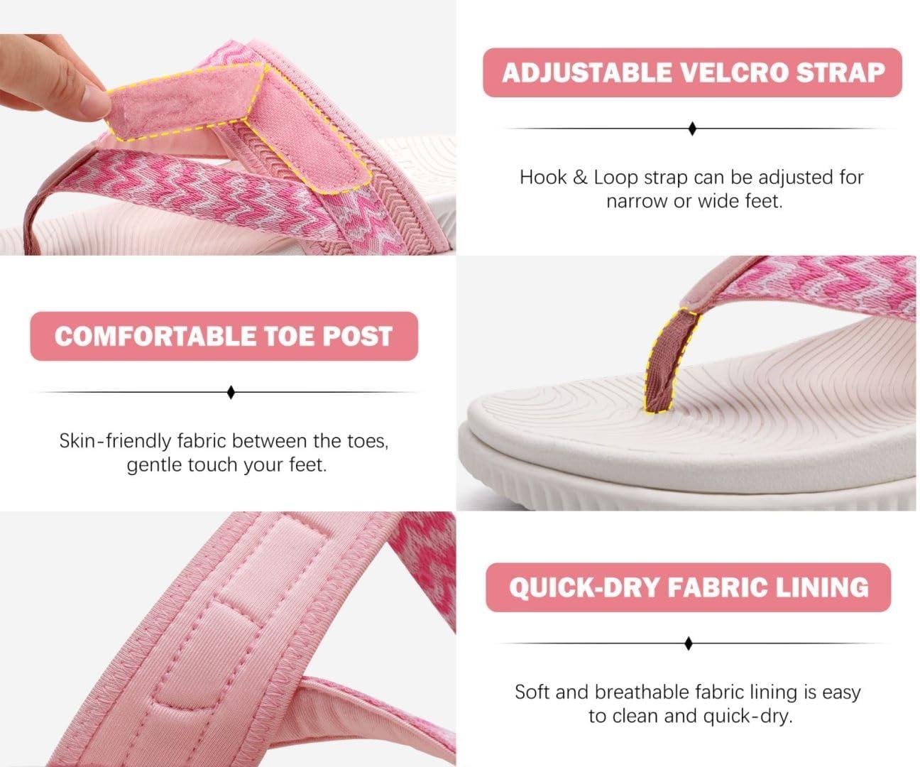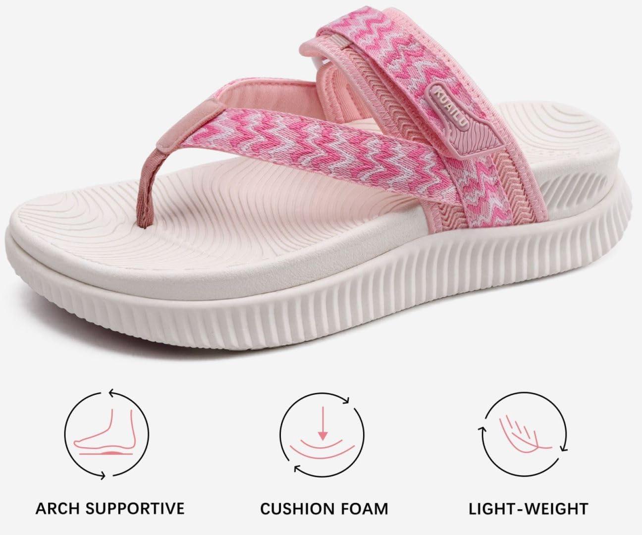 KuaiLu Womens Orthopedic Flip Flops With Arch Support Adjustable Thick Athletic Cushion Recovery Walking Sandals For Woman Ladies Fashion Comfortable Flip-Flop Slides, Water Resistant & Lightweight(Pink White)