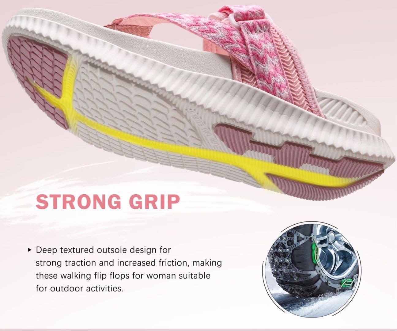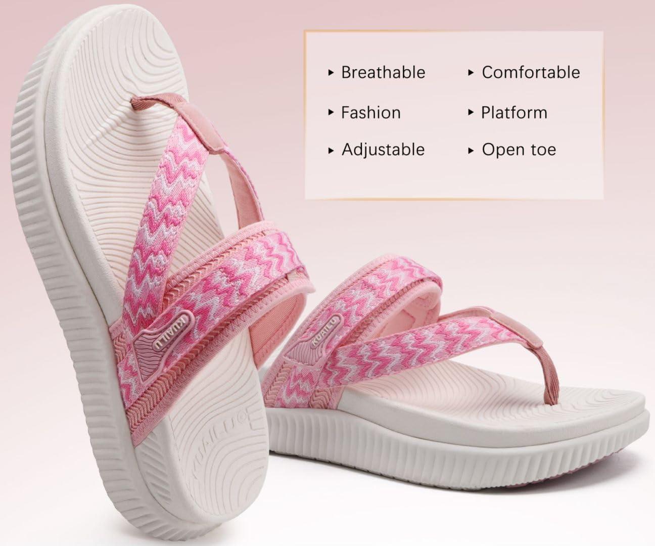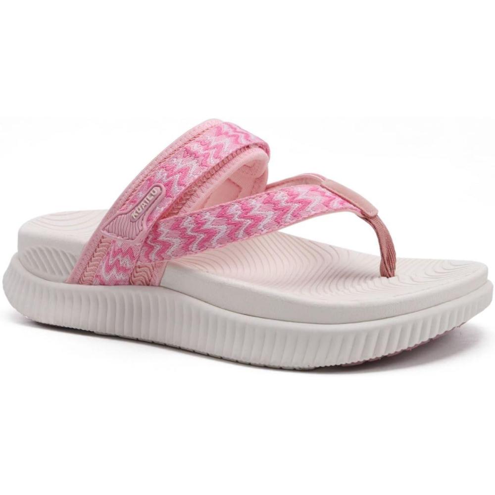 KuaiLu Womens Orthopedic Flip Flops With Arch Support Adjustable Thick Athletic Cushion Recovery Walking Sandals For Woman Ladies Fashion Comfortable Flip-Flop Slides, Water Resistant & Lightweight(Pink White)