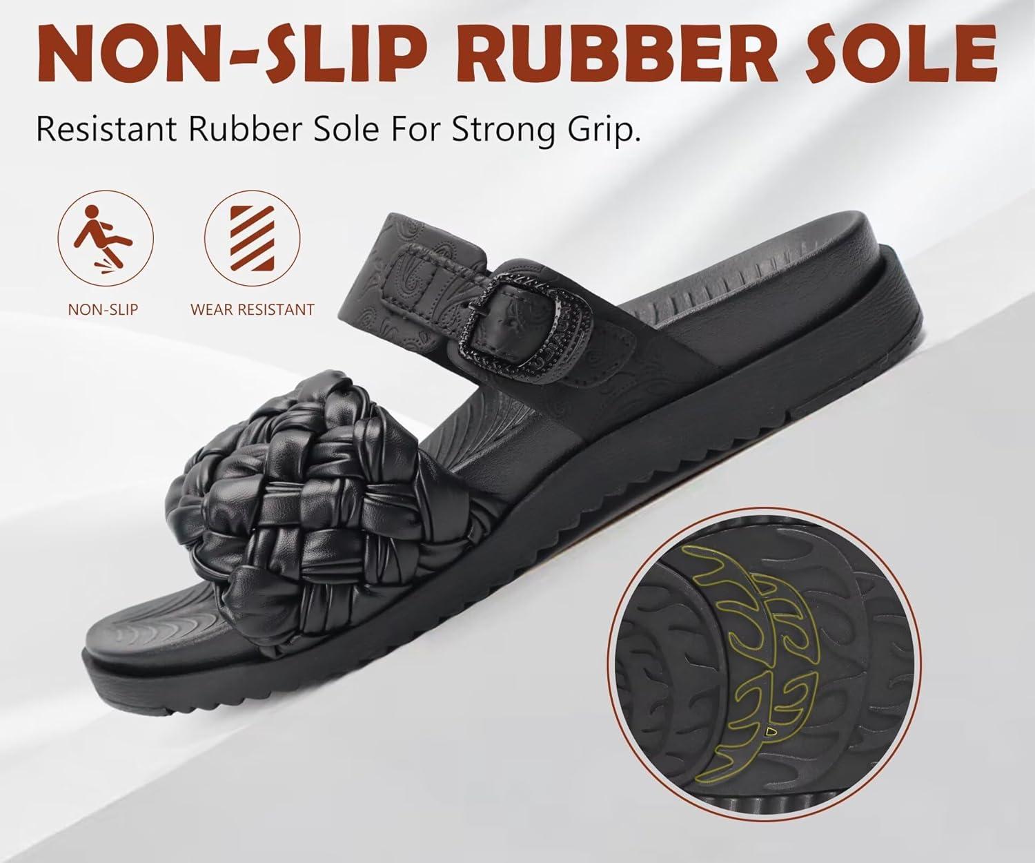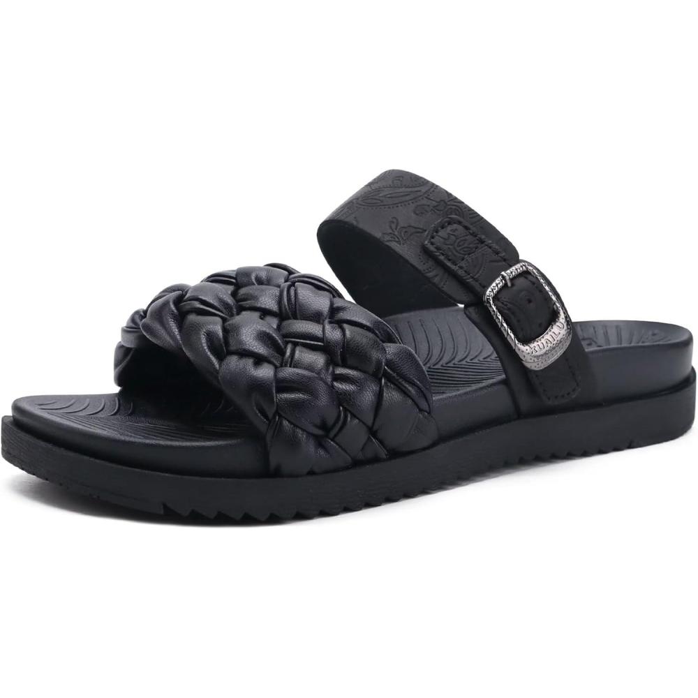 imageKuaiLu Womens Orthopedic Sandals Comfortable Arch Support Fashion Summer Beach Dressy Sandals With Leather Braided Adjustable Open Toe Cushion Travel Outdoor Plantar Fasciitis Shoes US Size511Black