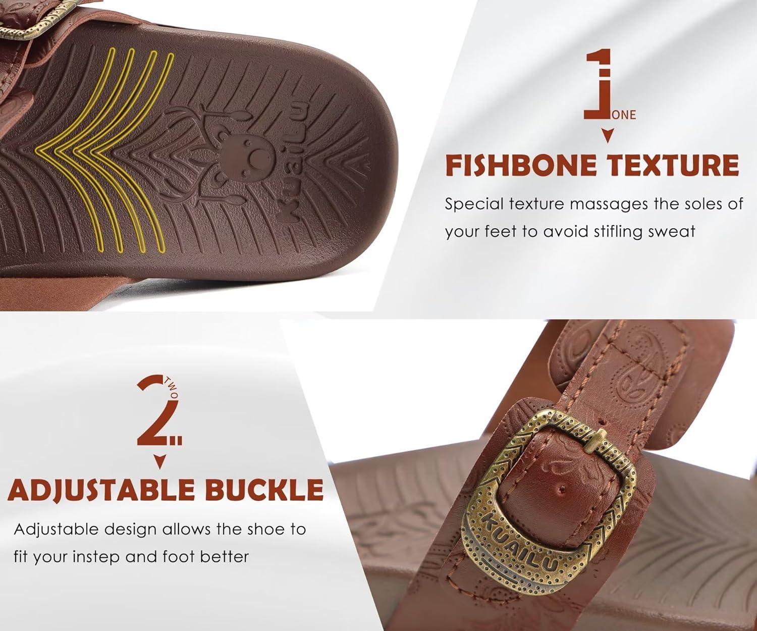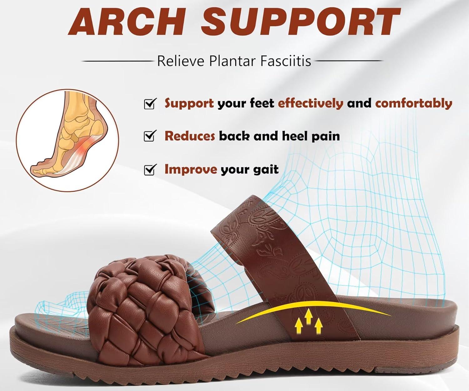 KuaiLu Womens Orthopedic Sandals Comfortable Arch Support Fashion Summer Beach Dressy Sandals With Leather Braided Adjustable Open Toe Cushion Travel Outdoor Plantar Fasciitis Shoes US Size5-11(Brown)