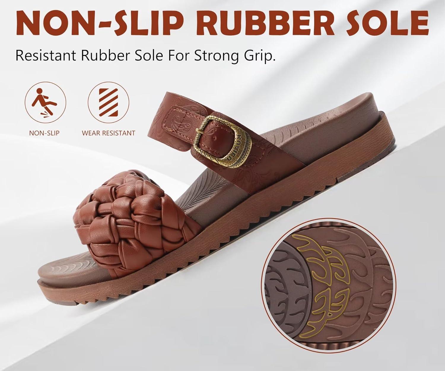 imageKuaiLu Womens Orthopedic Sandals Comfortable Arch Support Fashion Summer Beach Dressy Sandals With Leather Braided Adjustable Open Toe Cushion Travel Outdoor Plantar Fasciitis Shoes US Size511Brown