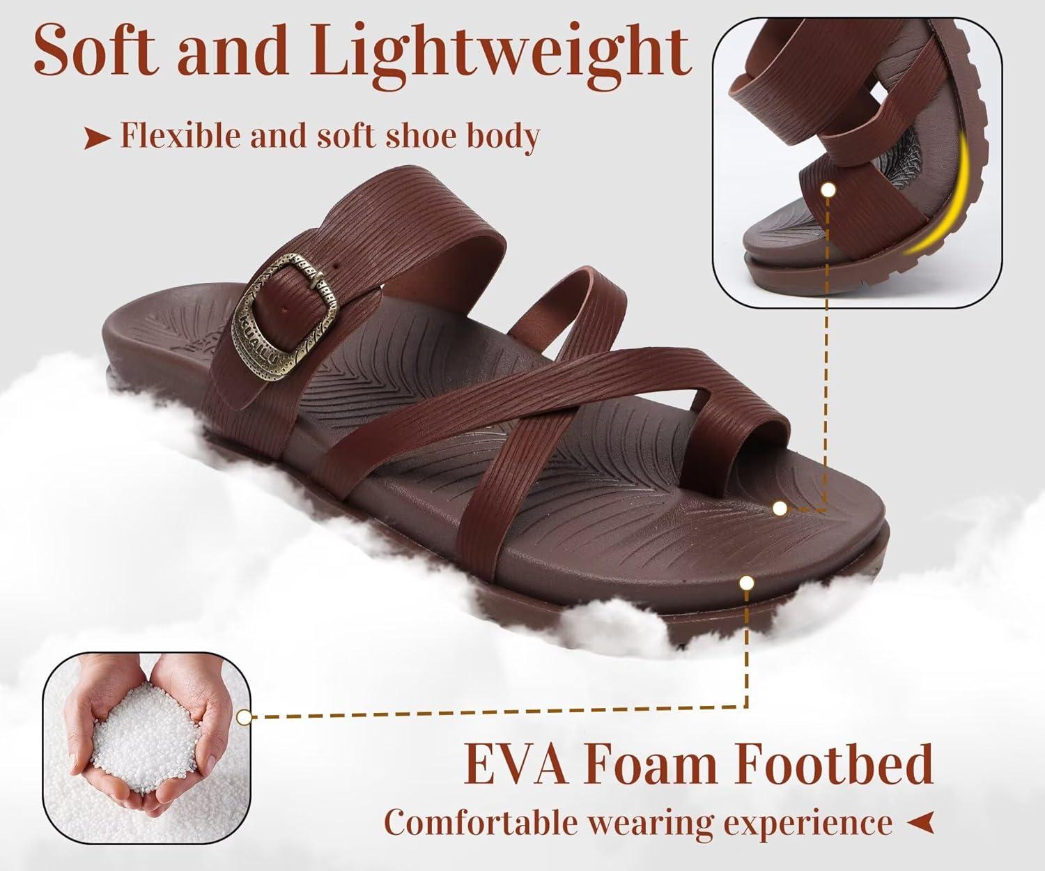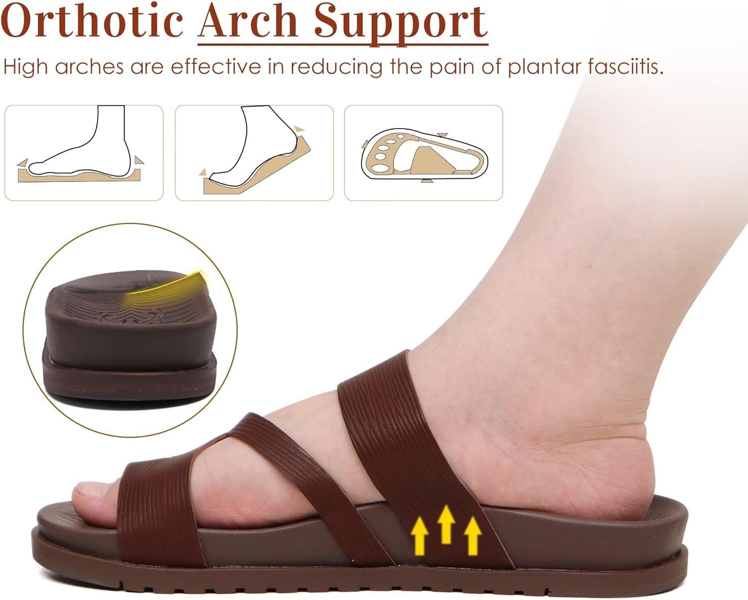 KuaiLu Womens Orthopedic Sandals With Comfortable Arch Support Cushion Yoga Mat Slides Fashion Summer Beach Flat Sandles Adjustable Open Toe Travel Outdoor Plantar Fasciitis Flip Flops US Size 5-11(Brown)