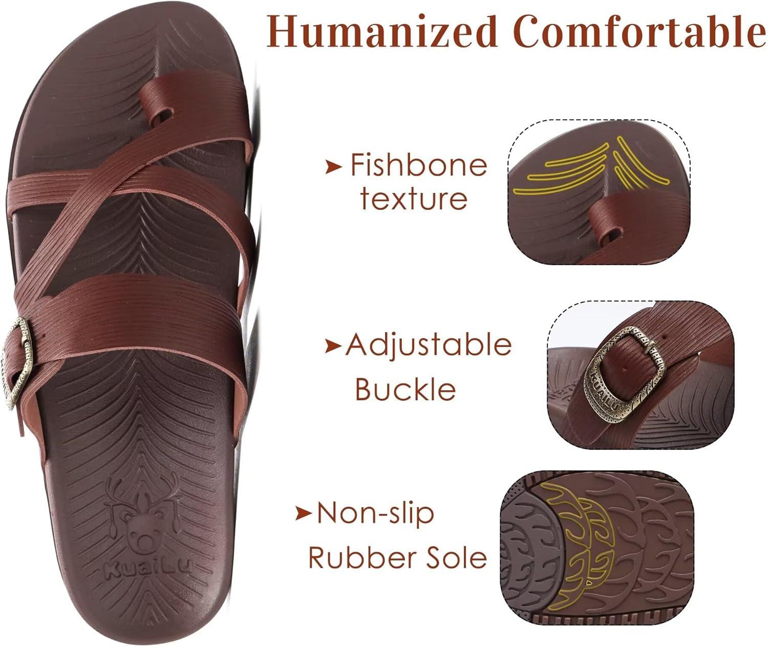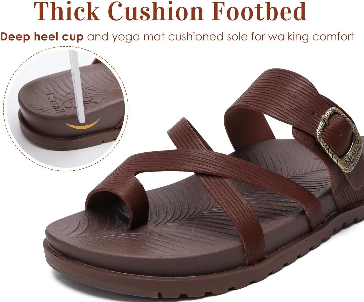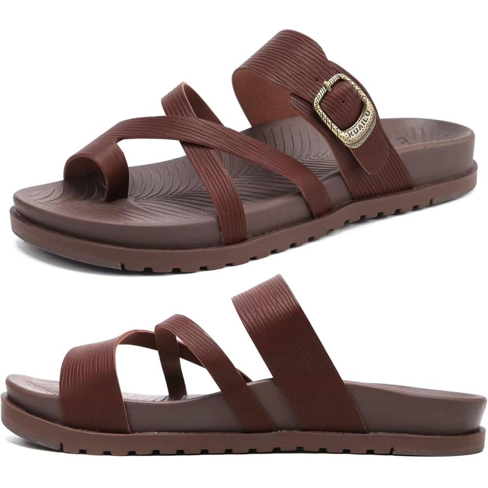 imageKuaiLu Womens Orthopedic Sandals With Comfortable Arch Support Cushion Yoga Mat Slides Fashion Summer Beach Flat Sandles Adjustable Open Toe Travel Outdoor Plantar Fasciitis Flip Flops US Size 511Brown