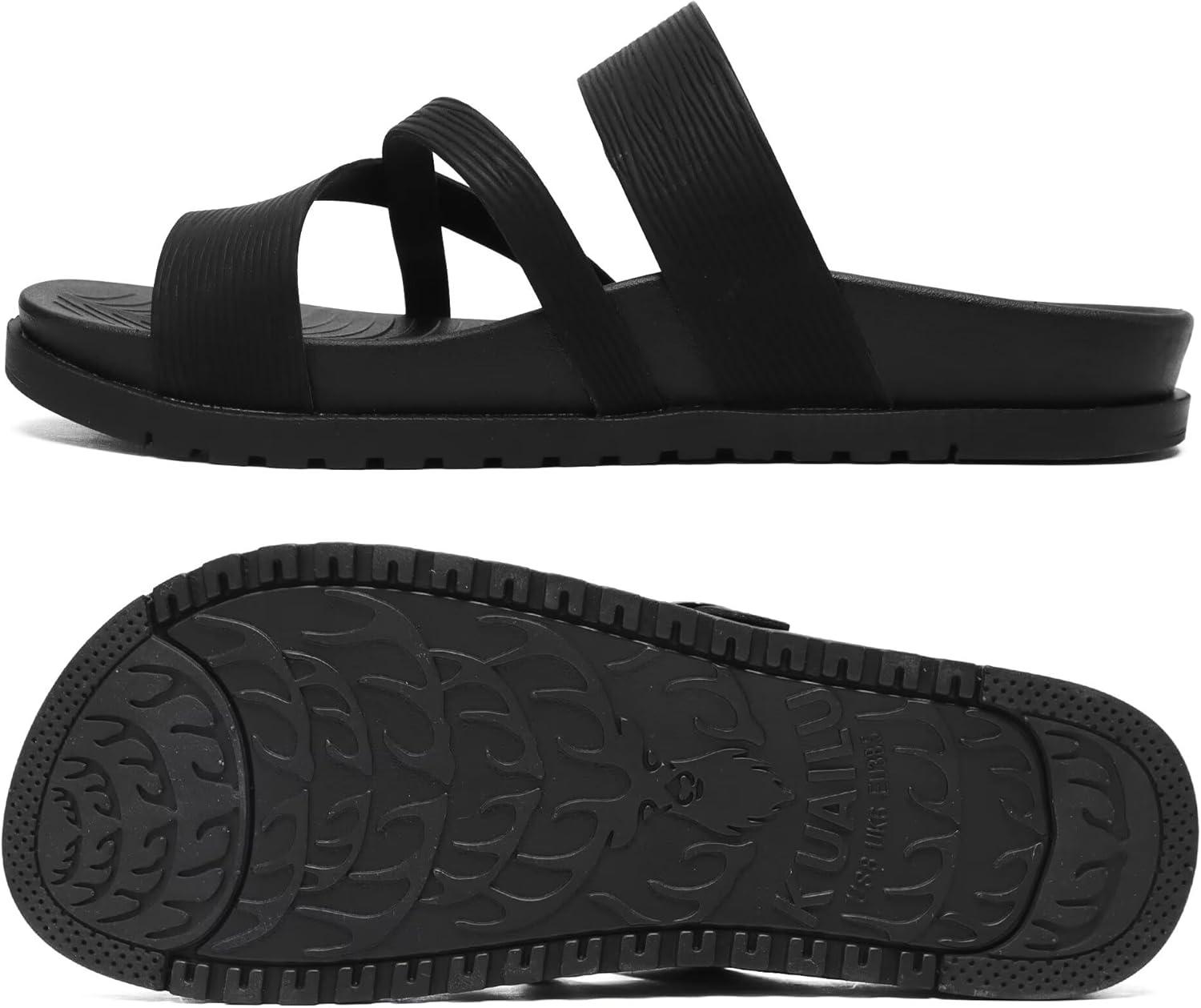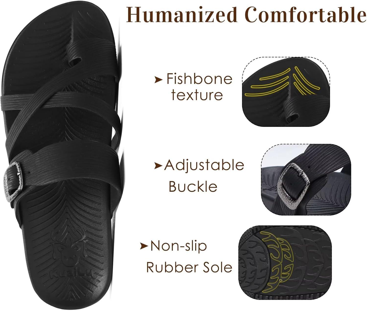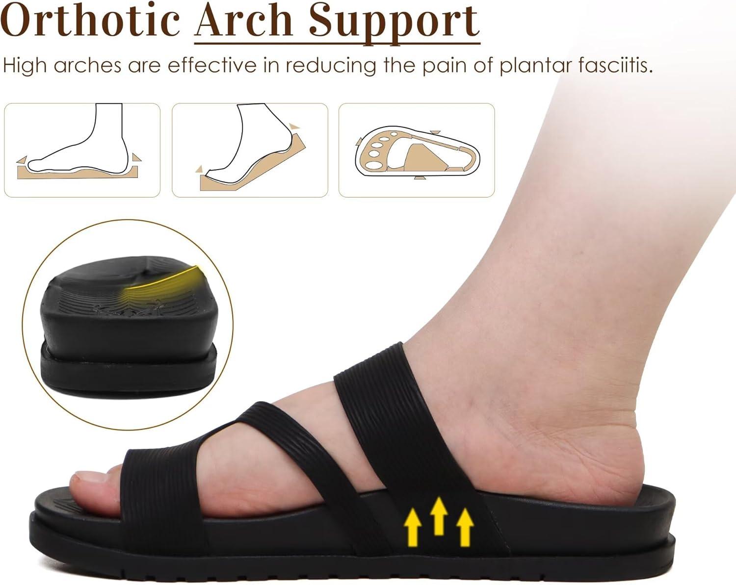 imageKuaiLu Womens Orthopedic Sandals With Comfortable Arch Support Cushion Yoga Mat Slides Fashion Summer Beach Flat Sandles Adjustable Open Toe Travel Outdoor Plantar Fasciitis Flip Flops US Size 511Black