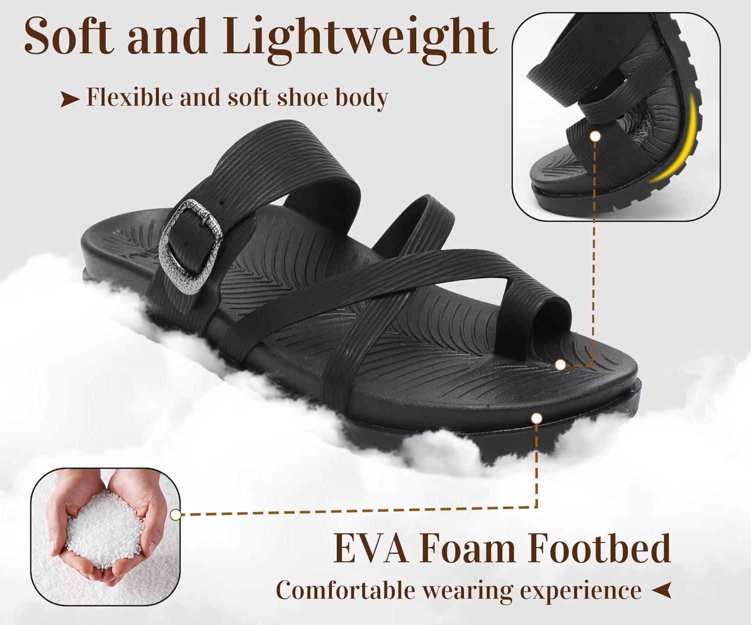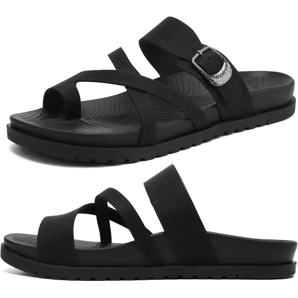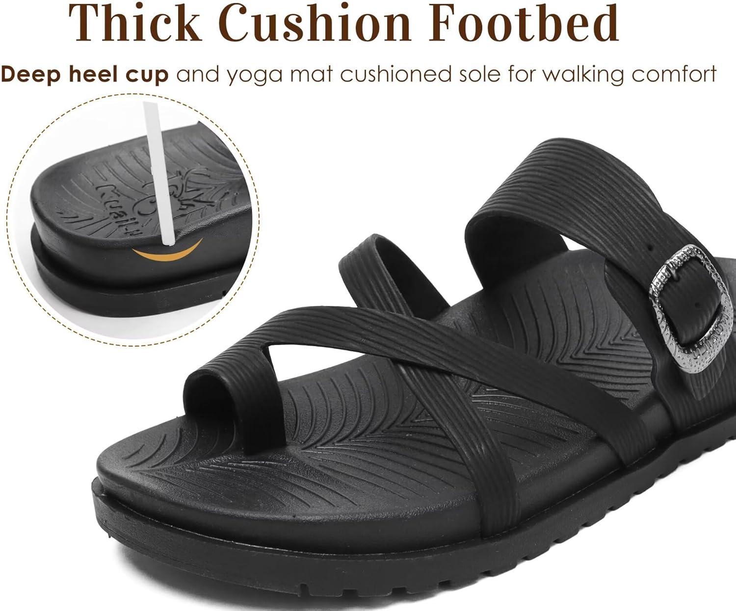 imageKuaiLu Womens Orthopedic Sandals With Comfortable Arch Support Cushion Yoga Mat Slides Fashion Summer Beach Flat Sandles Adjustable Open Toe Travel Outdoor Plantar Fasciitis Flip Flops US Size 511Black