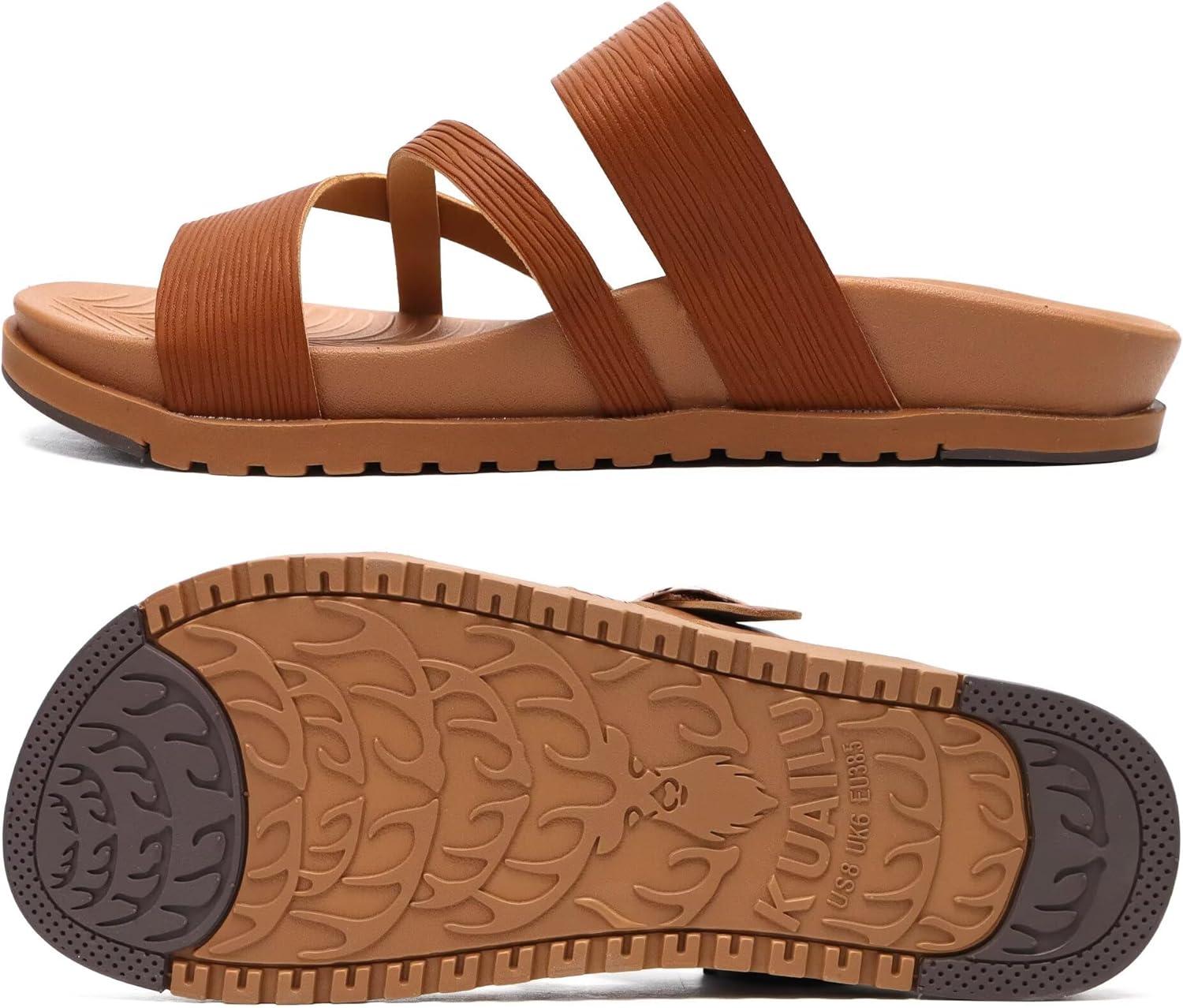 imageKuaiLu Womens Orthopedic Sandals With Comfortable Arch Support Cushion Yoga Mat Slides Fashion Summer Beach Flat Sandles Adjustable Open Toe Travel Outdoor Plantar Fasciitis Flip Flops US Size 511Tan Brown