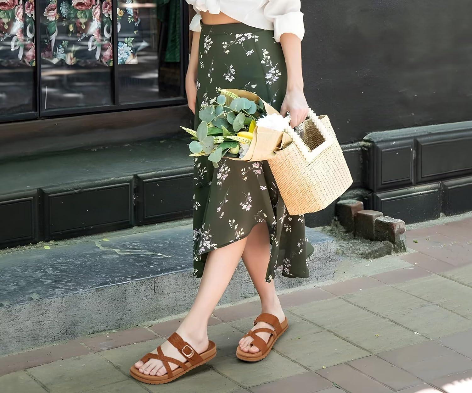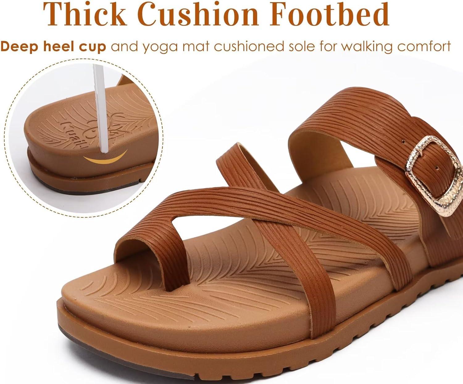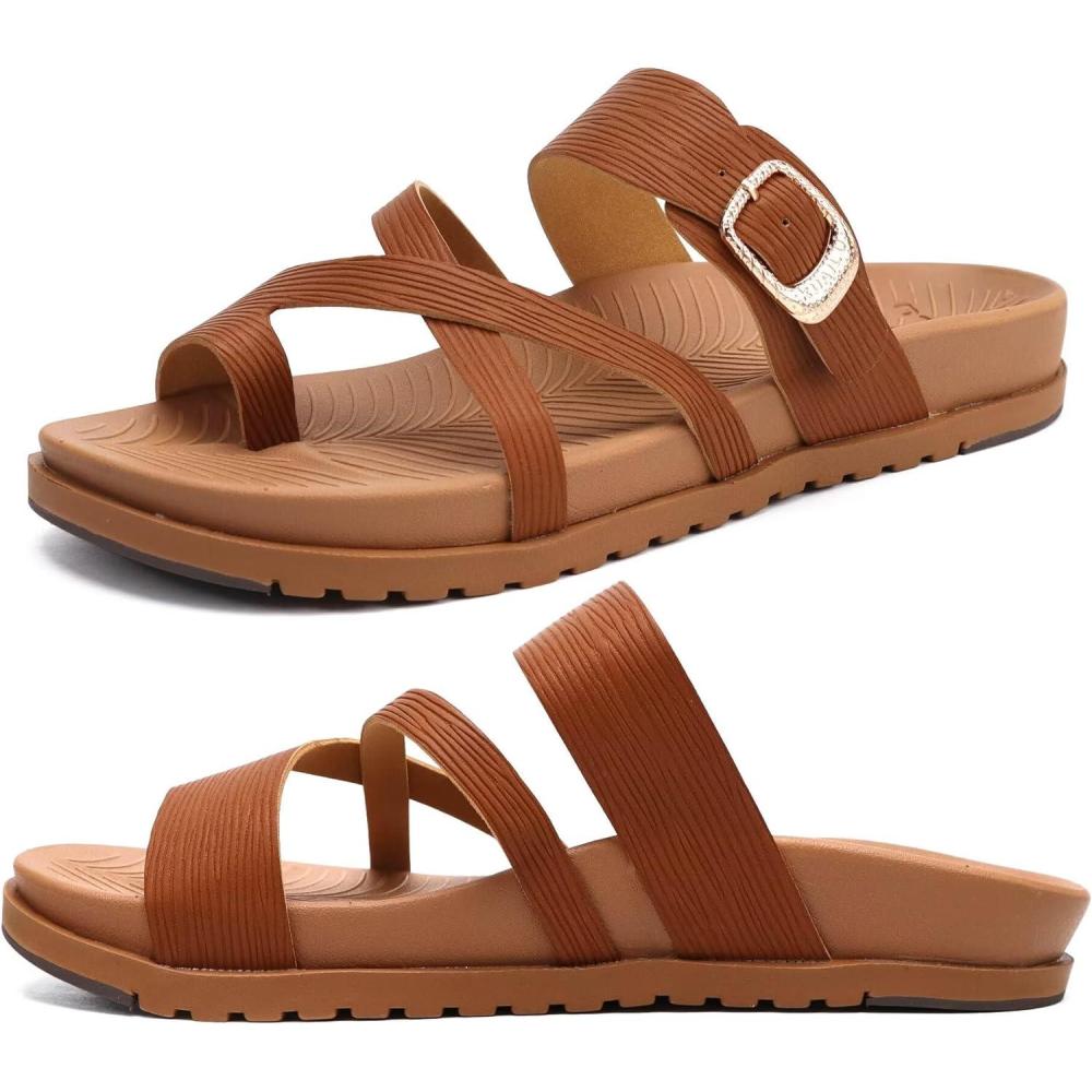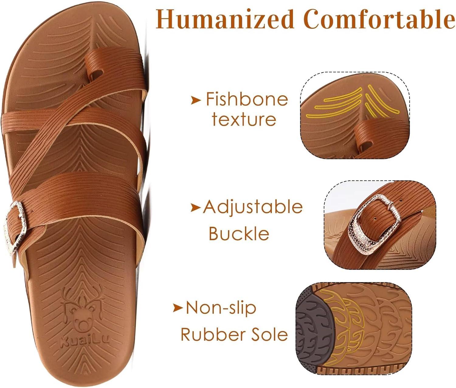KuaiLu Womens Orthopedic Sandals With Comfortable Arch Support Cushion Yoga Mat Slides Fashion Summer Beach Flat Sandles Adjustable Open Toe Travel Outdoor Plantar Fasciitis Flip Flops US Size 5-11(Tan Brown)