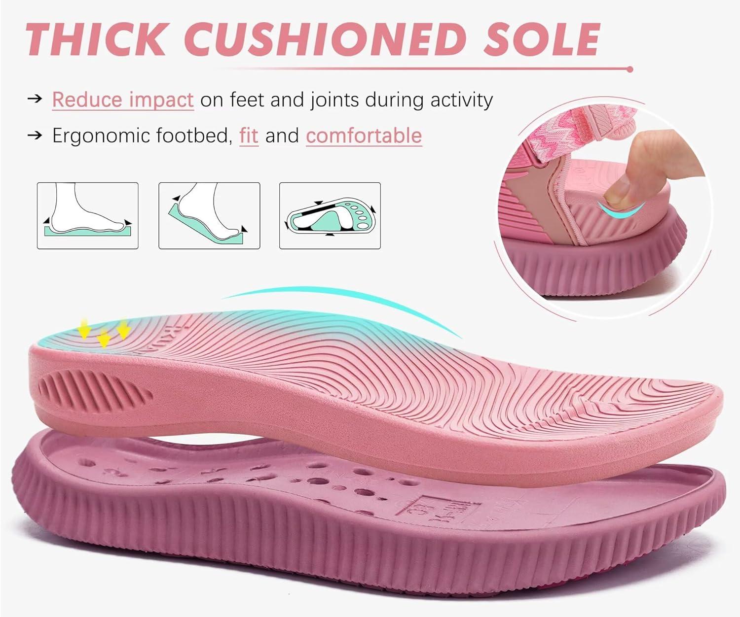 imageKuaiLu Womens Orthopedic Walking Sandals Recovery Sport Outdoor Hiking Water Sandles Thick Athletic Cushion Adjustable Leather Strap Sandals with Comfortable Plantar Fasciitis Arch SupportPink