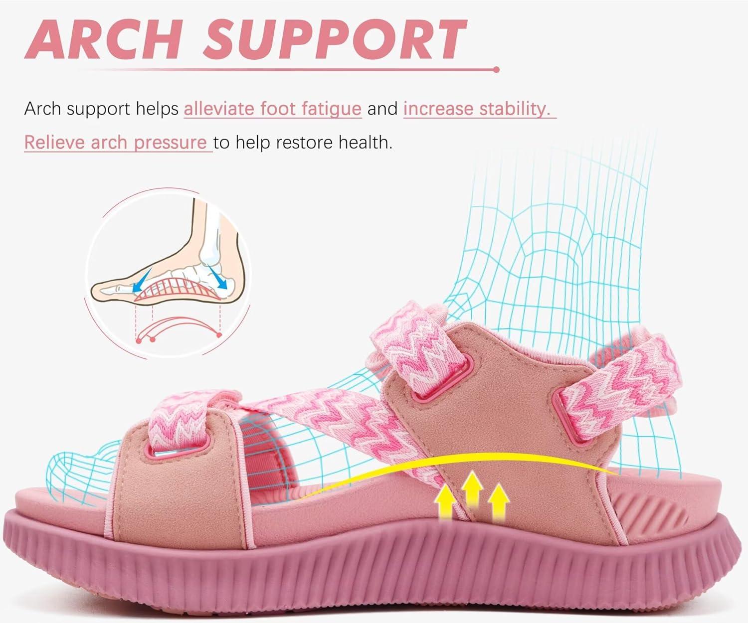 KuaiLu Womens Walking Sandals Comfortable Plantar Fasciitis Arch Support Orthopedic Recovery Sport Outdoor Hiking Sandles Thick Athletic Cushion Adjustable Strap Sandals for Travel Camping