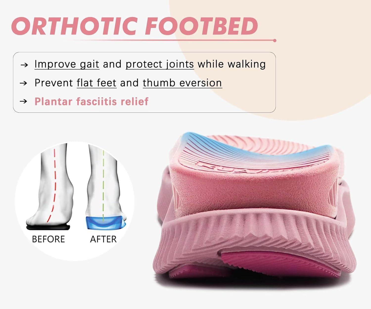 KuaiLu Womens Orthopedic Walking Sandals Recovery Sport Outdoor Hiking Water Sandles Thick Athletic Cushion Adjustable Leather Strap Sandals with Comfortable Plantar Fasciitis Arch Support(Pink White)