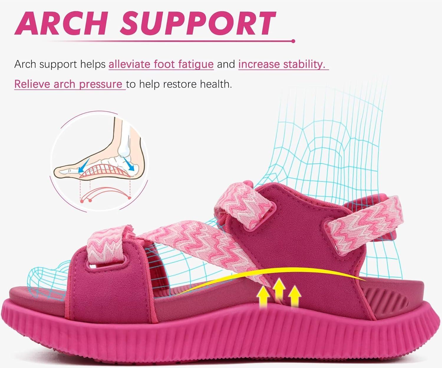 KuaiLu Womens Walking Sandals Comfortable Plantar Fasciitis Arch Support Orthopedic Recovery Sport Outdoor Hiking Sandles Thick Athletic Cushion Adjustable Strap Sandals for Travel Camping