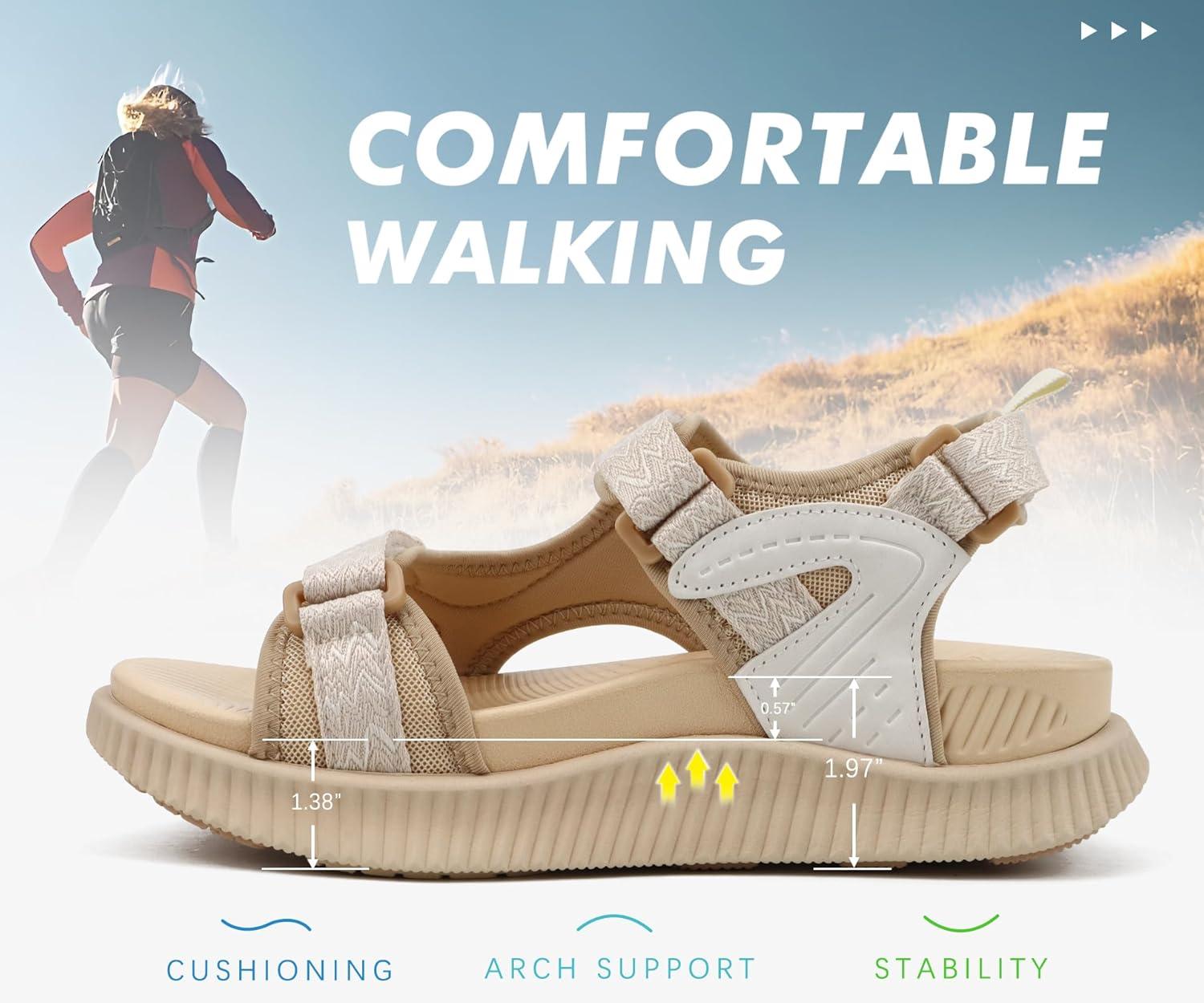 Save up to 40% on KuaiLu Womens Orthopedic Walking Sandals with Comfortable Arch Support Recovery Sport Relief Plantar Fasciitis Summer Outdoor Hiking Adjustable Strap Platform Cushion Shoes(Light Beige) styles during our end-of-season sale.