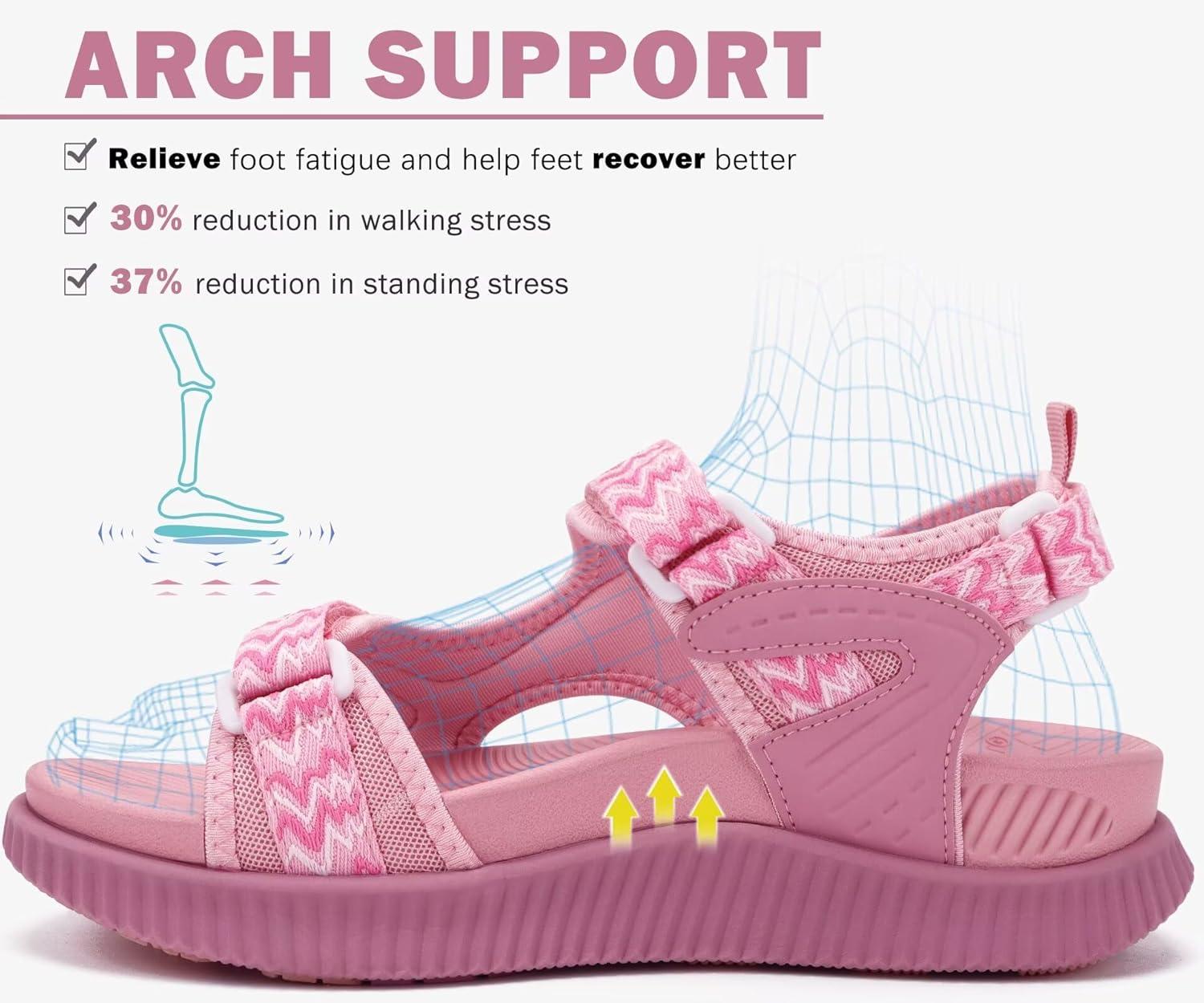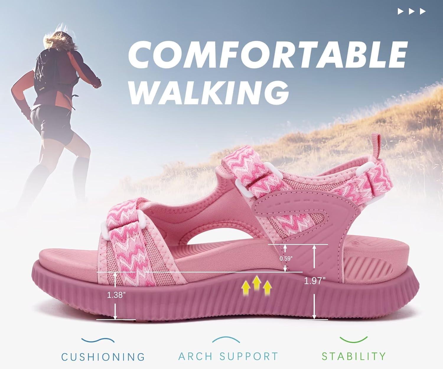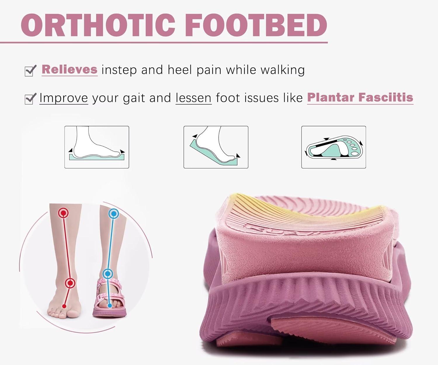 KuaiLu Womens Orthopedic Walking Sandals with Comfortable Arch Support Recovery Sport Relief Plantar Fasciitis Summer Outdoor Hiking Adjustable Strap Platform Cushion Shoes(Pink)