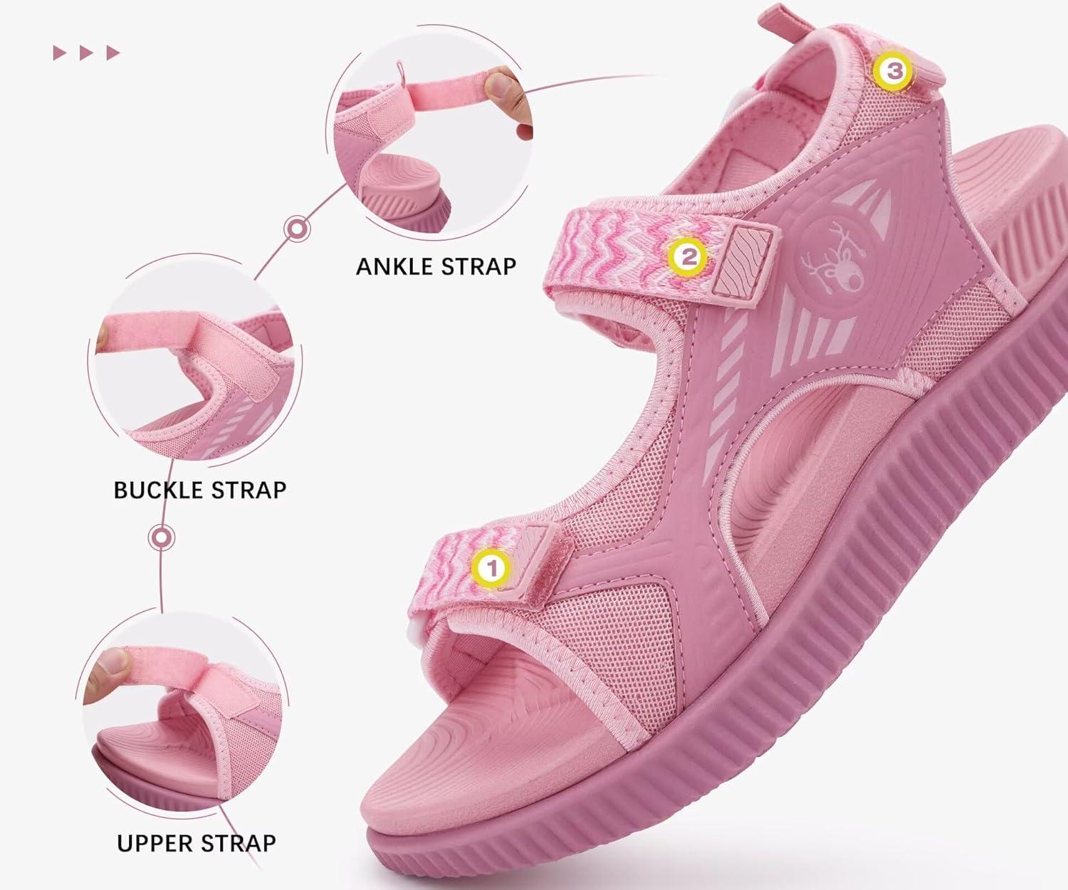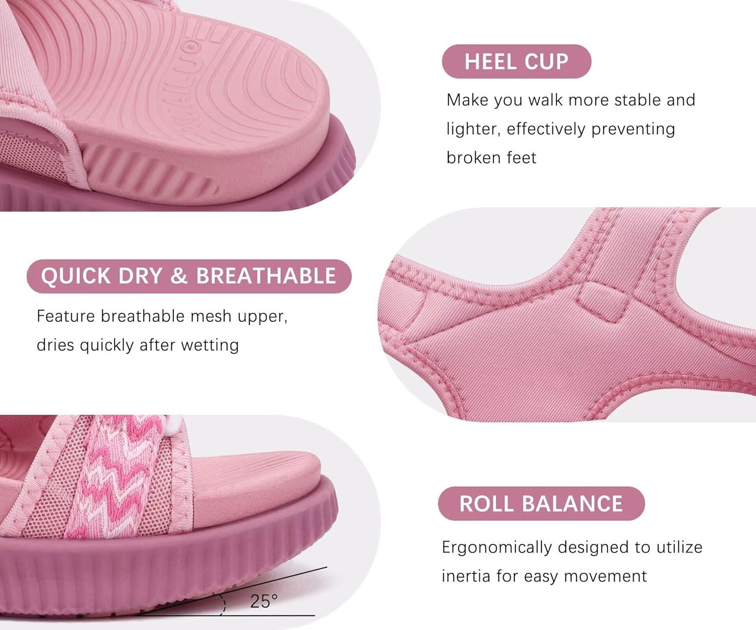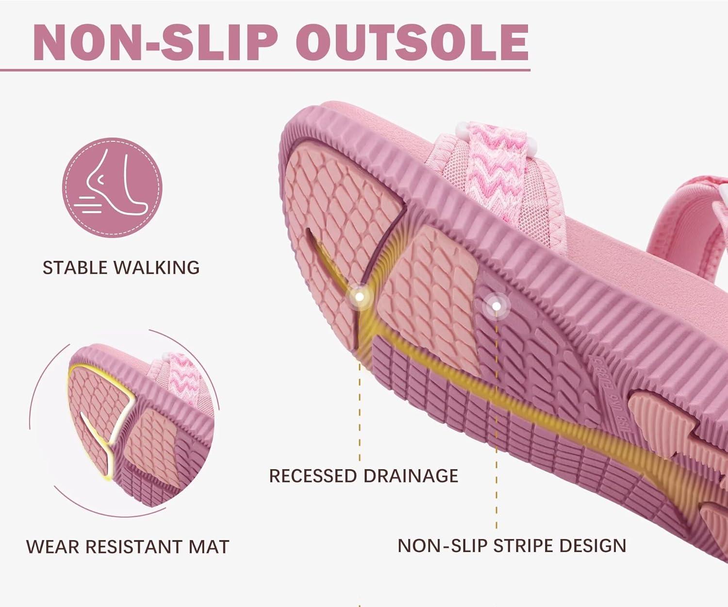 KuaiLu Womens Orthopedic Walking Sandals with Comfortable Arch Support Recovery Sport Relief Plantar Fasciitis Summer Outdoor Hiking Adjustable Strap Platform Cushion Shoes(Pink)