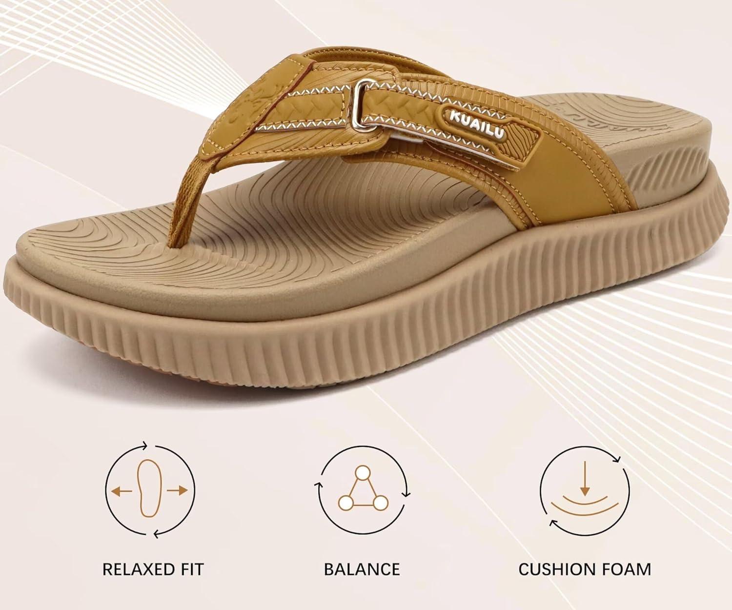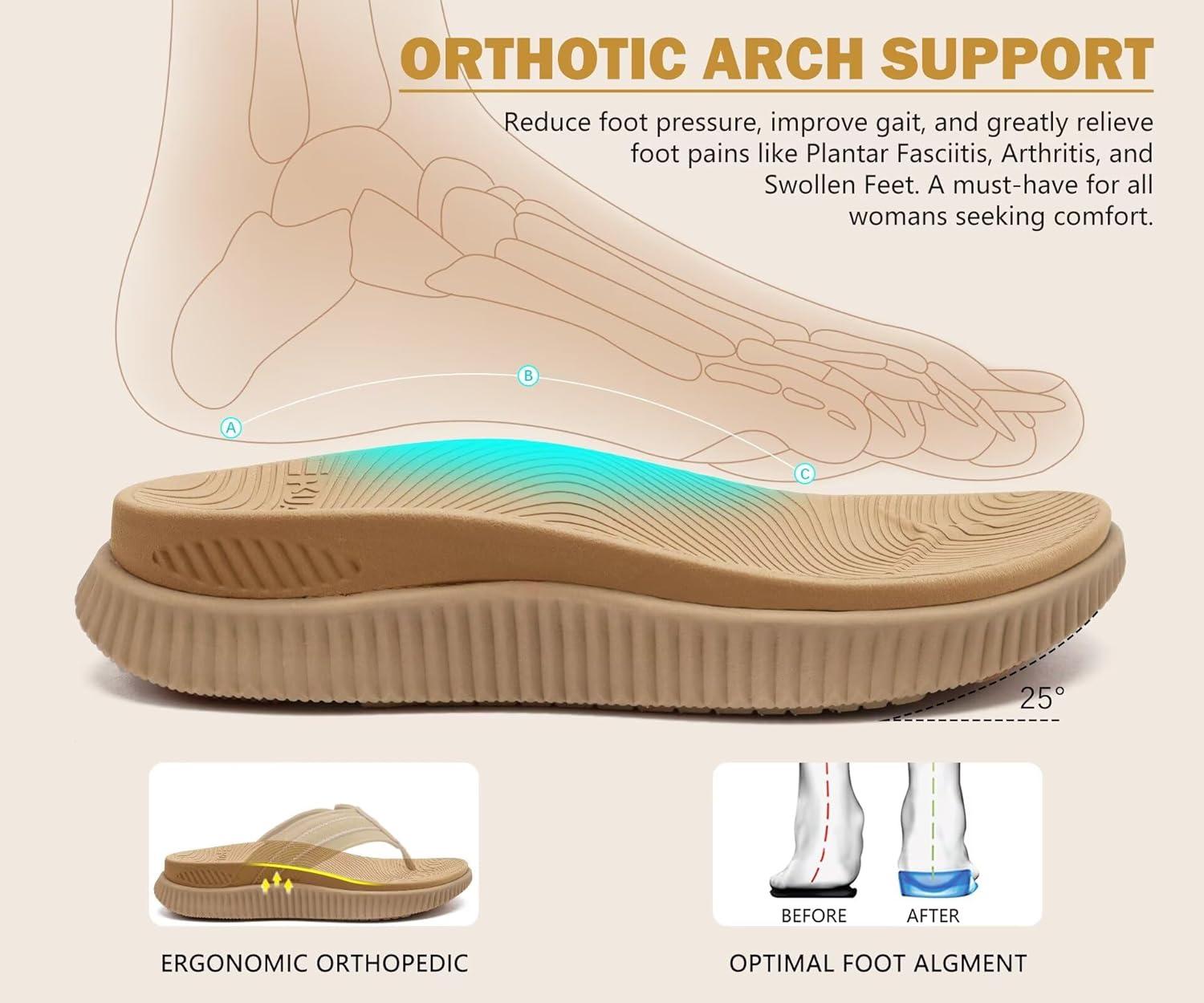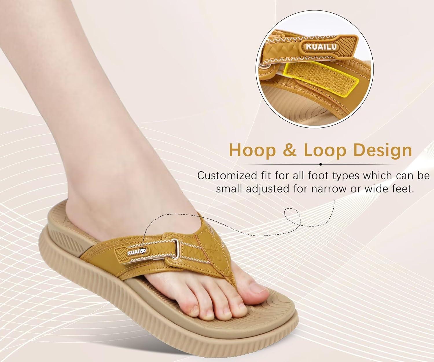KuaiLu Womens Orthotic Cushion Flip Flops Sport Recovery Walking Sandals for Women with Comfortable Arch Support – Adjustable Flatform Slip On Indoor Outdoor For Summer Casual(Beige)