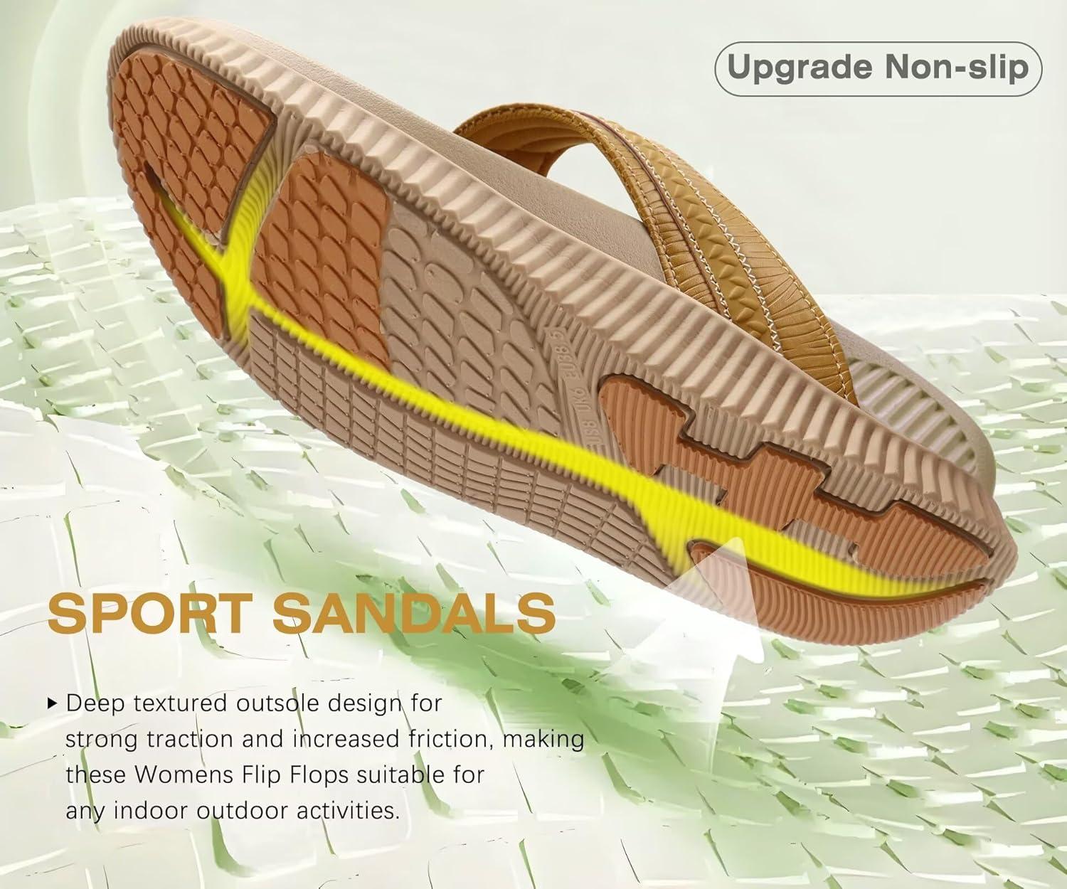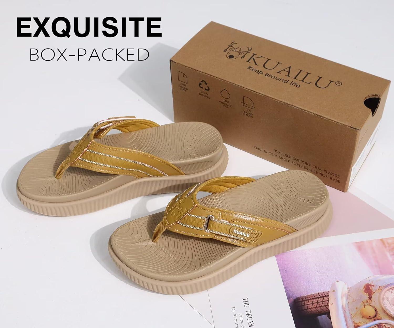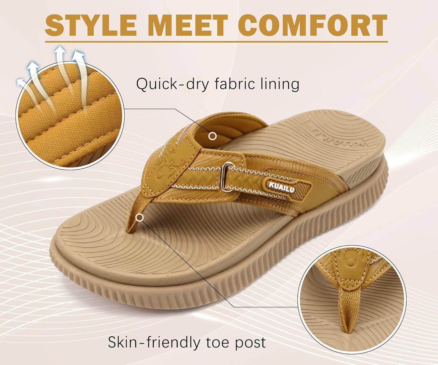 KuaiLu Womens Orthotic Cushion Flip Flops Sport Recovery Walking Sandals for Women with Comfortable Arch Support – Adjustable Flatform Slip On Indoor Outdoor For Summer Casual(Beige)