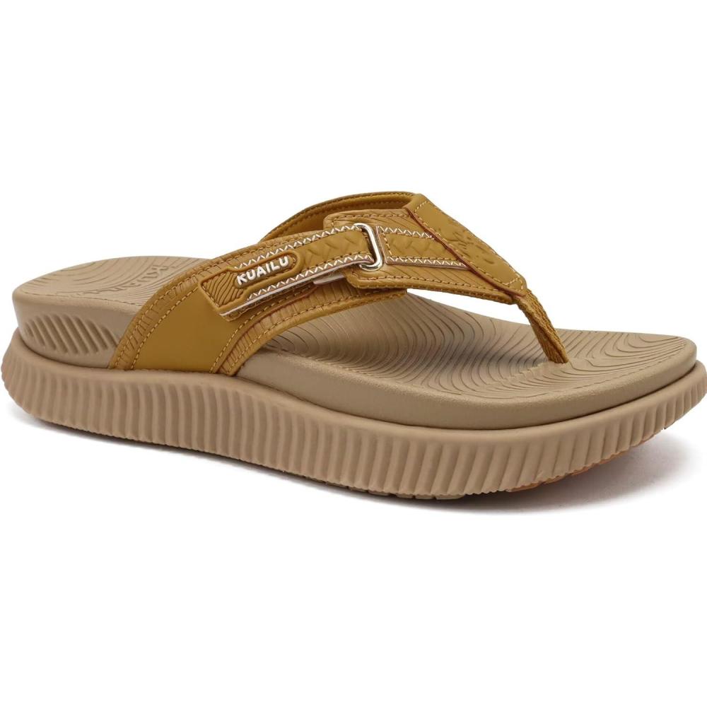 imageKuaiLu Flip Flops for Women With Arch Support Ladies Soft Yoga Mat Cushion Platform Thong Sandals Dressy Womans Lightweight Summer Slip On Beach Flip Flop Sandles Khaki US9