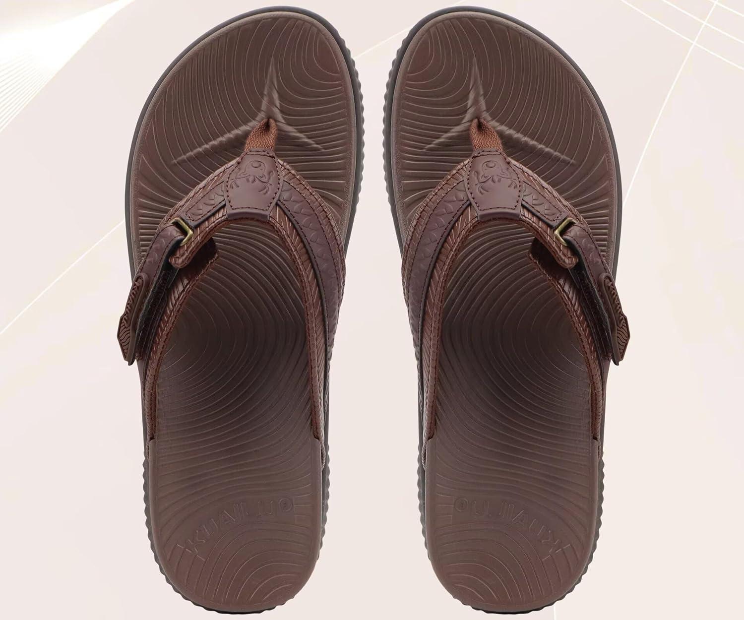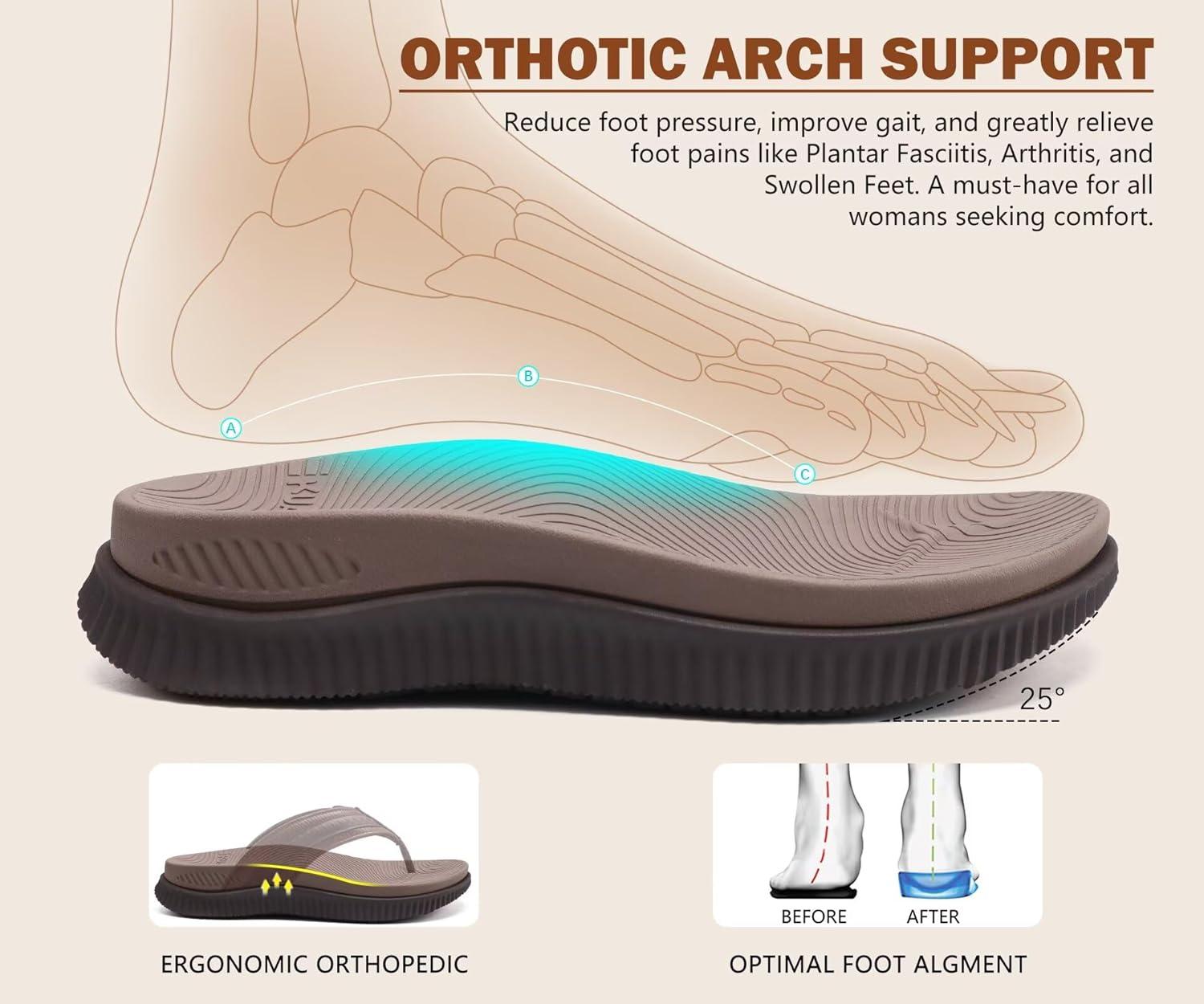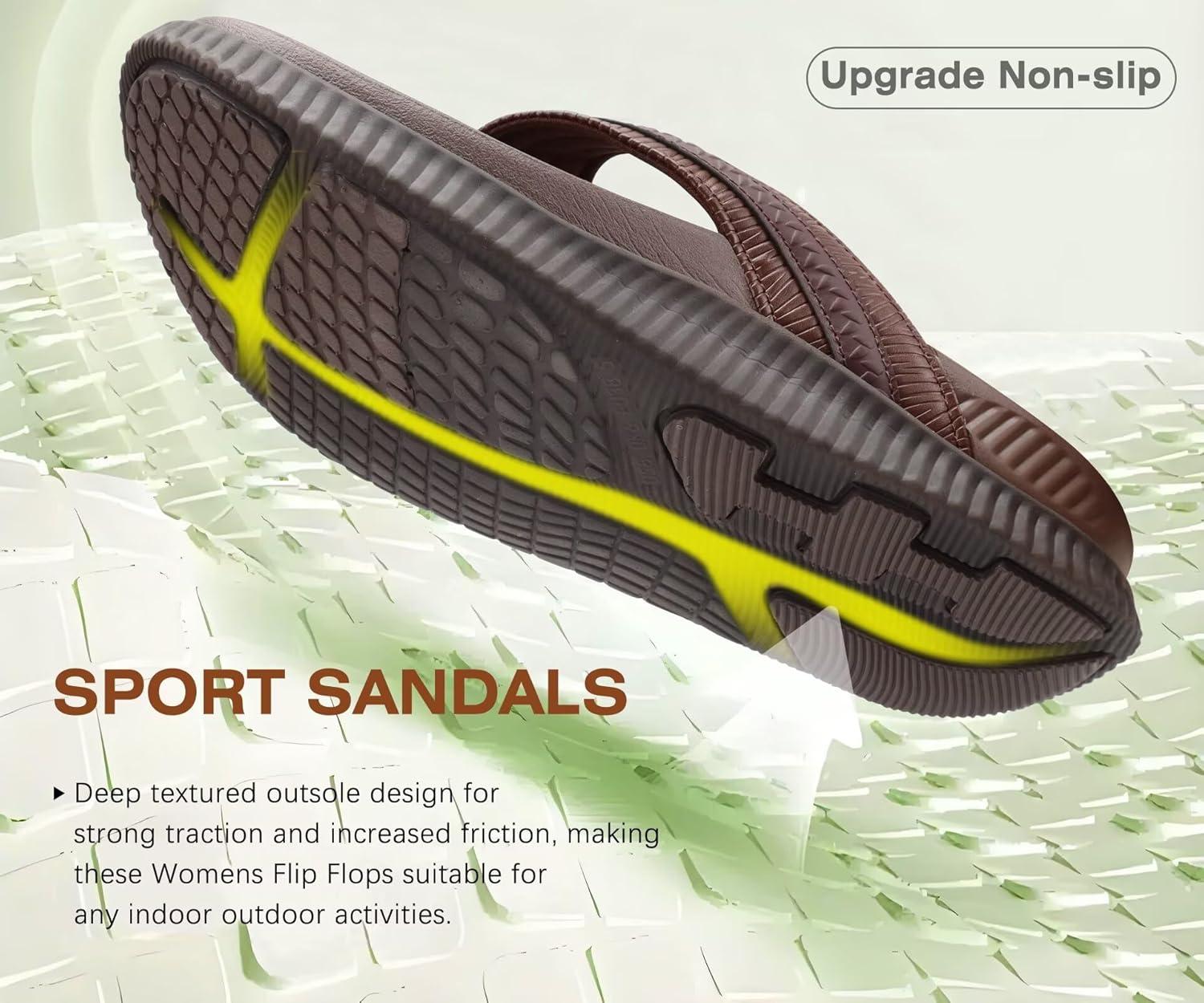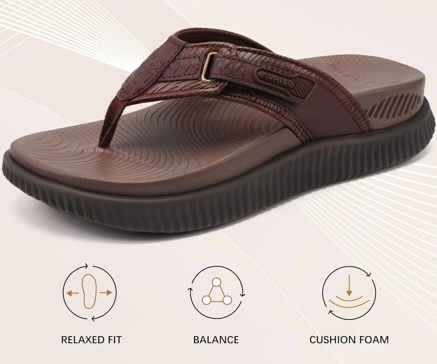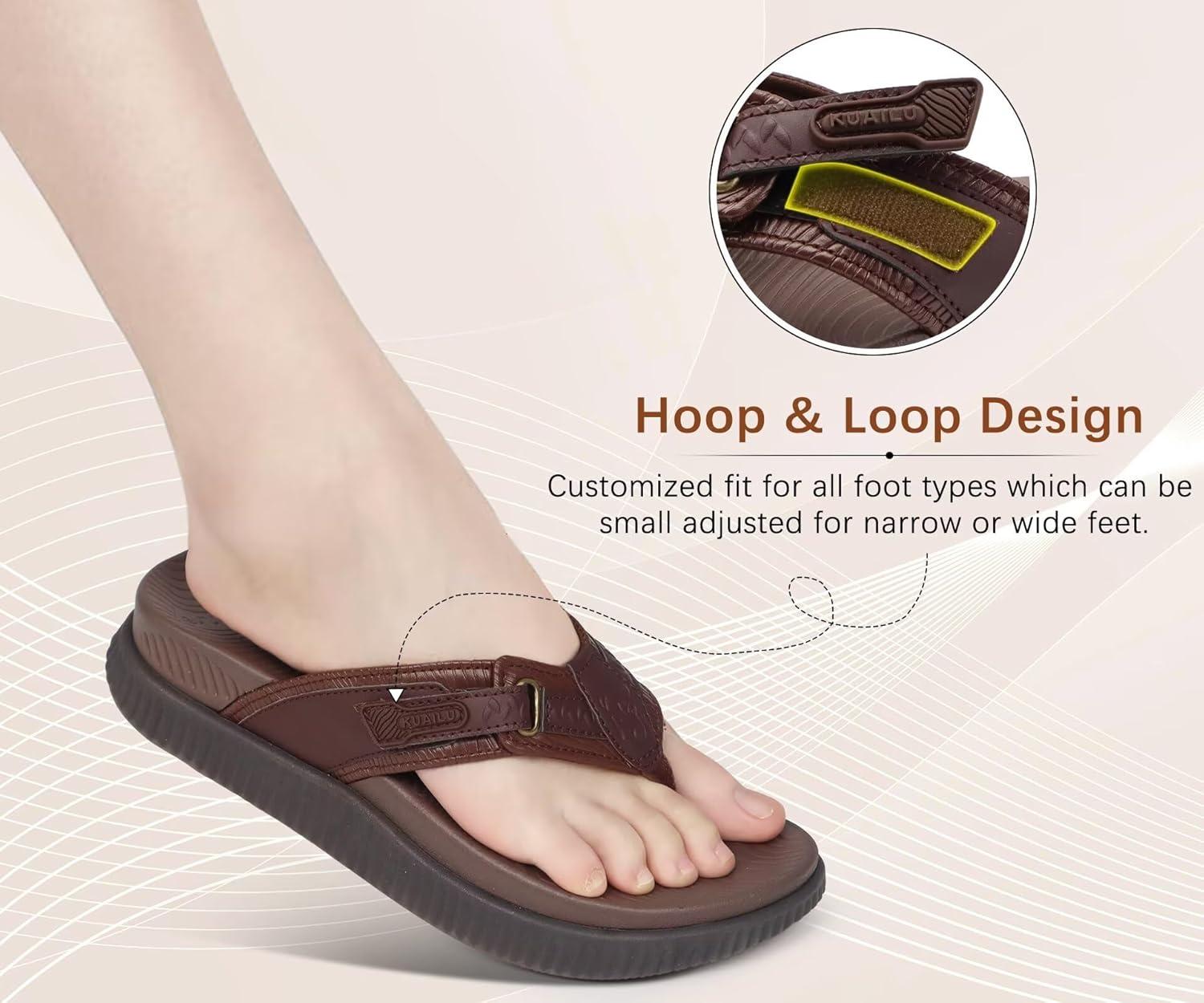 KuaiLu Womens Orthotic Cushion Flip Flops Sport Recovery Walking Sandals for Women with Comfortable Arch Support – Adjustable Flatform Slip On Indoor Outdoor For Summer Casual(Dark Brown)