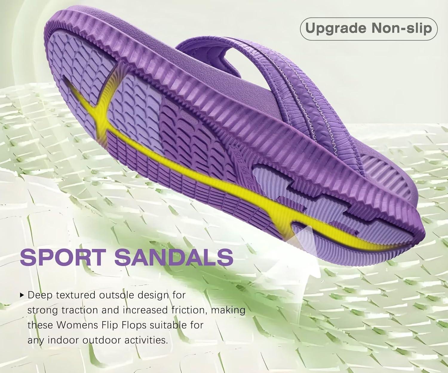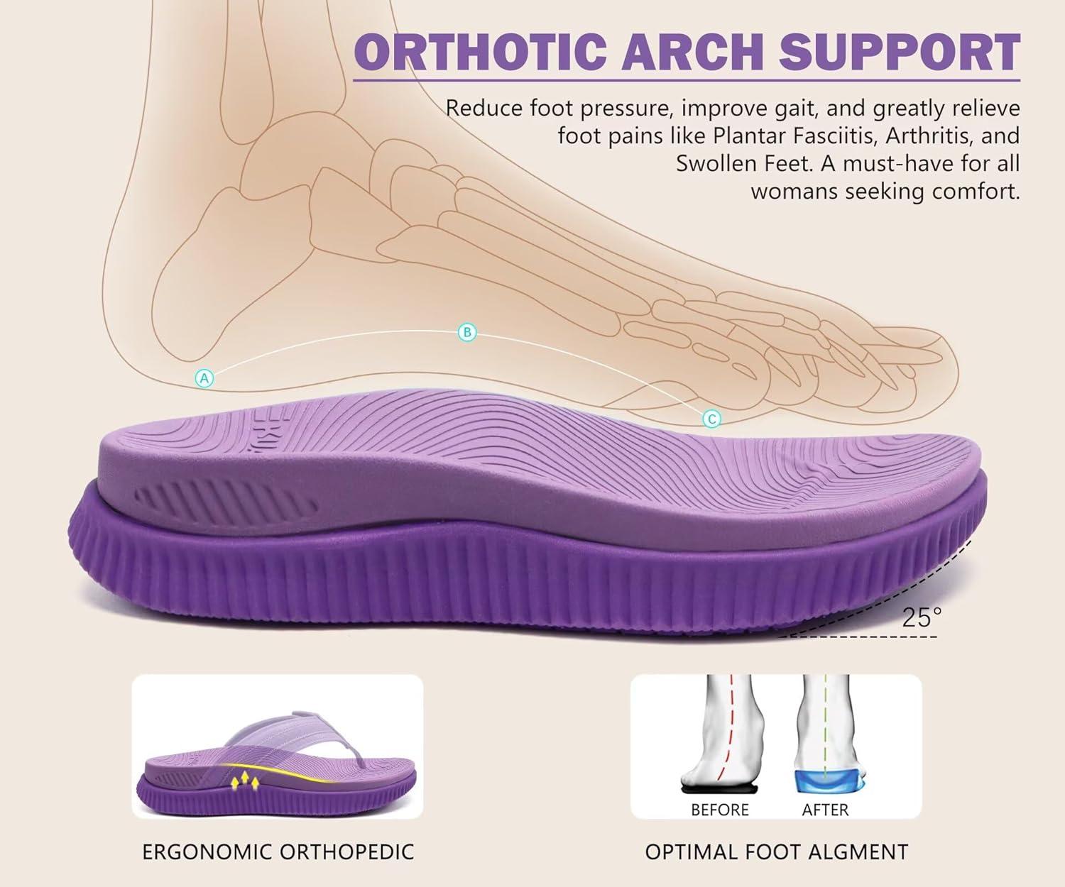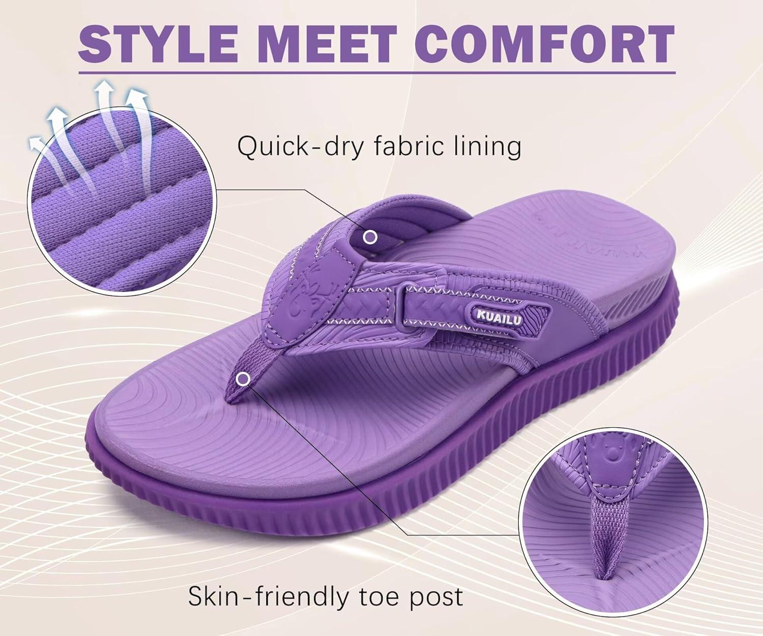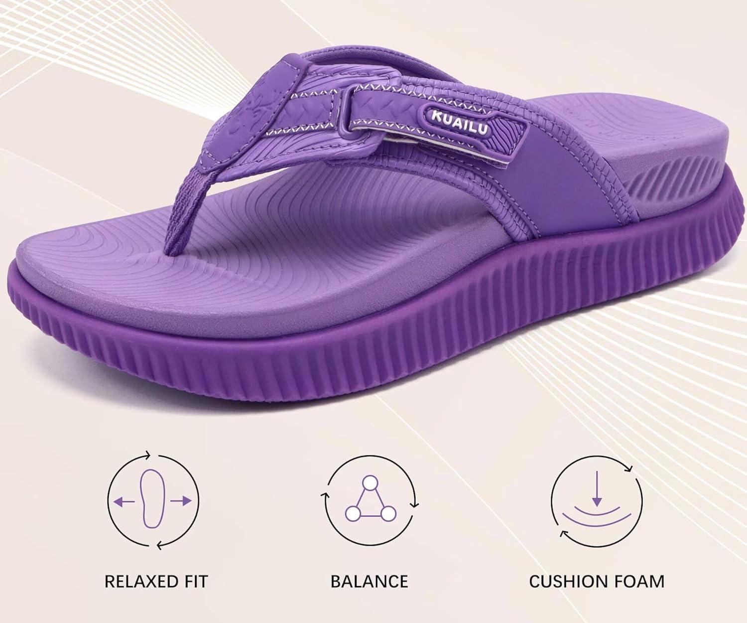 KuaiLu Womens Orthotic Cushion Flip Flops Sport Recovery Walking Sandals for Women with Comfortable Arch Support – Adjustable Flatform Slip On Indoor Outdoor For Summer Casual(Purple)