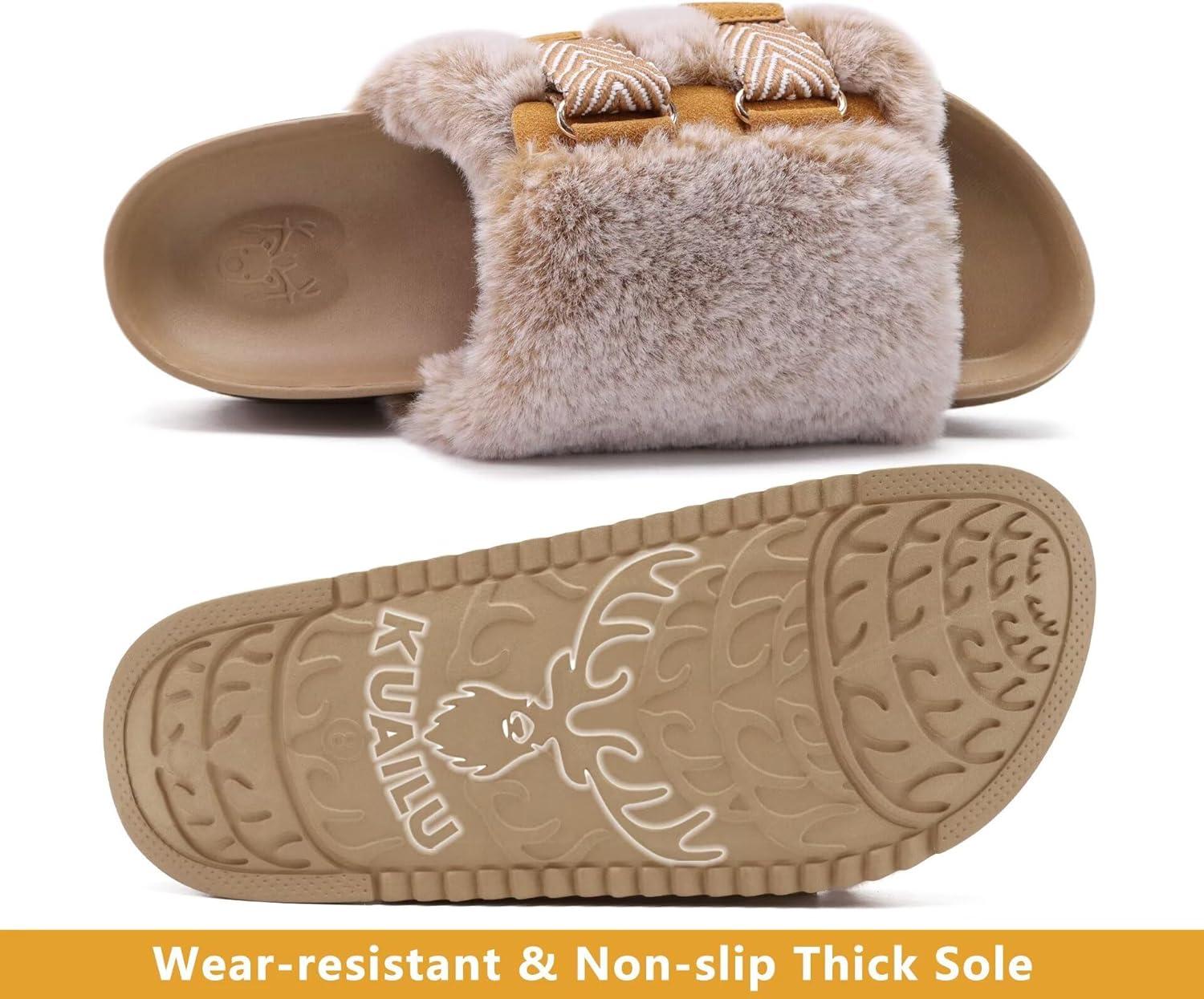 KuaiLu Womens Orthotic Sandals Comfortable Arch Support Faux Fur Sandal Slippers Casual Summer Adjustable Cushion Slides Slip On Indoor Outdoor House Shoes
