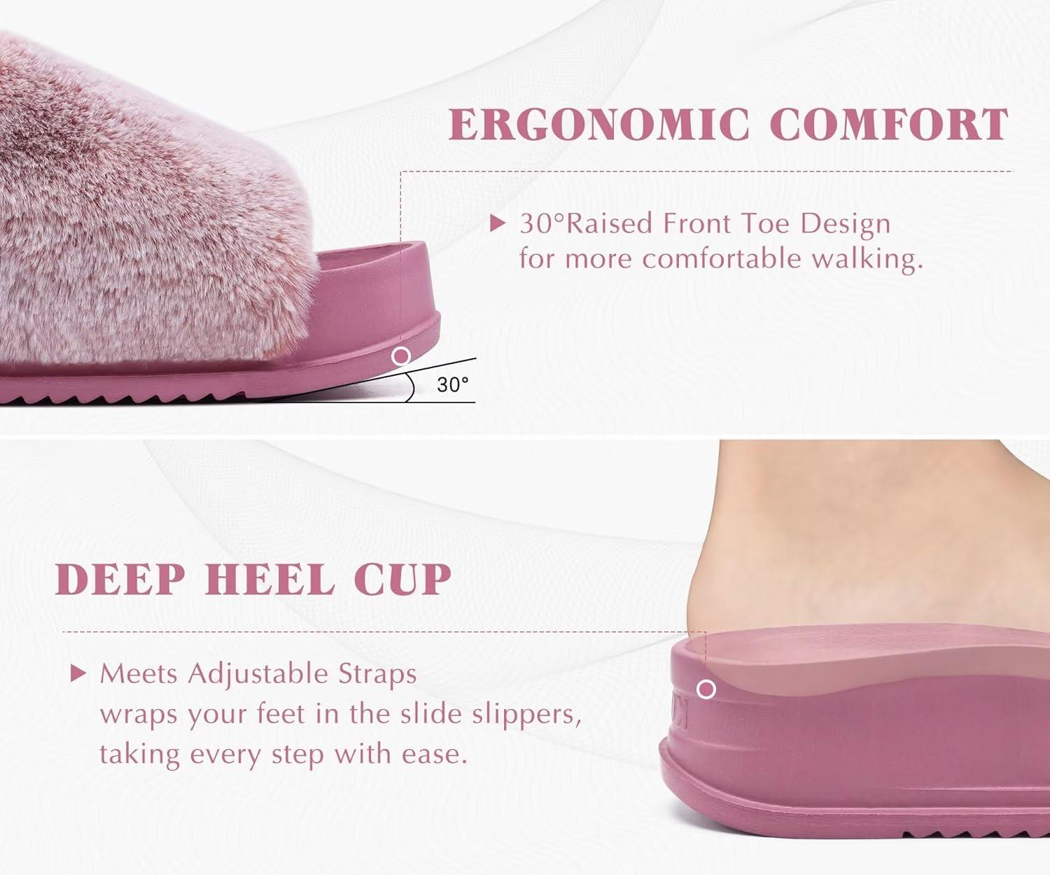 KuaiLu Womens Orthotic Slippers Comfortable Arch Support Faux Fur Sandal Slippers Casual Adjustable Slip On Indoor Outdoor Size 6~12 – Ultra-soft Comfort Fit Footbed(Lovely Pink (Tip Dyeing))