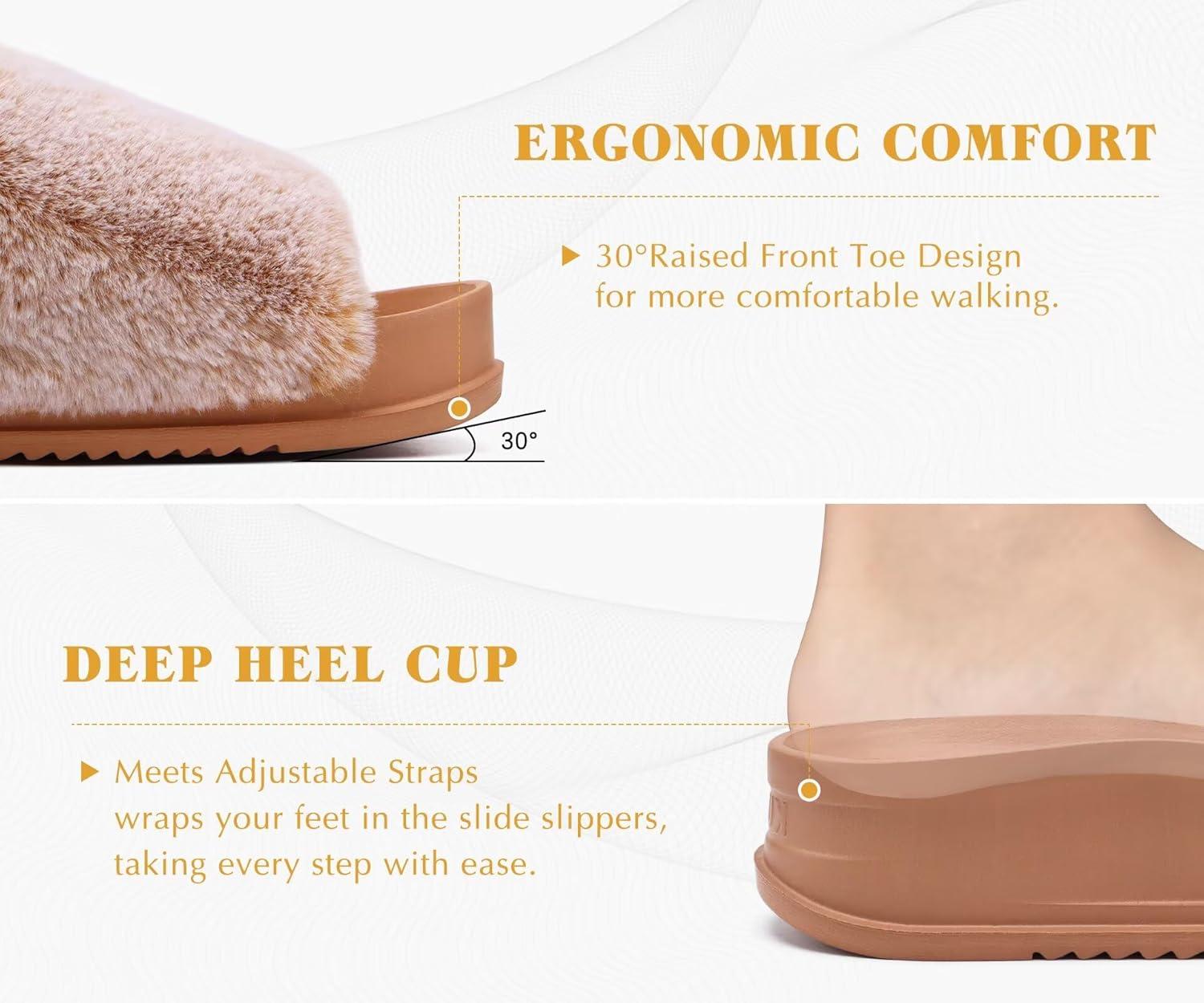 imageKuaiLu Womens Orthotic Slippers Comfortable Arch Support Faux Fur Slipper Sandals Casual Summer Adjustable Cushion Slides Slip On Indoor Outdoor House Shoes  Ultrasoft Comfort Fit FootbedKhaki Tip Dyeing