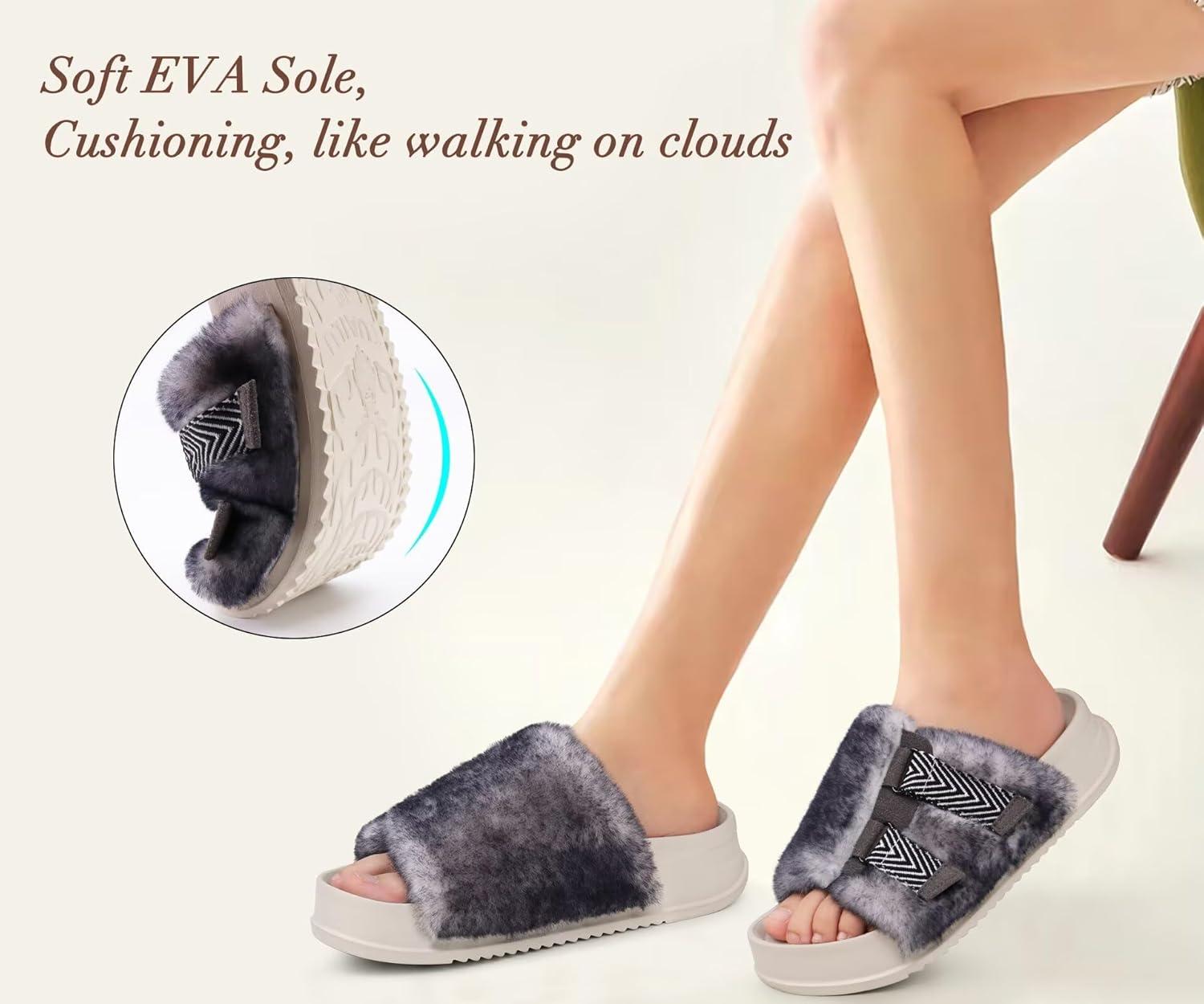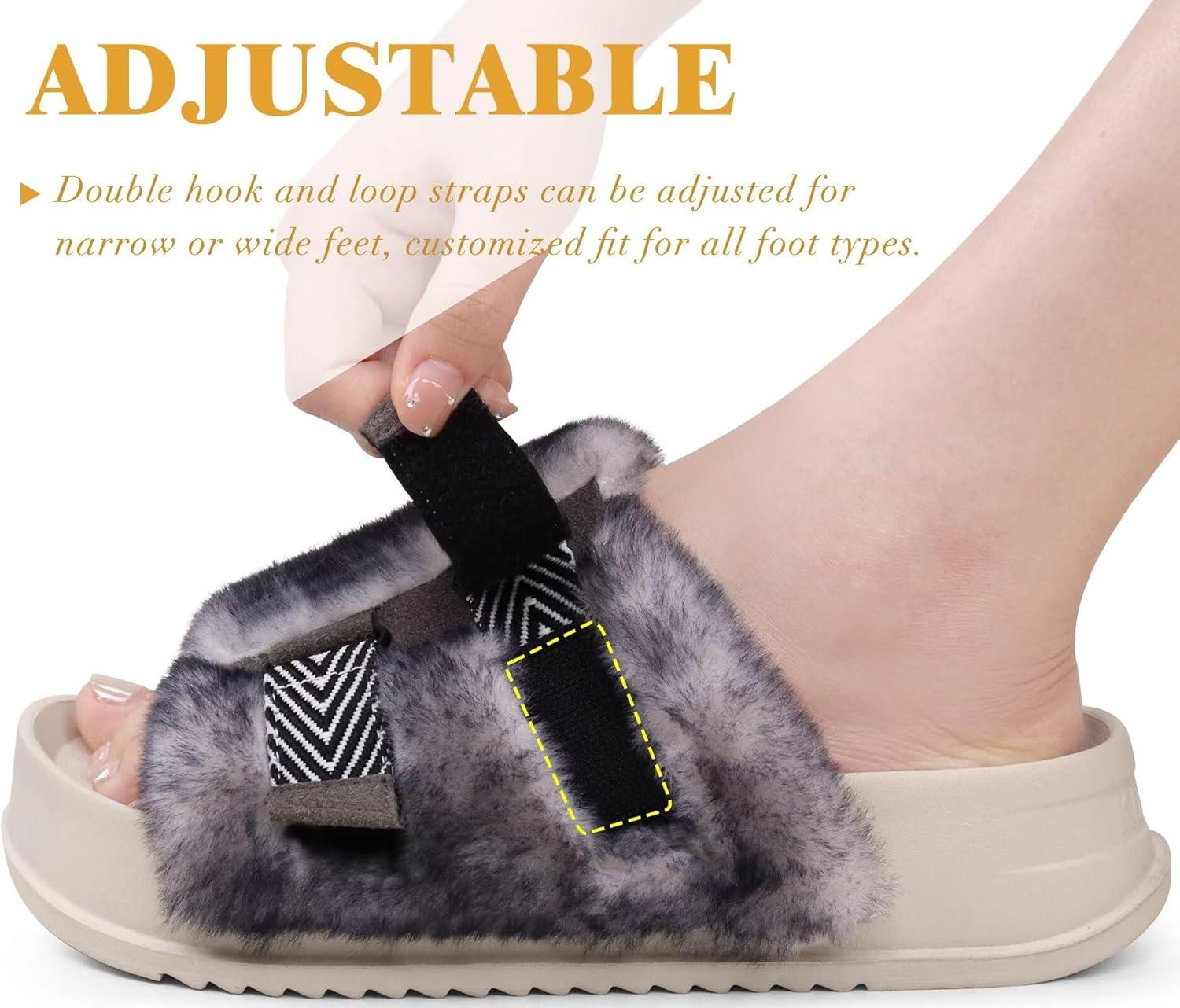 imageKuaiLu Womens Orthotic Slippers Comfortable Arch Support Faux Fur Slipper Sandals Casual Summer Adjustable Cushion Slides Slip On Indoor Outdoor House Shoes  Ultrasoft Comfort Fit FootbedWhite Tip Dyeing