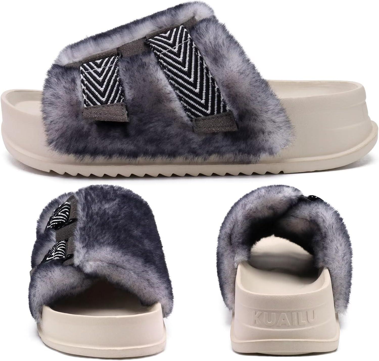 imageKuaiLu Womens Orthotic Slippers Comfortable Arch Support Faux Fur Slipper Sandals Casual Summer Adjustable Cushion Slides Slip On Indoor Outdoor House Shoes  Ultrasoft Comfort Fit FootbedWhite Black Tip Dyeing