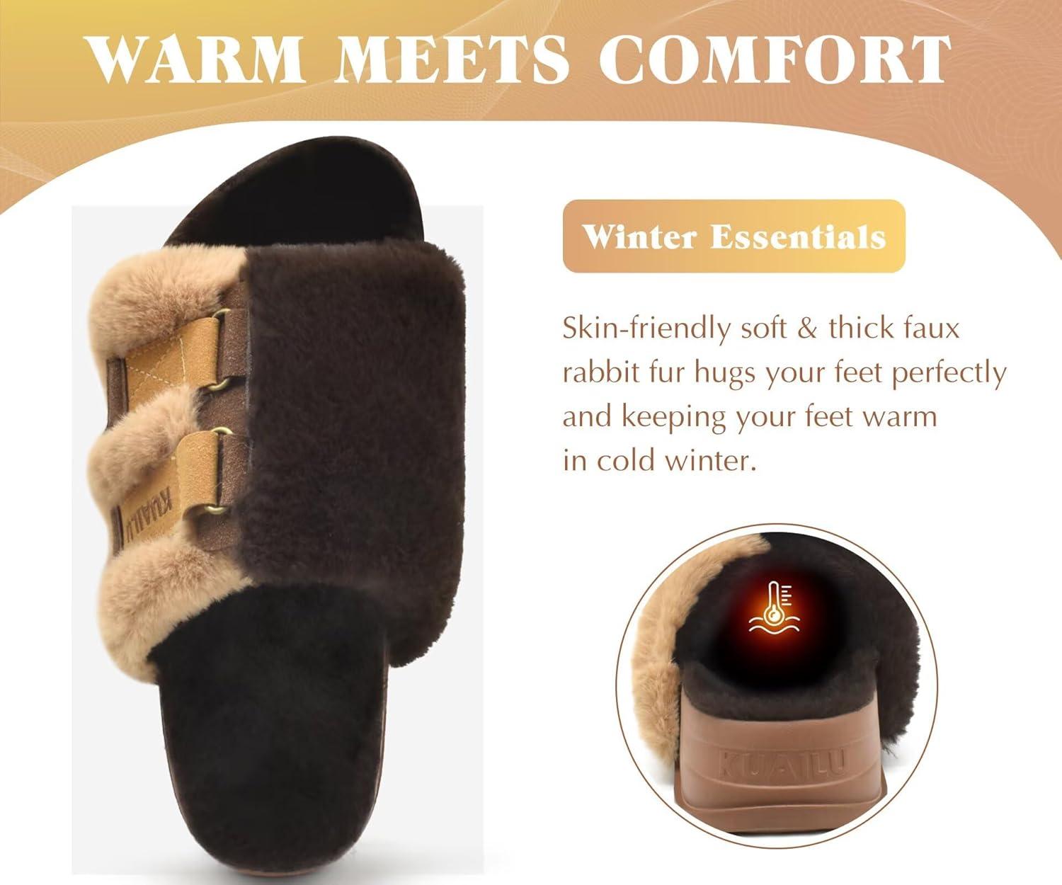 KuaiLu Women's Orthotic Slippers With Arch Support Soft Cushion Sandal Slippers for Woman Ladies Fashion Open Toe Faux Fur Platform Slipper Indoor Outdoor Size 6~12(Plush Brown)