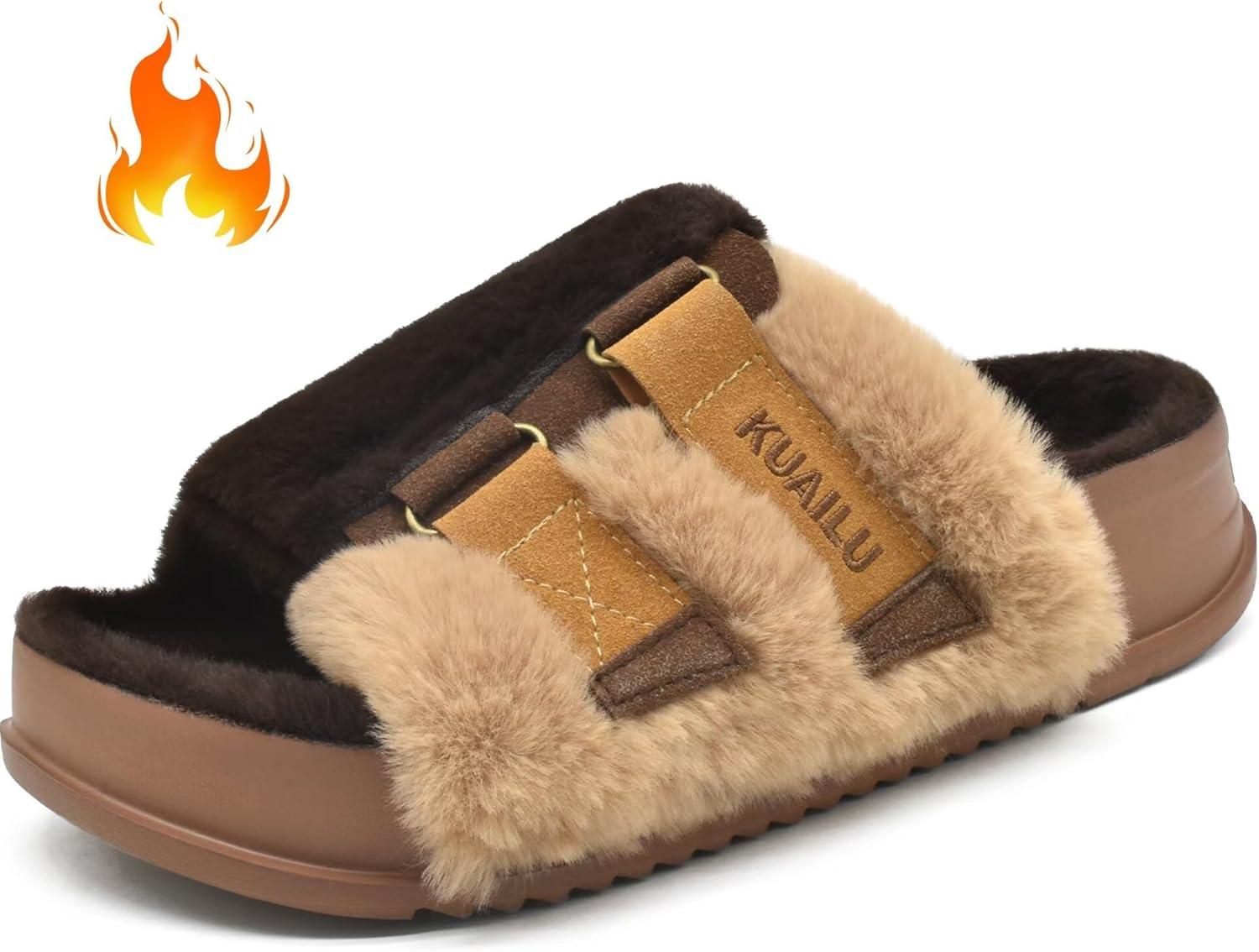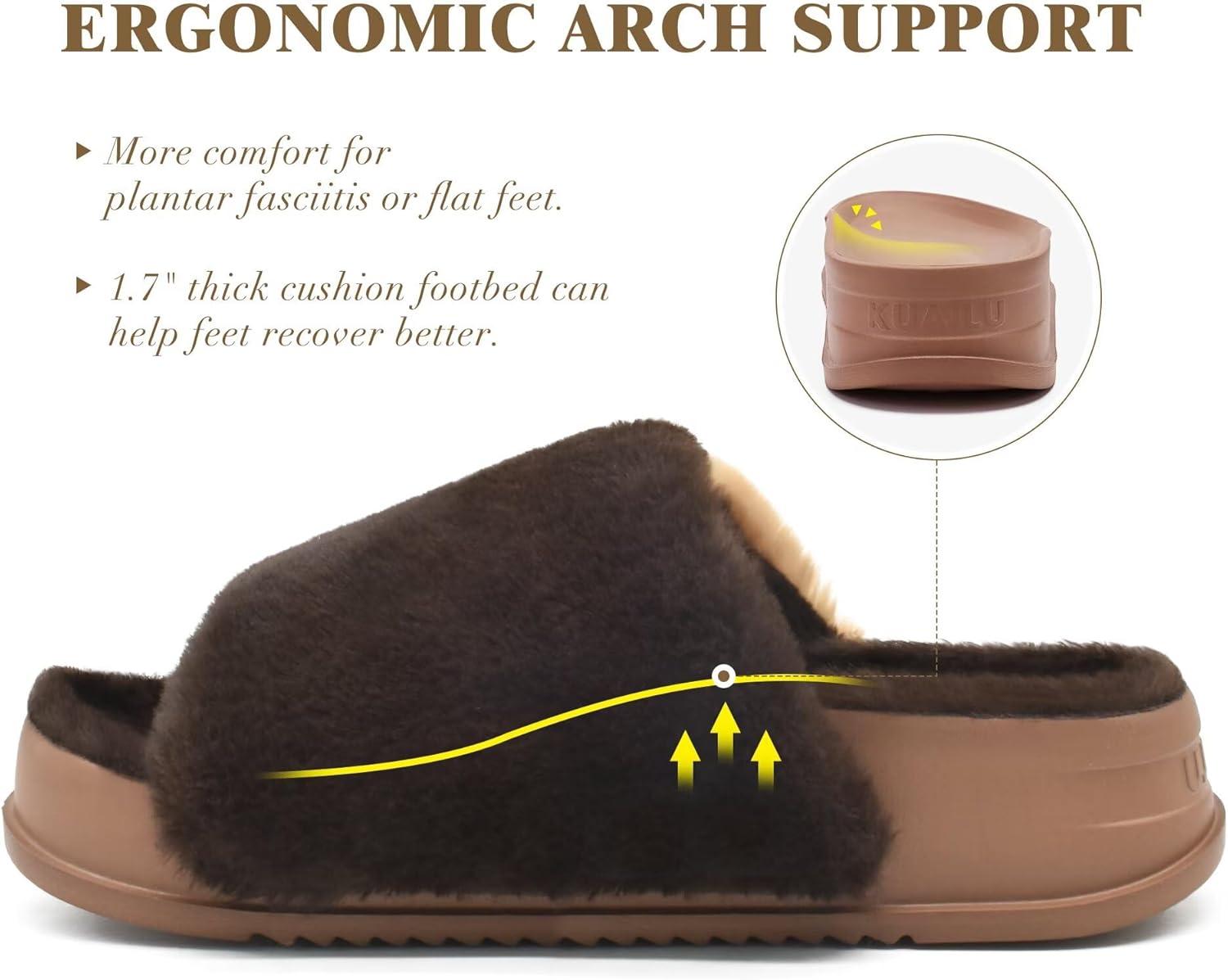 imageKuaiLu Womens Orthotic Slippers With Arch Support Soft Cushion Sandal Slippers for Woman Ladies Fashion Open Toe Faux Fur Platform Slipper Indoor Outdoor Size 612Plush Brown