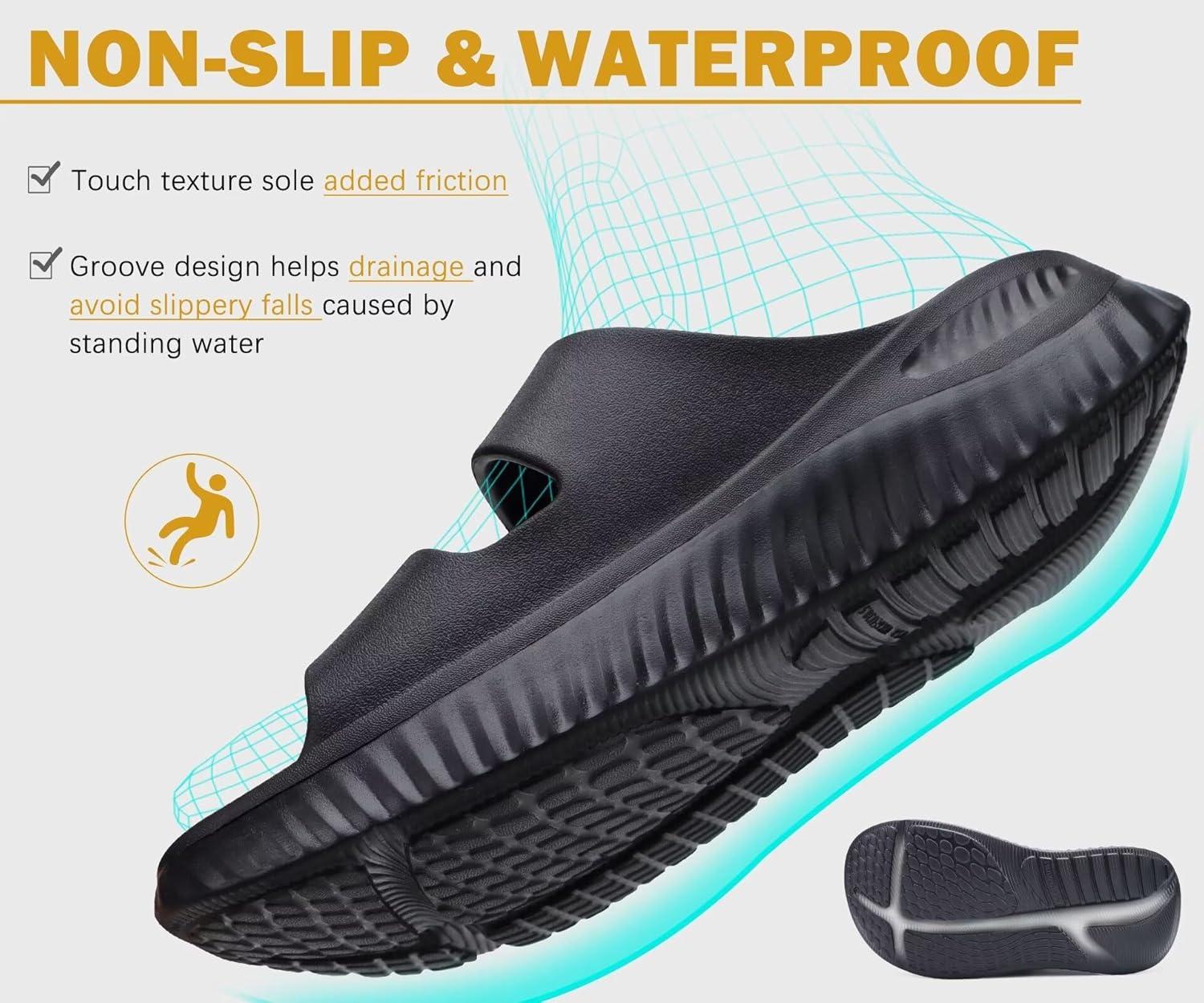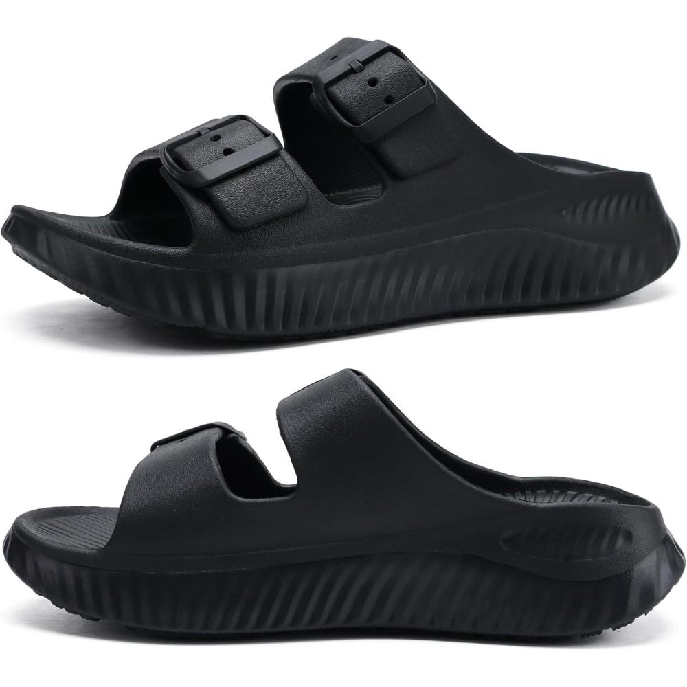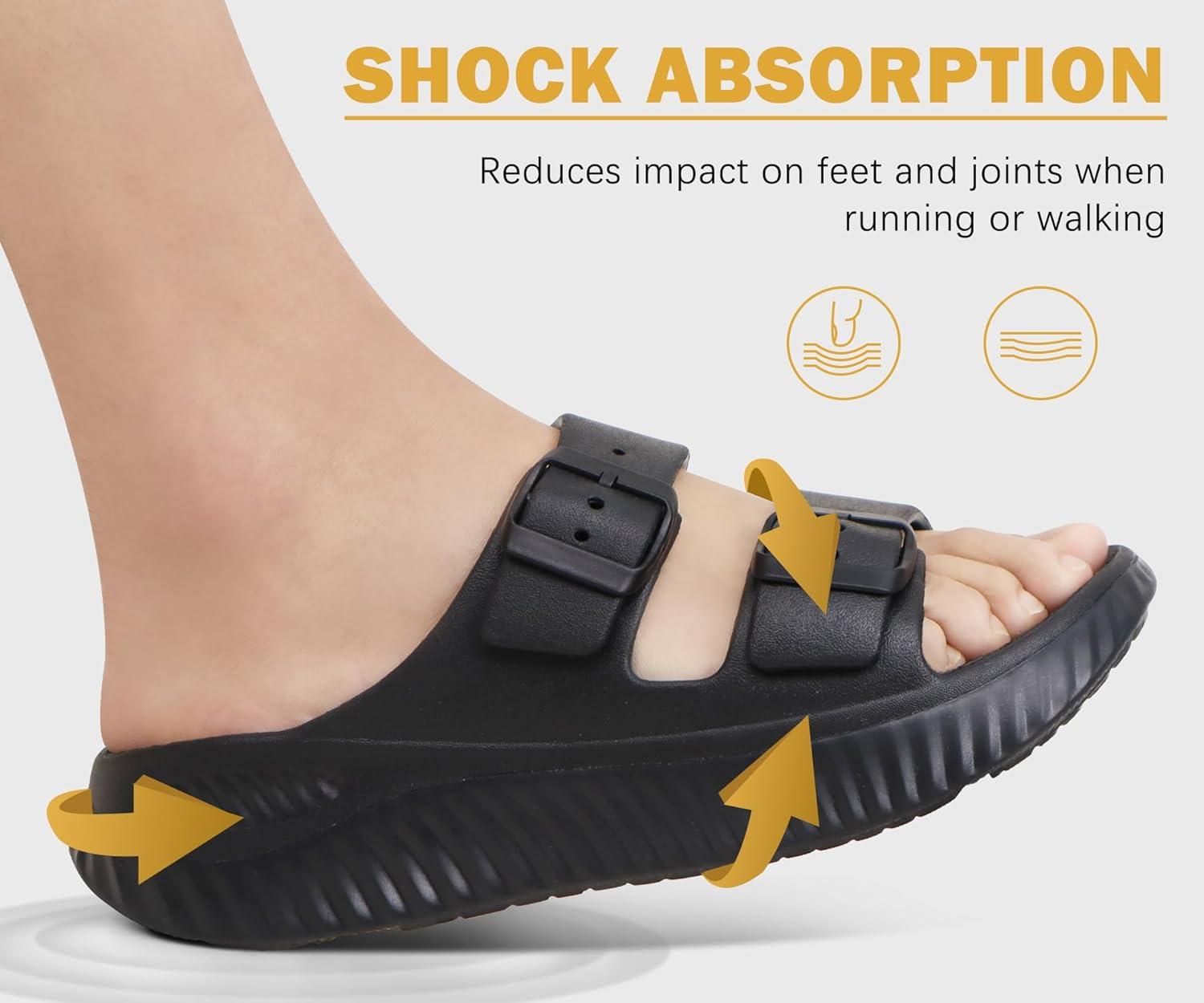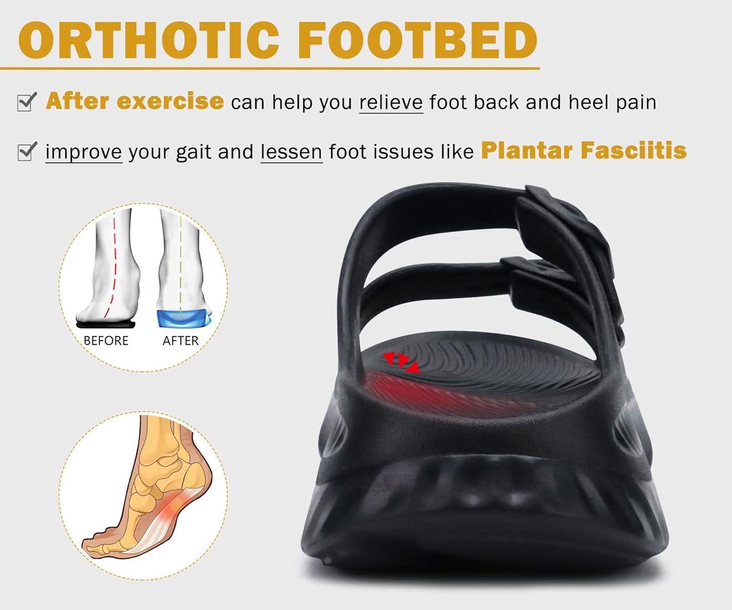 KuaiLu Womens Recovery Sandals Comfortable Plantar Fasciitis Arch Support Ladies Orthotic Sport Slides Open Toe Slip On Thick Athletic Cushion Slippers Summer Pool Beach Sandles(Dark Black-1)