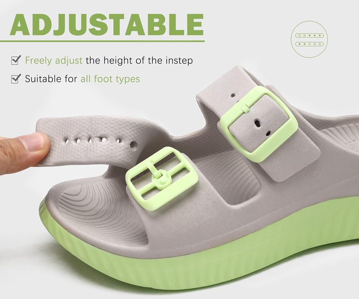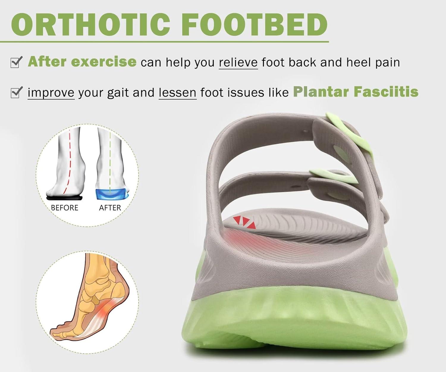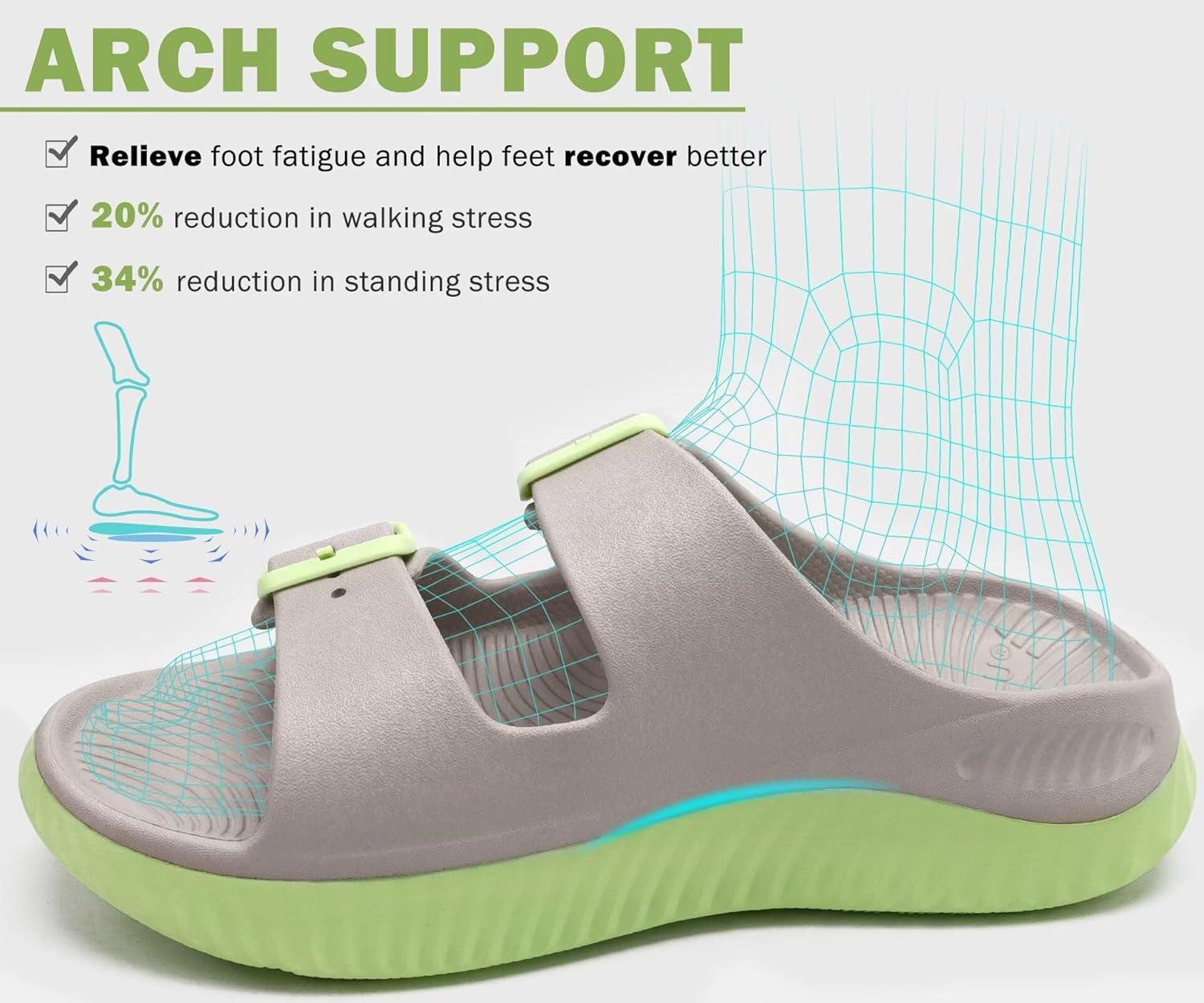 KuaiLu Womens Recovery Sandals With Comfortable Plantar Fasciitis Arch Support, Orthotic Adjustable Thick Cushion Sport Slides Reduces Stress on Feet, Joints & Back Post-Exercise(Apricot Green)