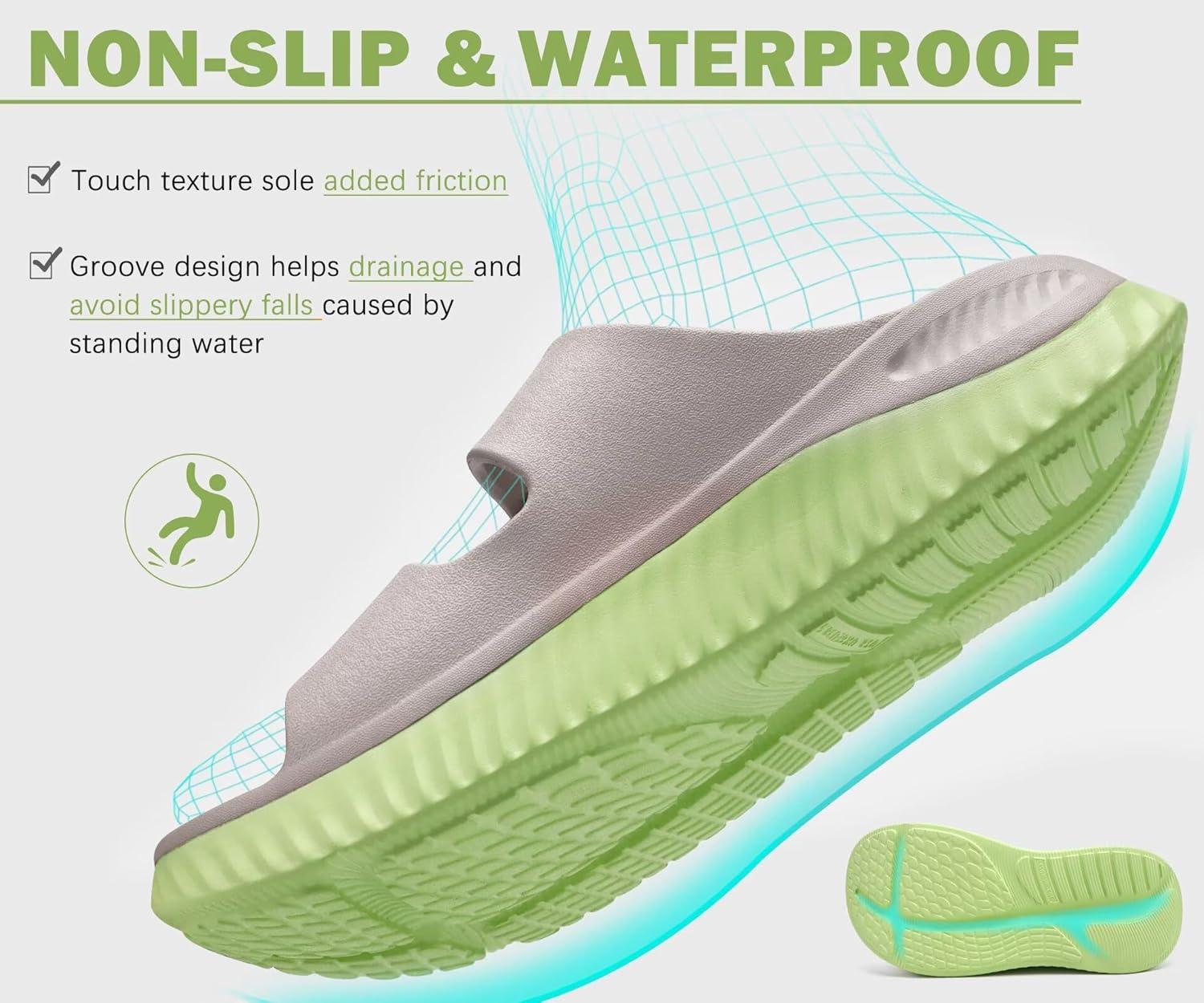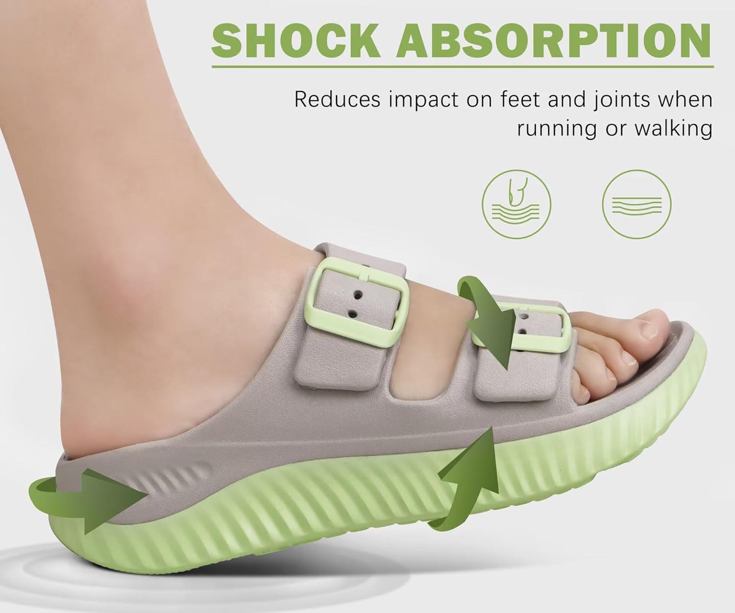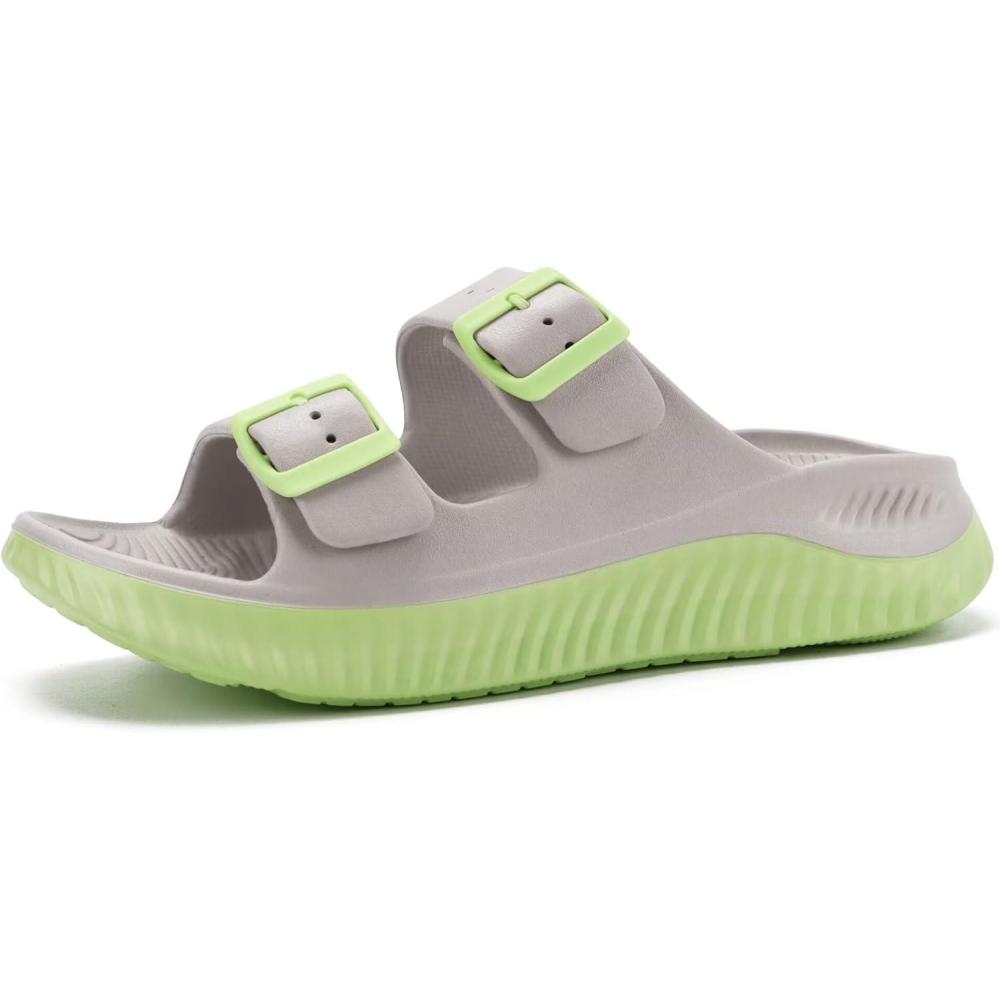 KuaiLu Womens Recovery Sandals With Comfortable Plantar Fasciitis Arch Support, Orthotic Adjustable Thick Cushion Sport Slides Reduces Stress on Feet, Joints & Back Post-Exercise(Apricot Green)