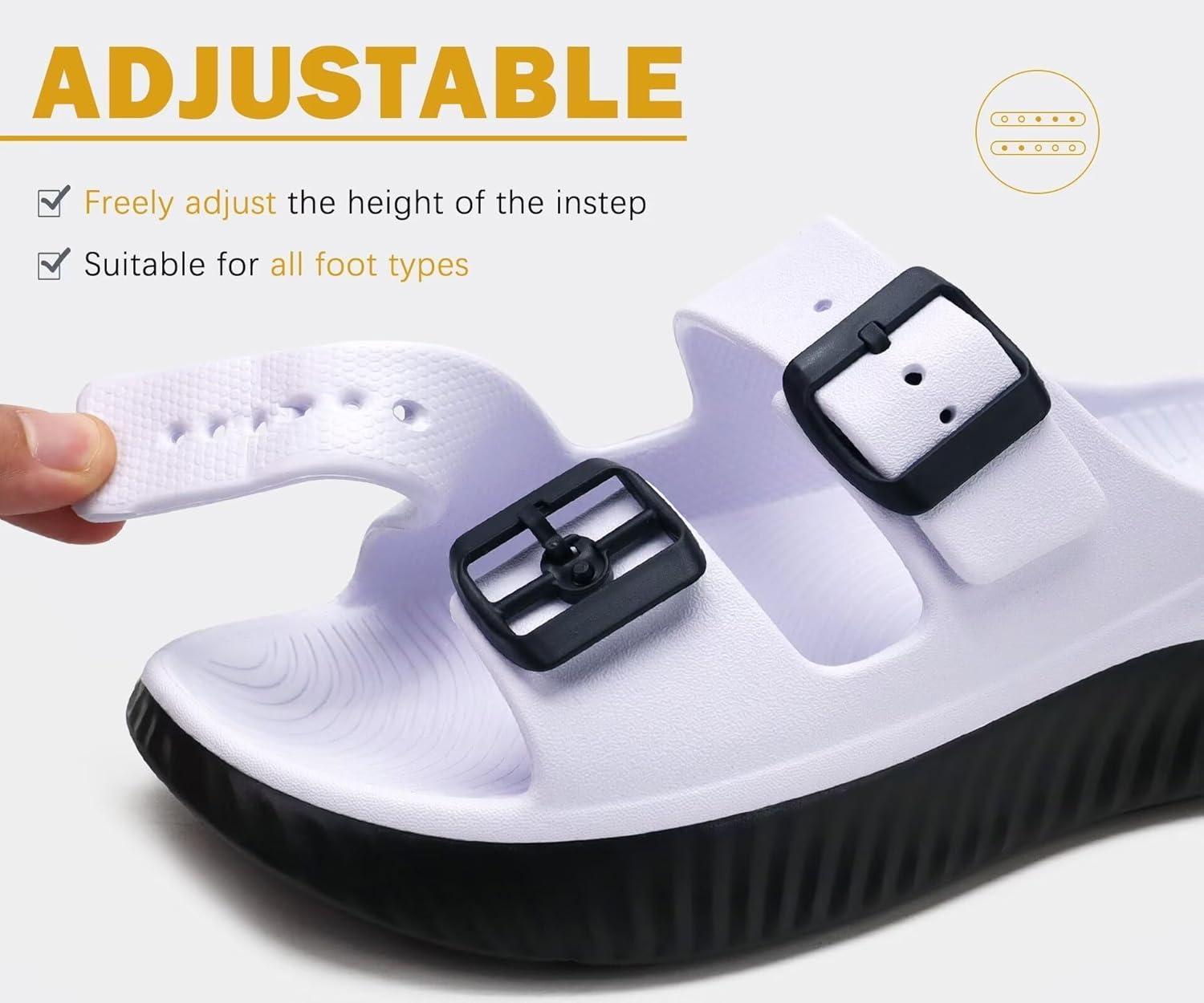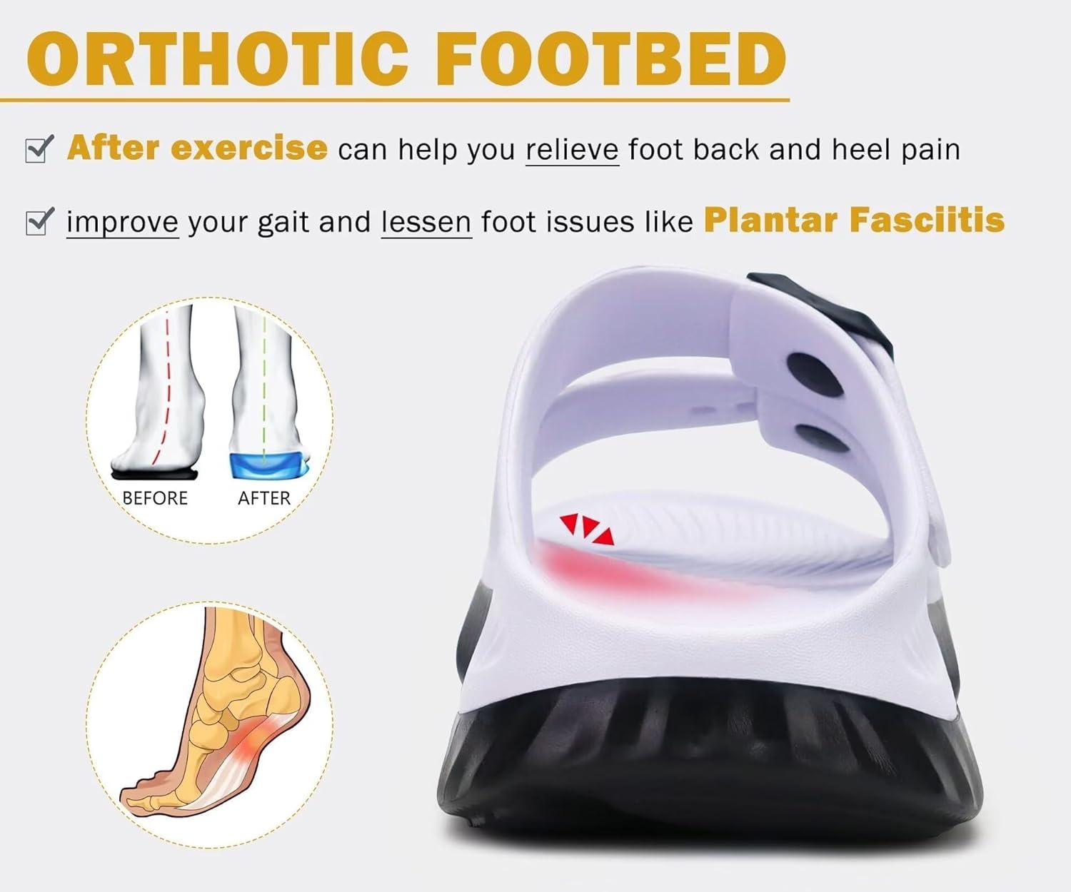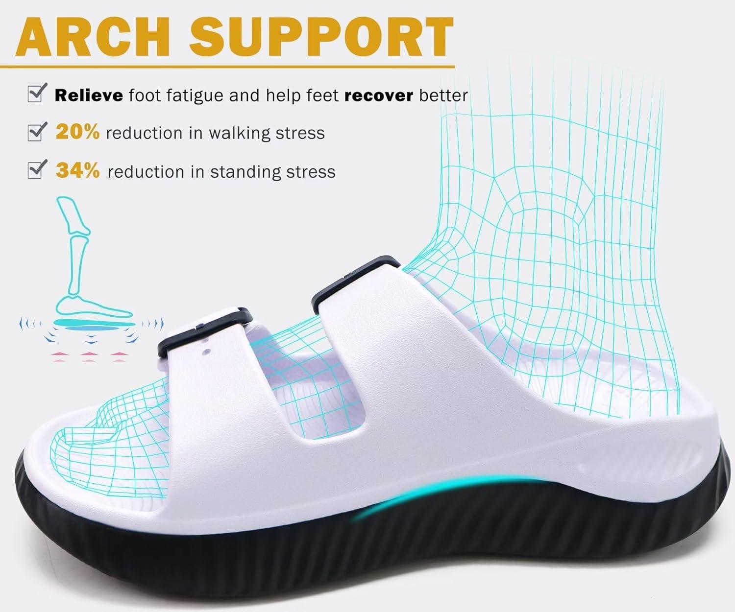 KuaiLu Womens Recovery Sandals With Comfortable Plantar Fasciitis Arch Support, Orthotic Adjustable Thick Cushion Sport Slides Reduces Stress on Feet, Joints & Back Post-Exercise(White Black)