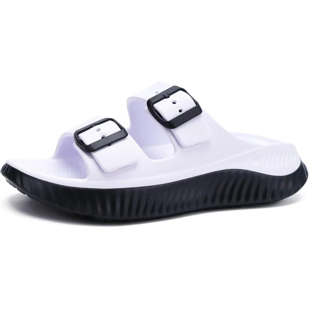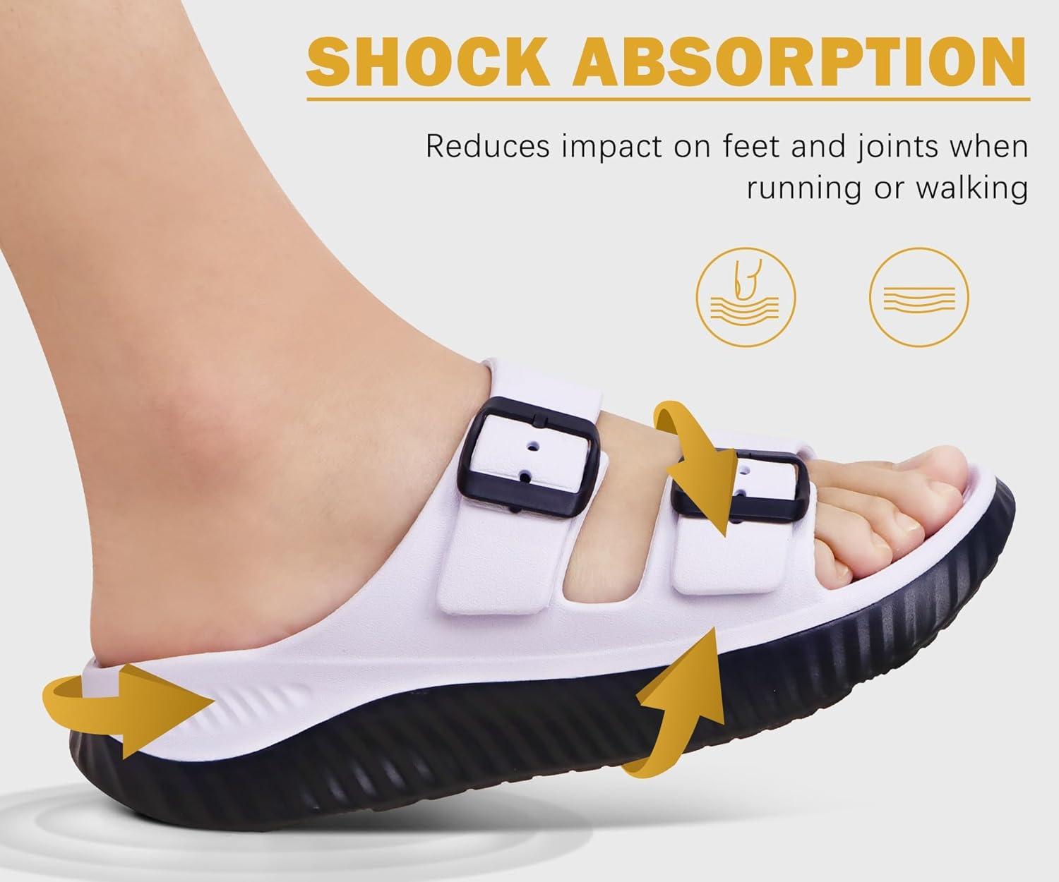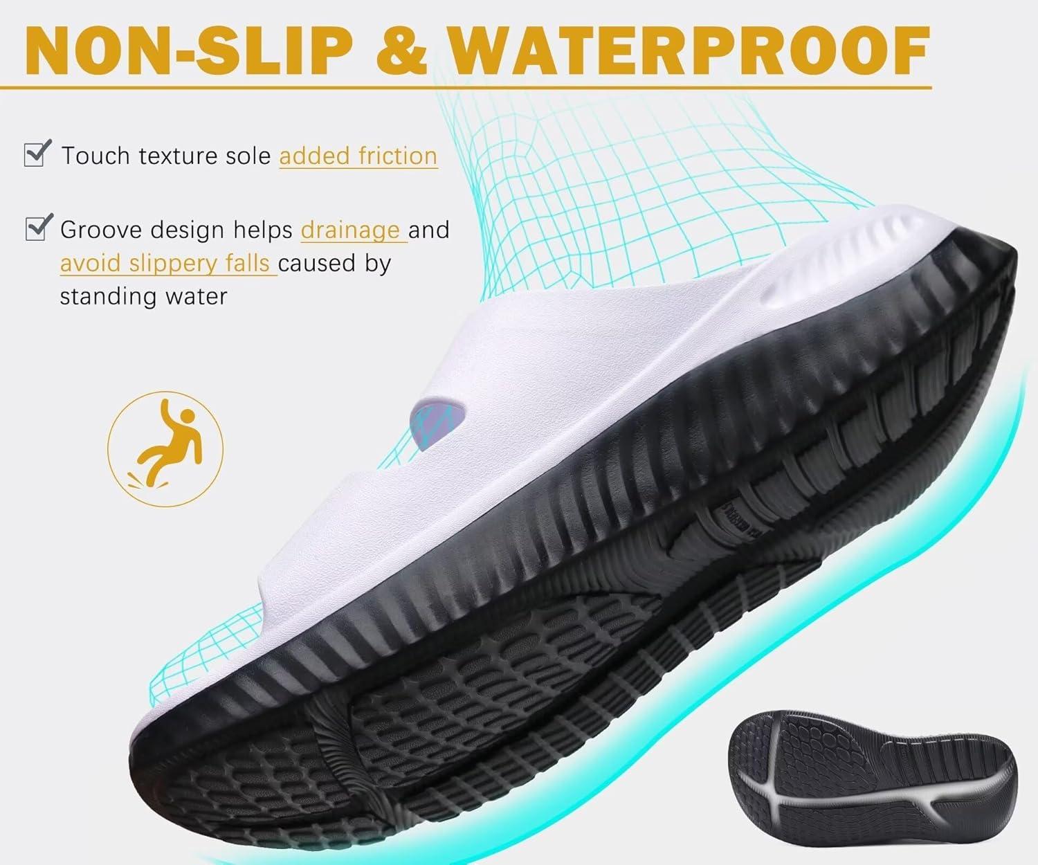 KuaiLu Womens Recovery Sandals With Comfortable Plantar Fasciitis Arch Support, Orthotic Adjustable Thick Cushion Sport Slides Reduces Stress on Feet, Joints & Back Post-Exercise(White Black)