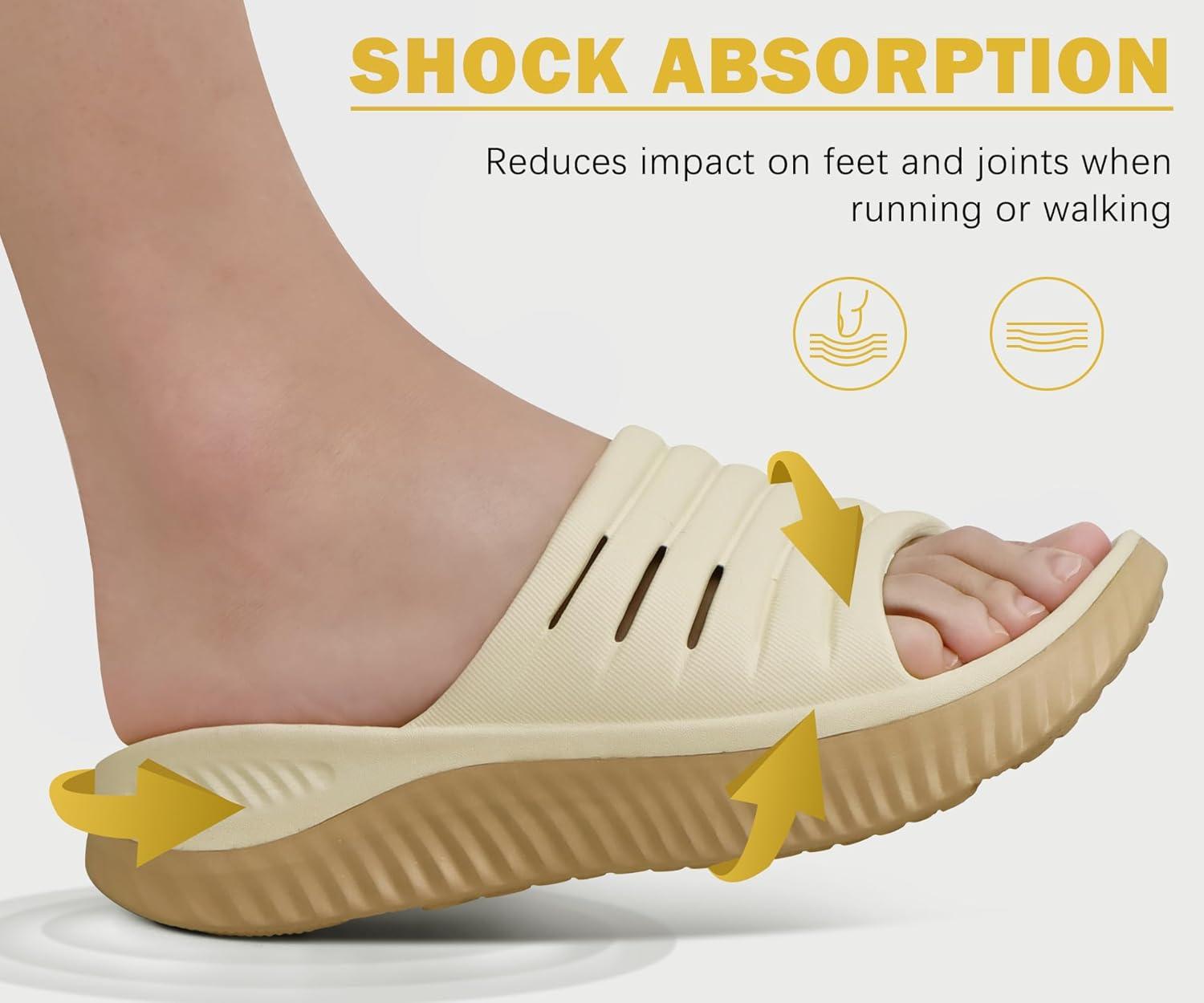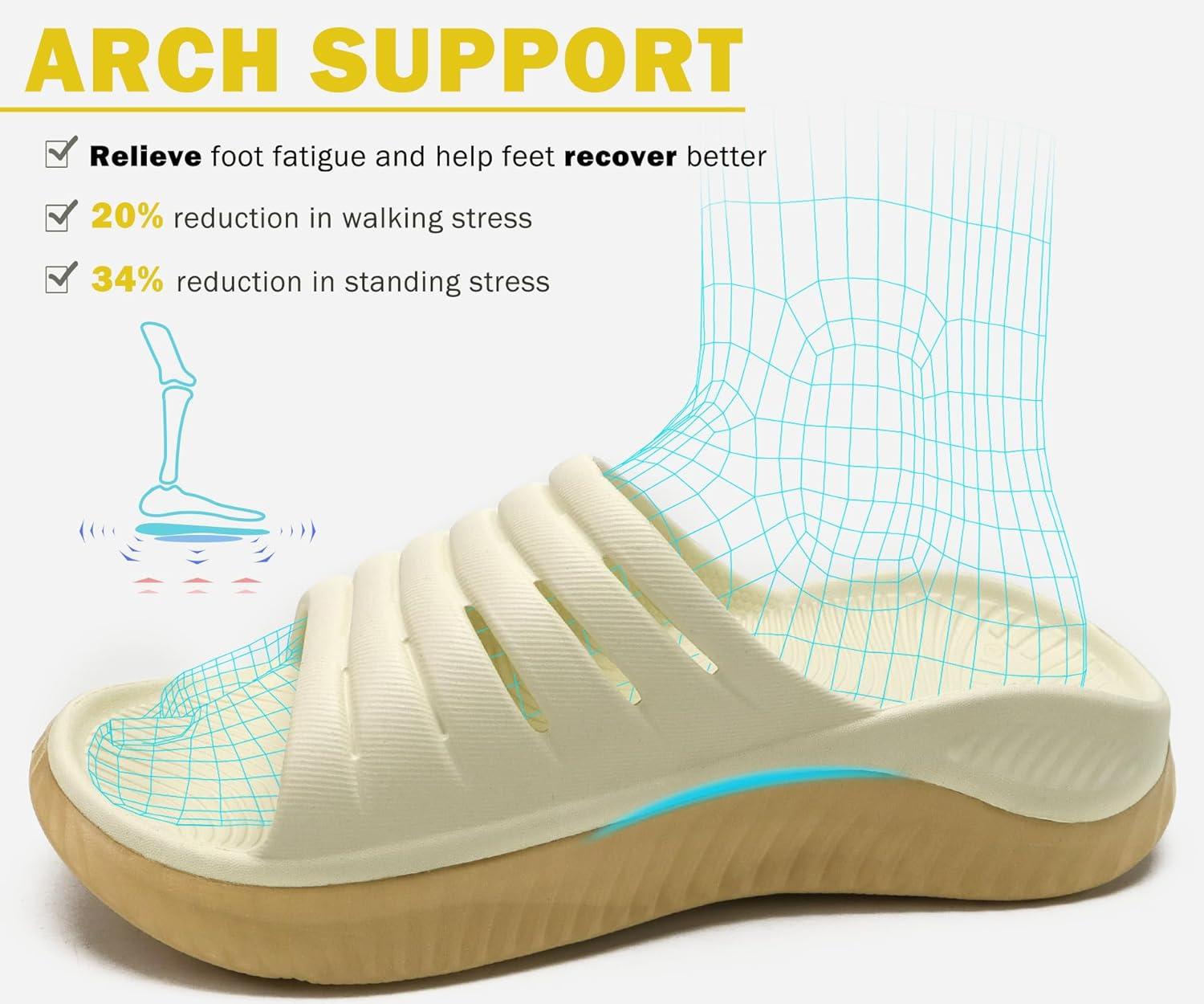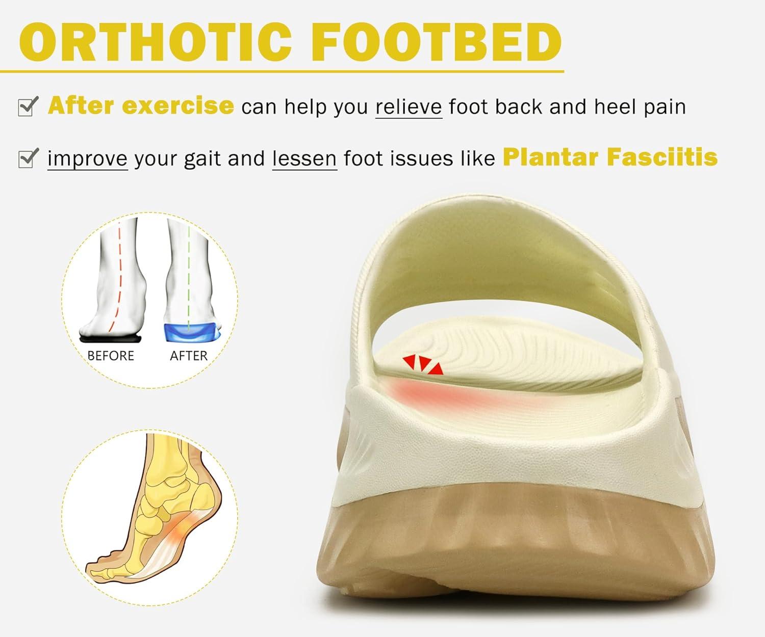KuaiLu Womens Recovery Sandals With Comfortable Plantar Fasciitis Support,Ladies Orthotic Open Toe Sport Slides Thick Cushion Reduces Stress on Feet,Joints & Back Post-Exercise(Beige Khaki)
