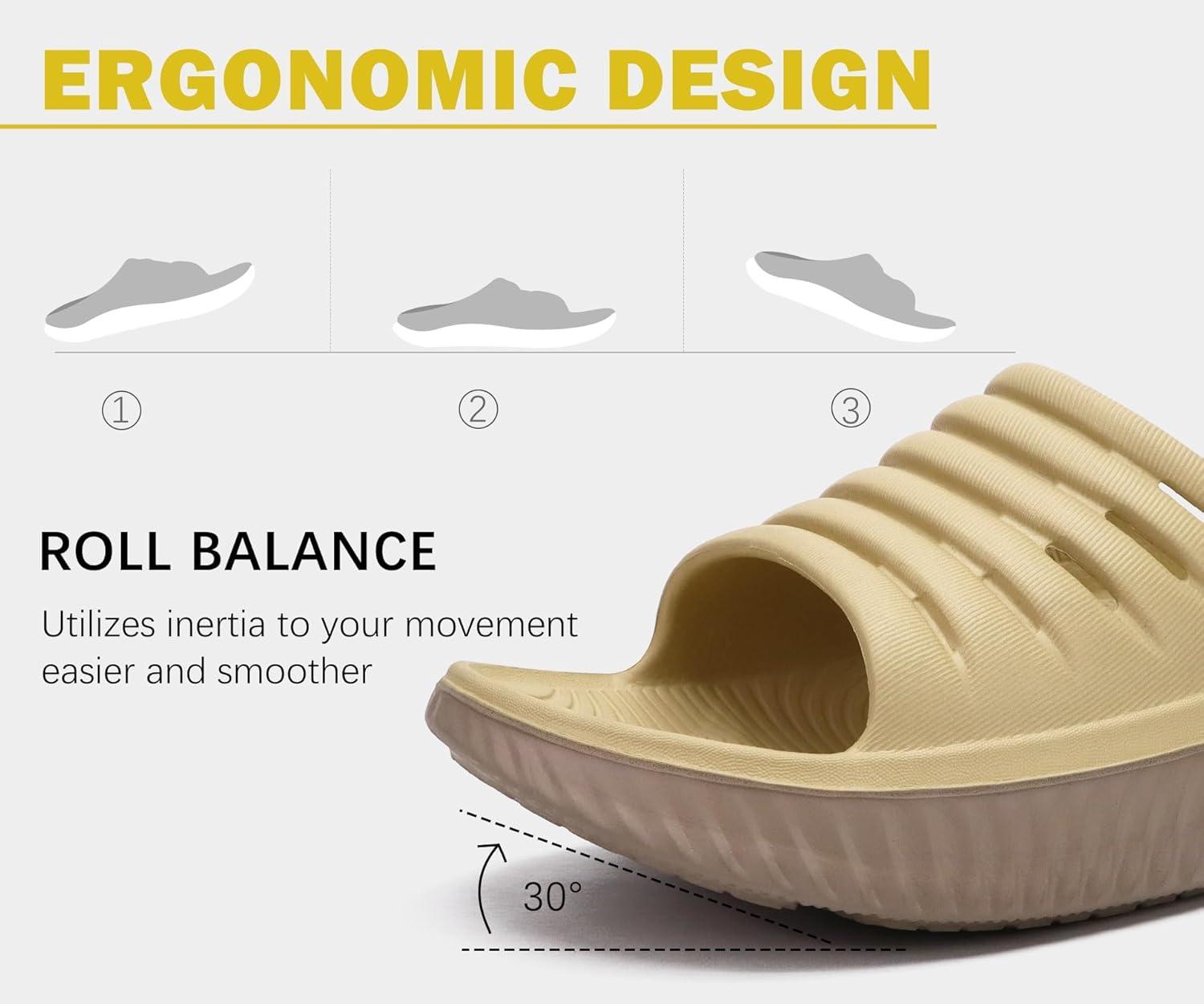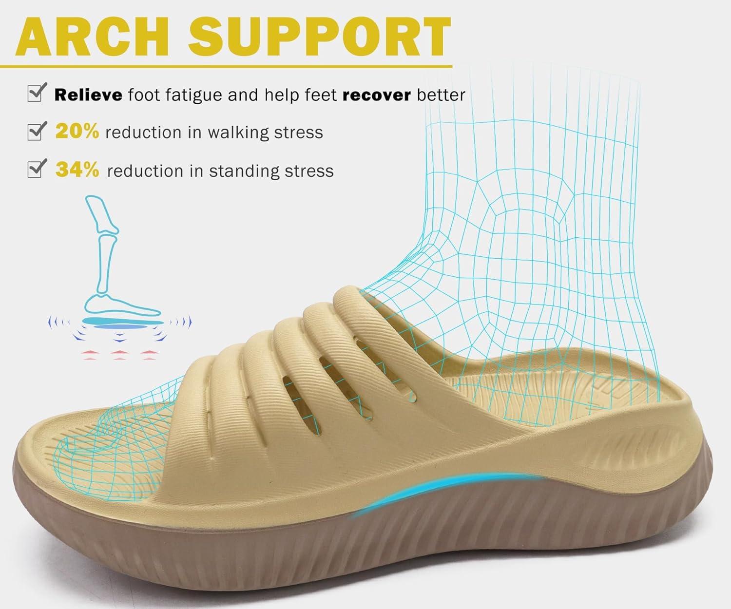 KuaiLu Womens Recovery Sandals With Comfortable Plantar Fasciitis Support,Ladies Orthotic Open Toe Sport Slides Thick Cushion Reduces Stress on Feet,Joints & Back Post-Exercise(Khaki White)