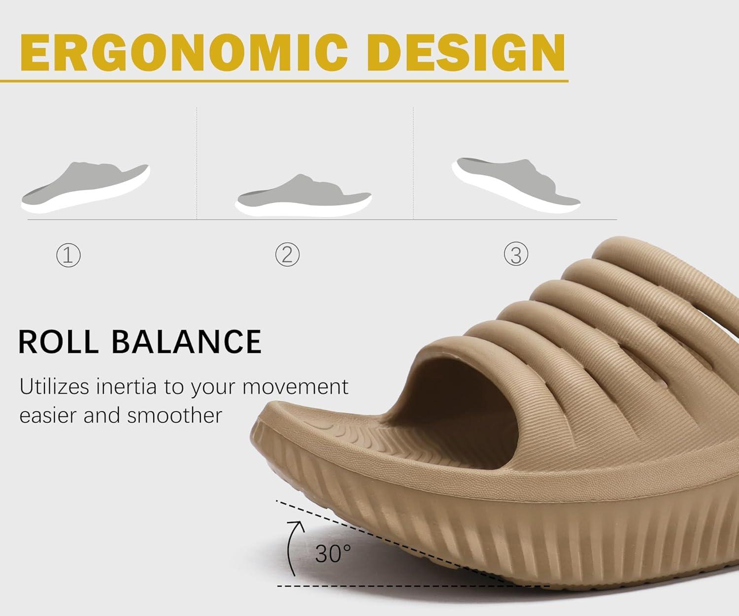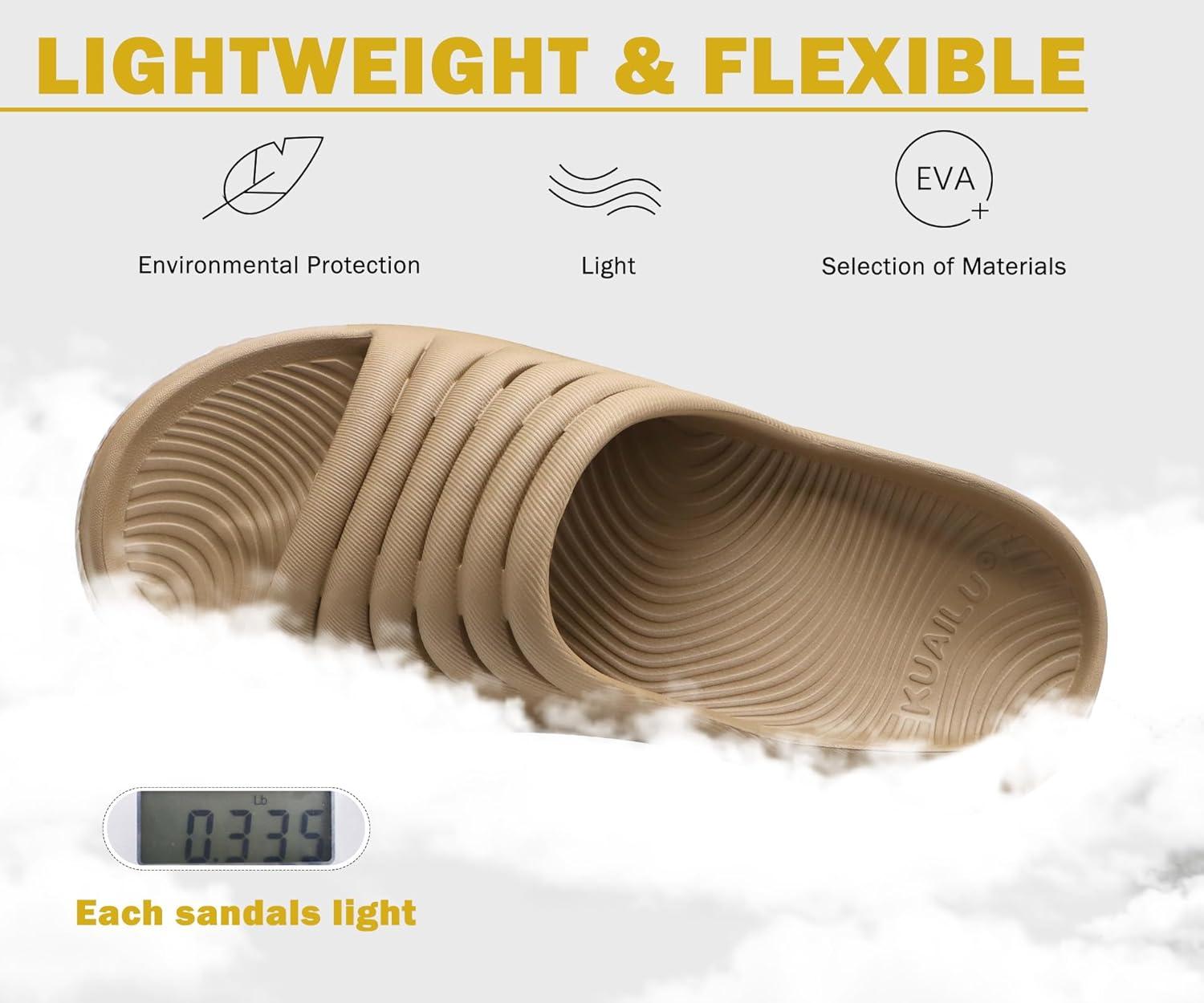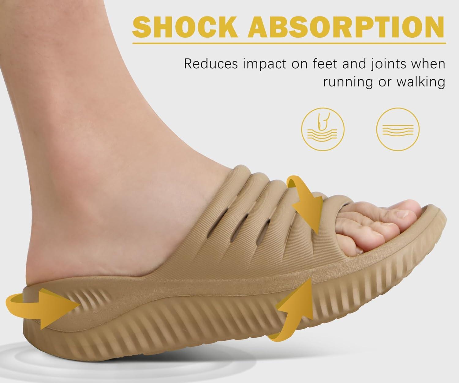 KuaiLu Womens Recovery Sandals With Comfortable Plantar Fasciitis Support,Ladies Orthotic Open Toe Sport Slides Thick Cushion Reduces Stress on Feet,Joints & Back Post-Exercise(Light Brown)