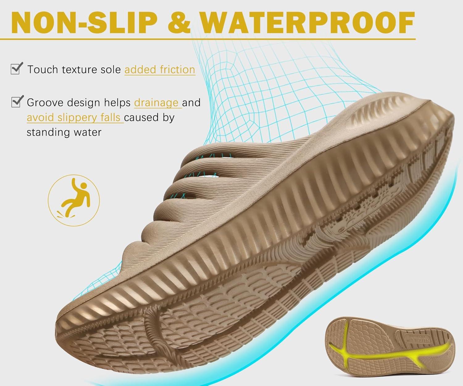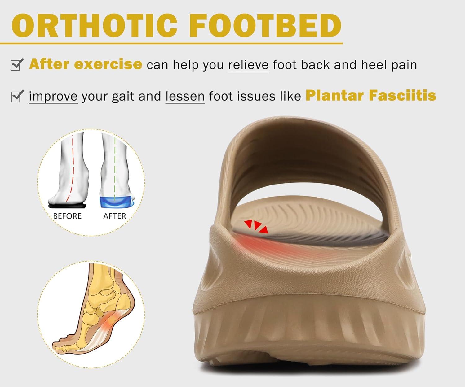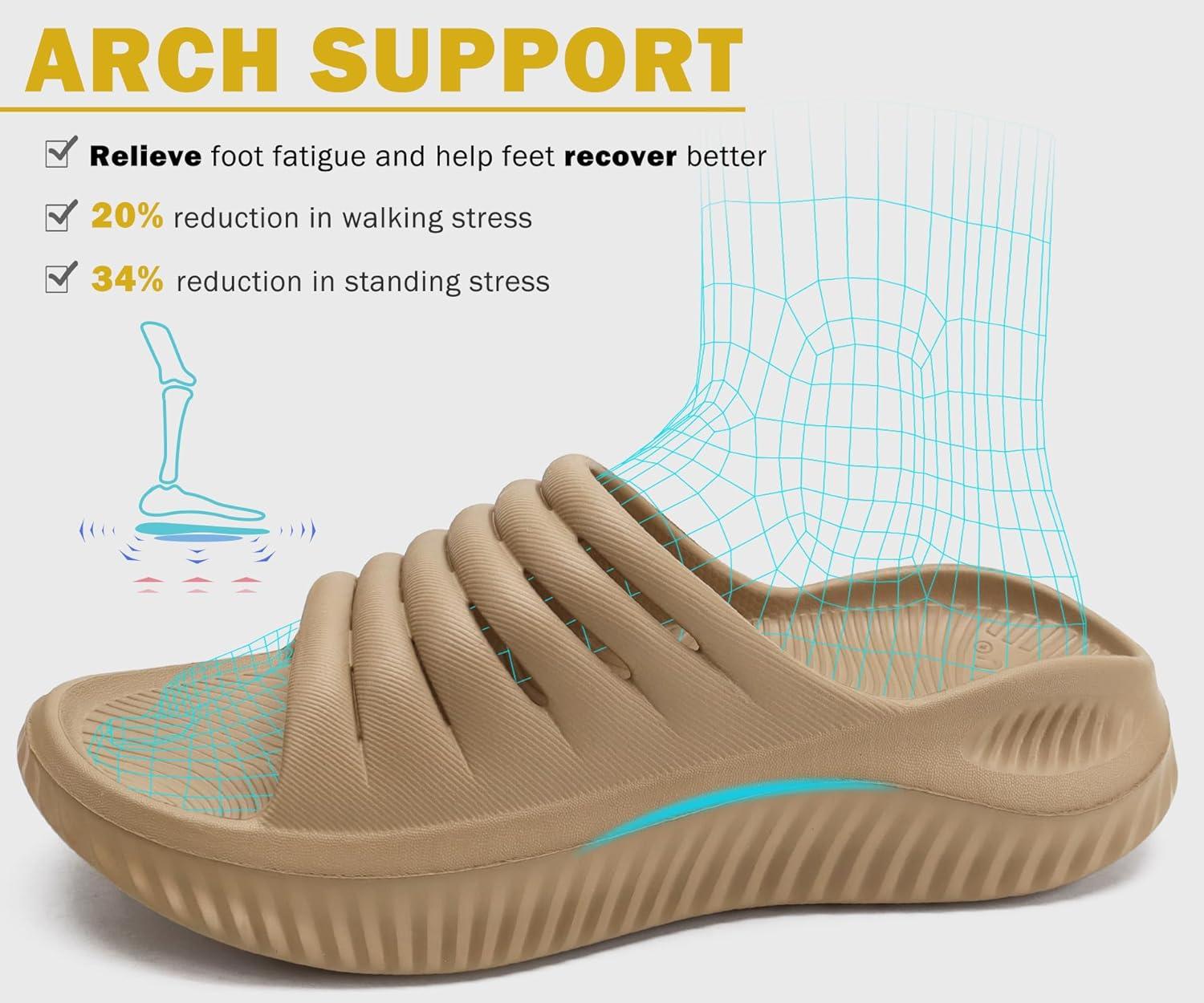 KuaiLu Womens Recovery Sandals With Comfortable Plantar Fasciitis Support,Ladies Orthotic Open Toe Sport Slides Thick Cushion Reduces Stress on Feet,Joints & Back Post-Exercise(Khaki White)