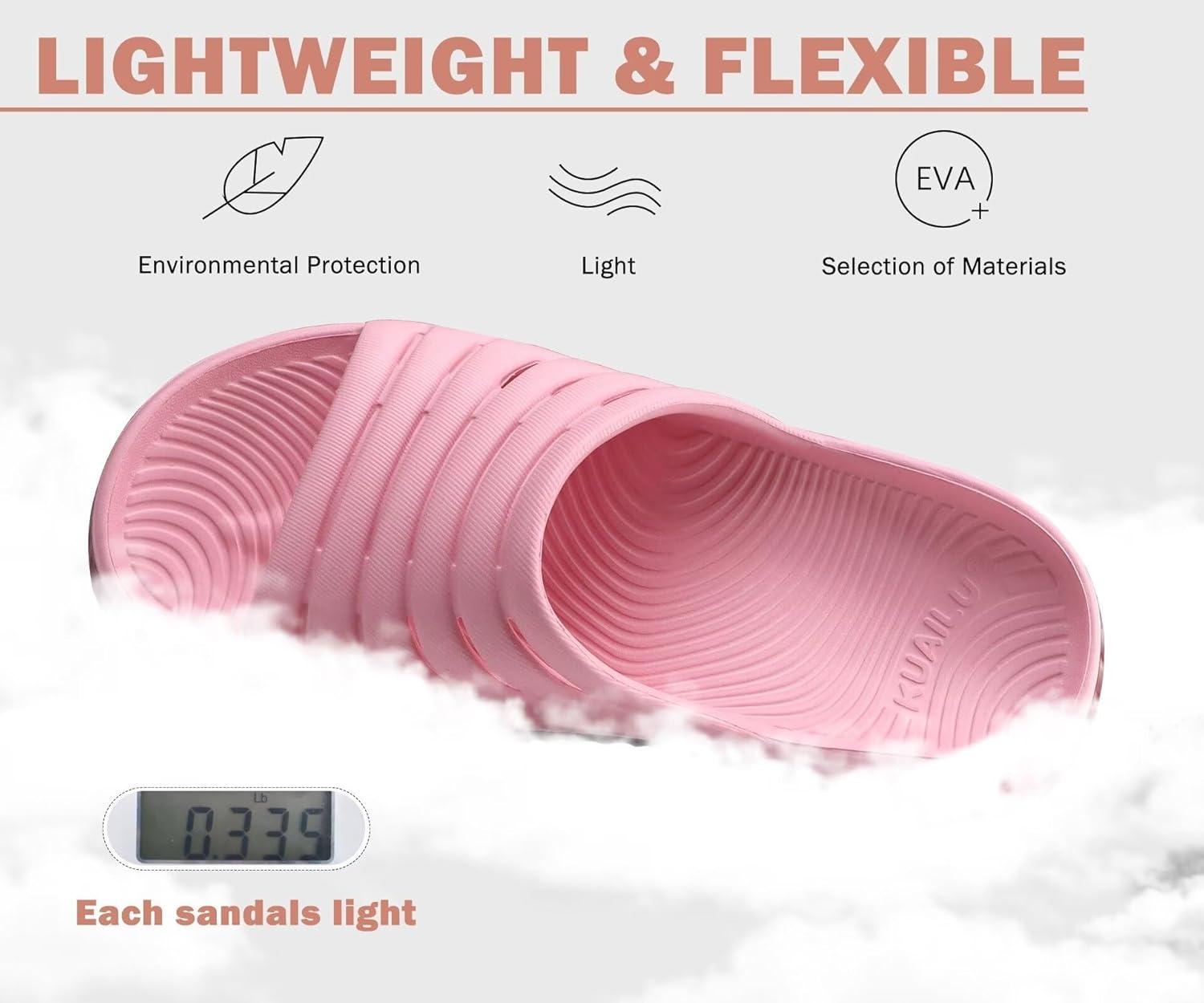 imageKuaiLu Womens Recovery Sandals With Comfortable Plantar Fasciitis SupportLadies Orthotic Open Toe Sport Slides Thick Cushion Reduces Stress on FeetJoints ampamp Back PostExercisePink White