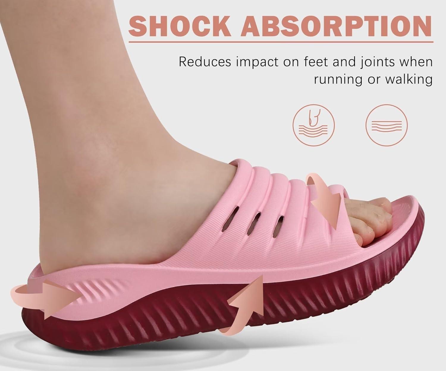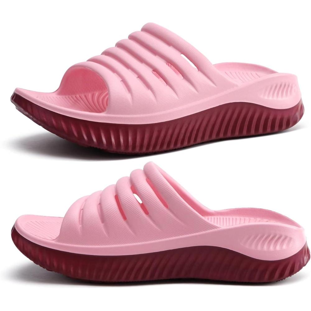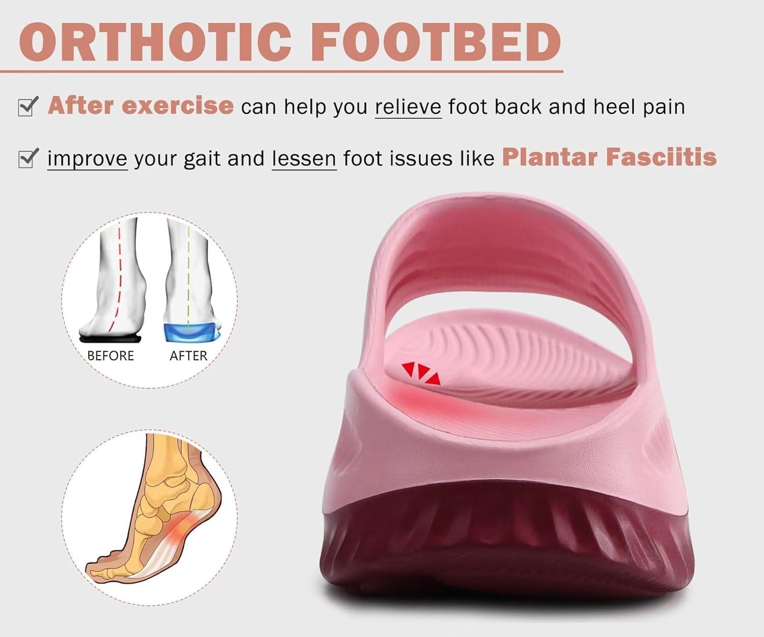 KuaiLu Womens Recovery Sandals With Comfortable Plantar Fasciitis Support,Ladies Orthotic Open Toe Sport Slides Thick Cushion Reduces Stress on Feet,Joints & Back Post-Exercise(Pink Wine)