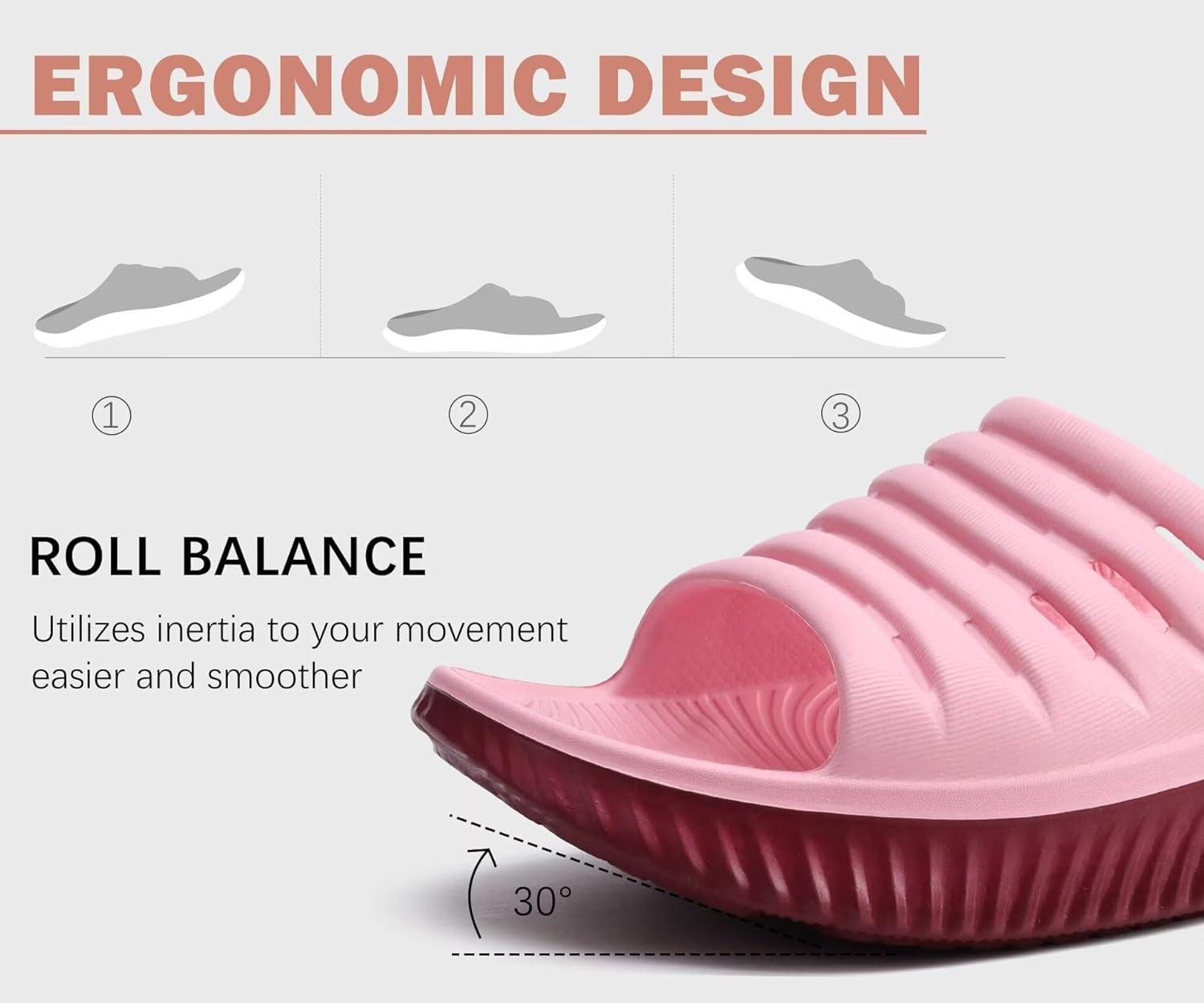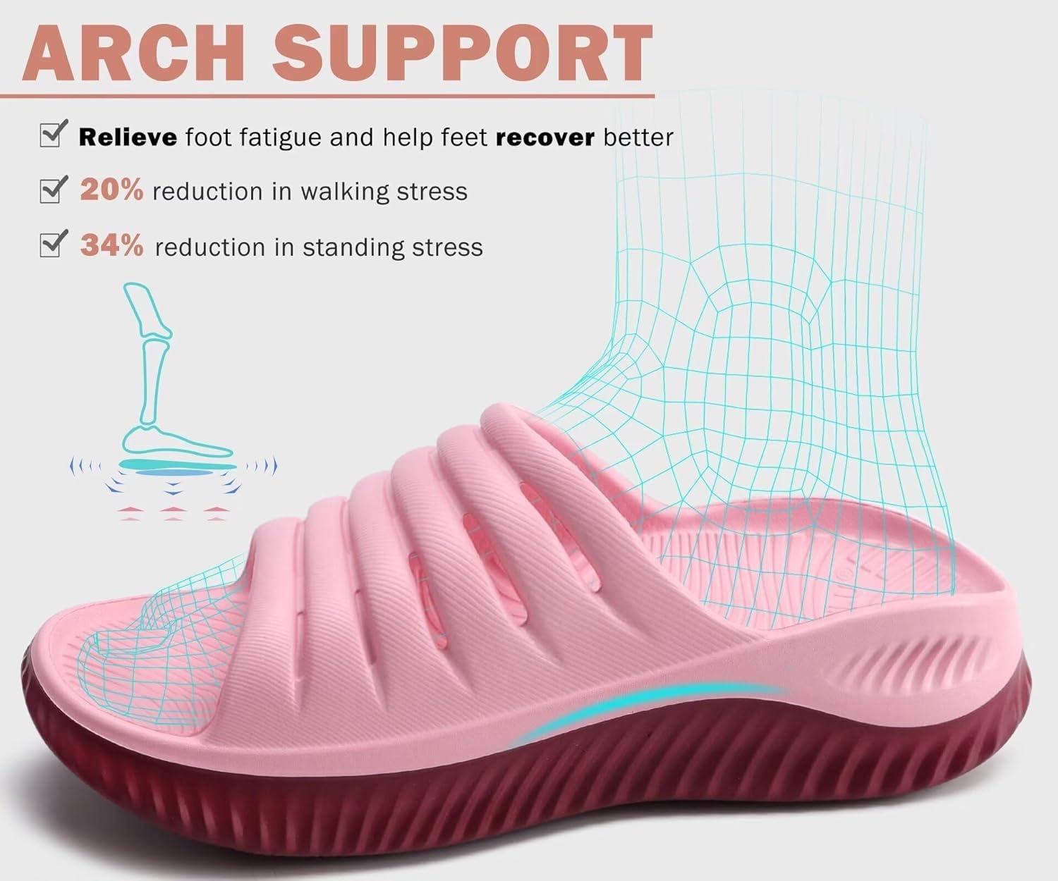 KuaiLu Womens Recovery Sandals With Comfortable Plantar Fasciitis Support,Ladies Orthotic Open Toe Sport Slides Thick Cushion Reduces Stress on Feet,Joints & Back Post-Exercise(Pink White)