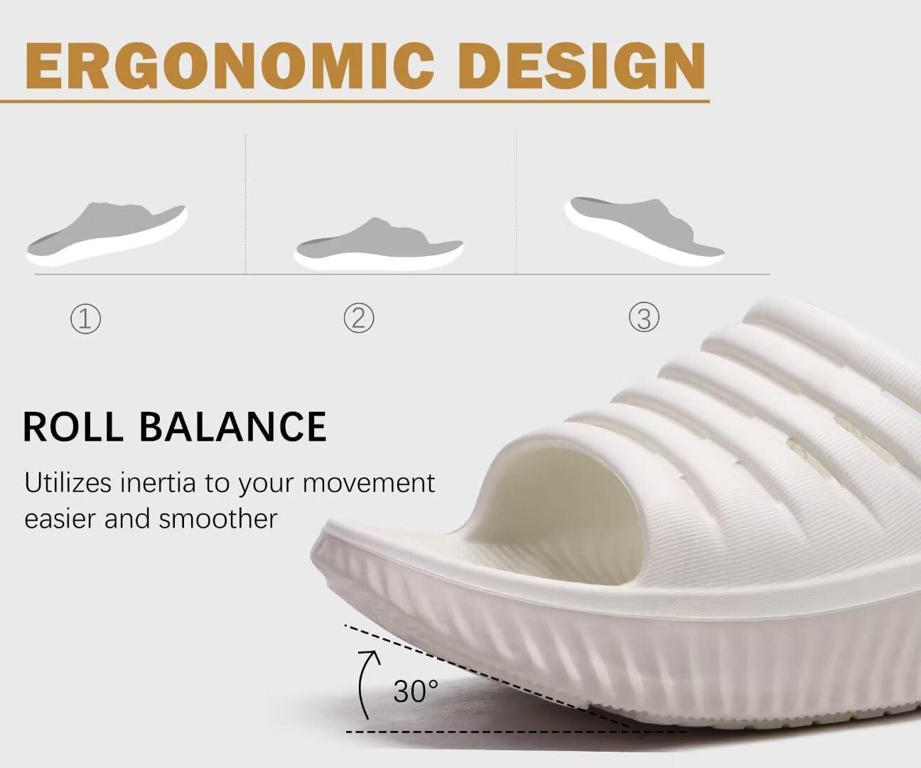 KuaiLu Womens Recovery Sandals With Comfortable Plantar Fasciitis Support,Ladies Orthotic Open Toe Sport Slides Thick Cushion Reduces Stress on Feet,Joints & Back Post-Exercise(White Black)