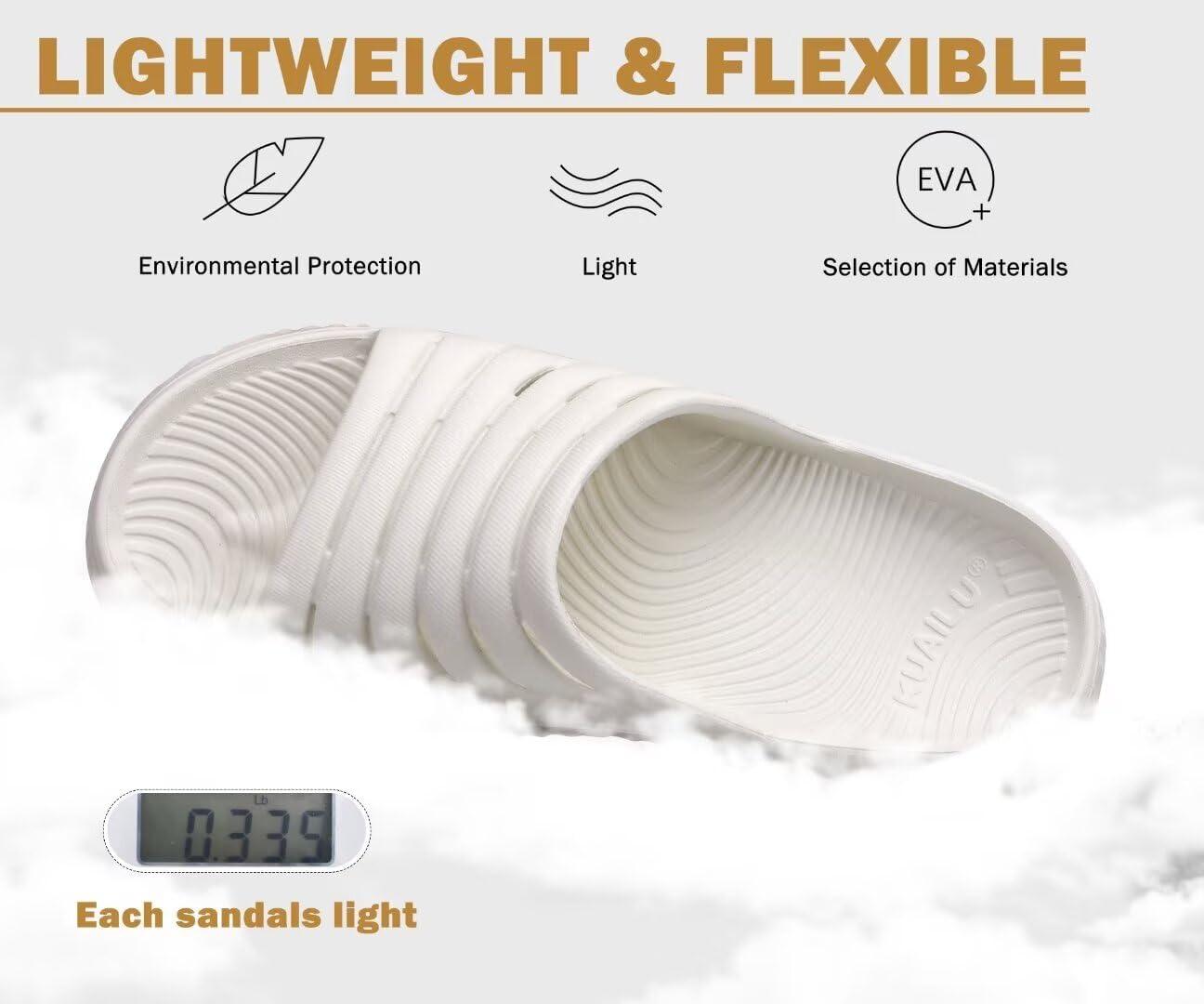 KuaiLu Womens Recovery Sandals With Comfortable Plantar Fasciitis Support,Ladies Orthotic Open Toe Sport Slides Thick Cushion Reduces Stress on Feet,Joints & Back Post-Exercise(White Beige)