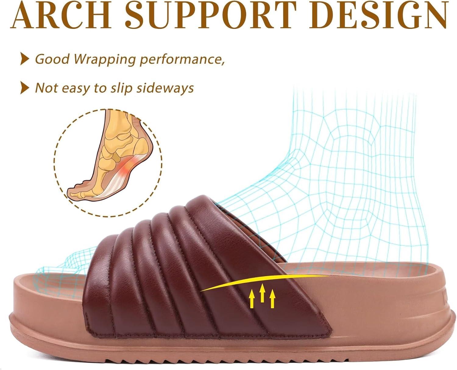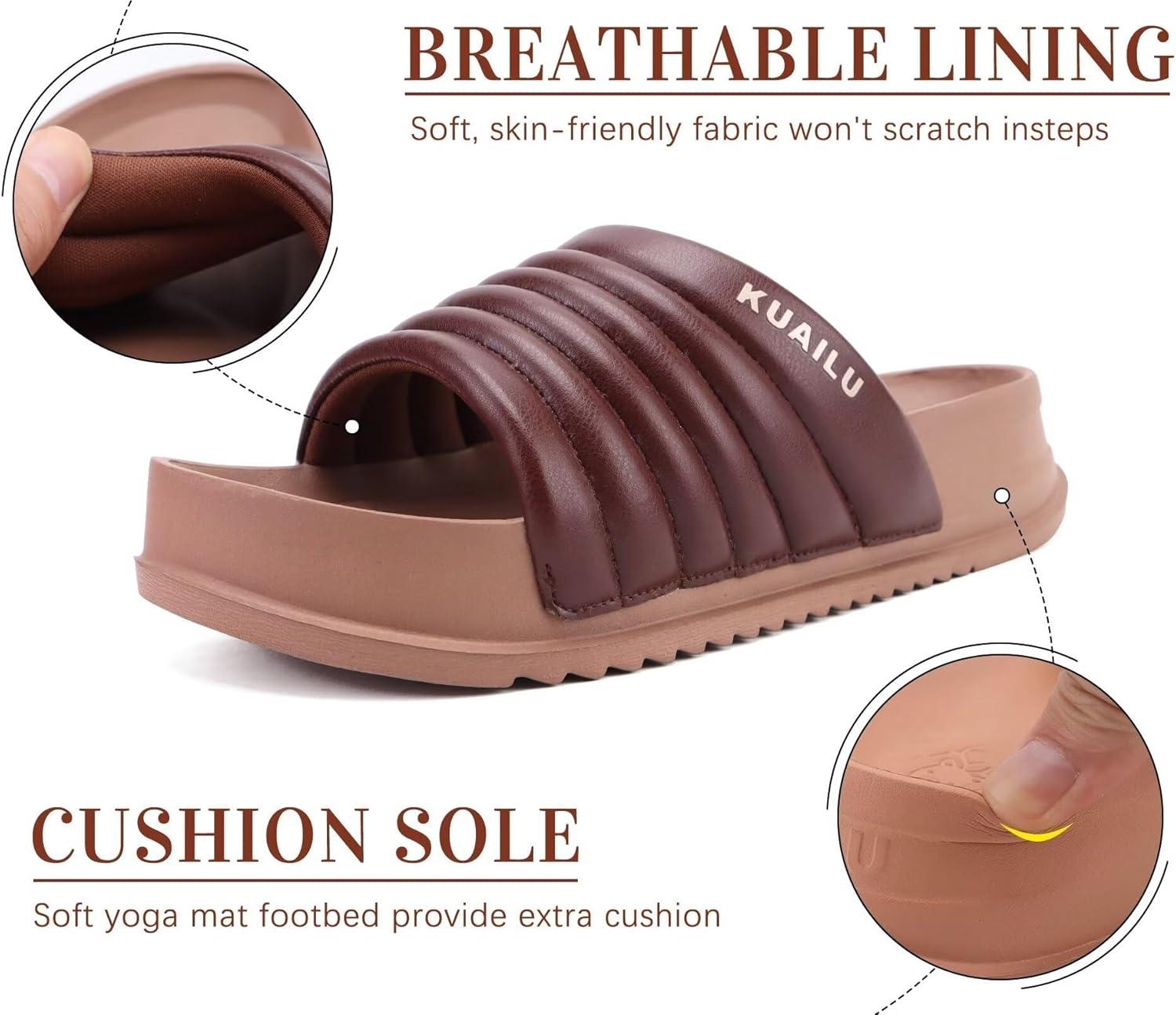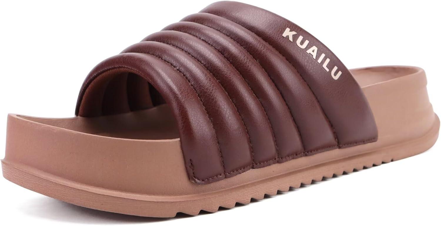 KuaiLu Womens Sandals with Arch Support Orthopedic Comfortable Lightweight Cushion Recovery Slides Summer Fashion Leather Casual Womans Plantar Fasciitis Sandals for Indoor&Outdoor (US Size 6-12)(Brown)