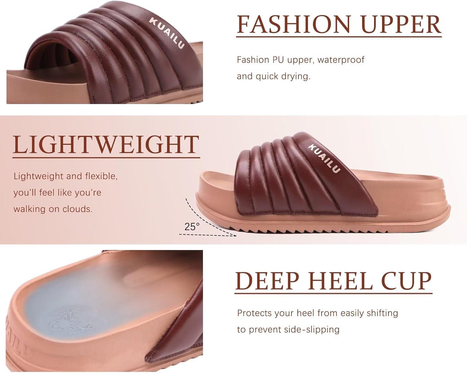 imageKuaiLu Womens Sandals with Arch Support Orthopedic Comfortable Lightweight Cushion Recovery Slides Summer Fashion Leather Casual Womans Plantar Fasciitis Sandals for IndoorampampOutdoor US Size 612Brown