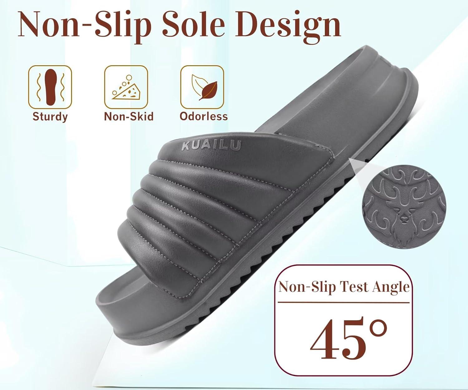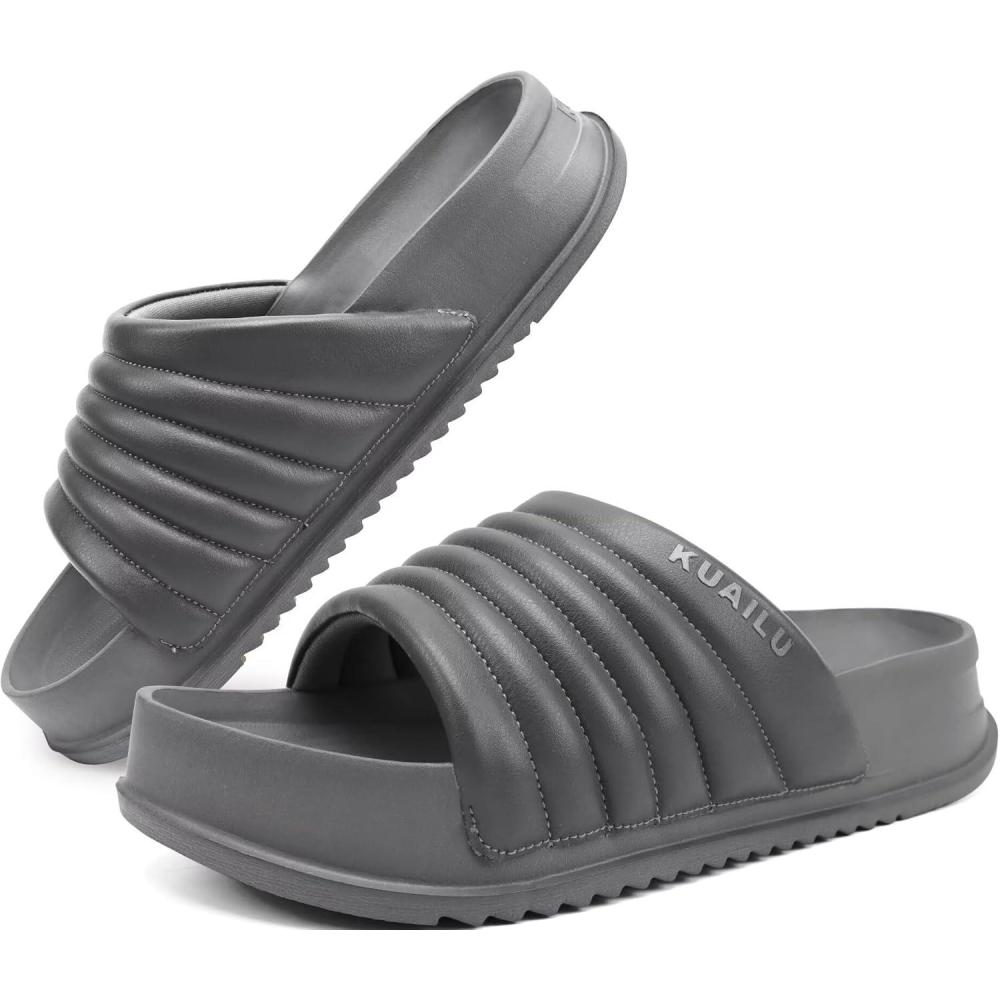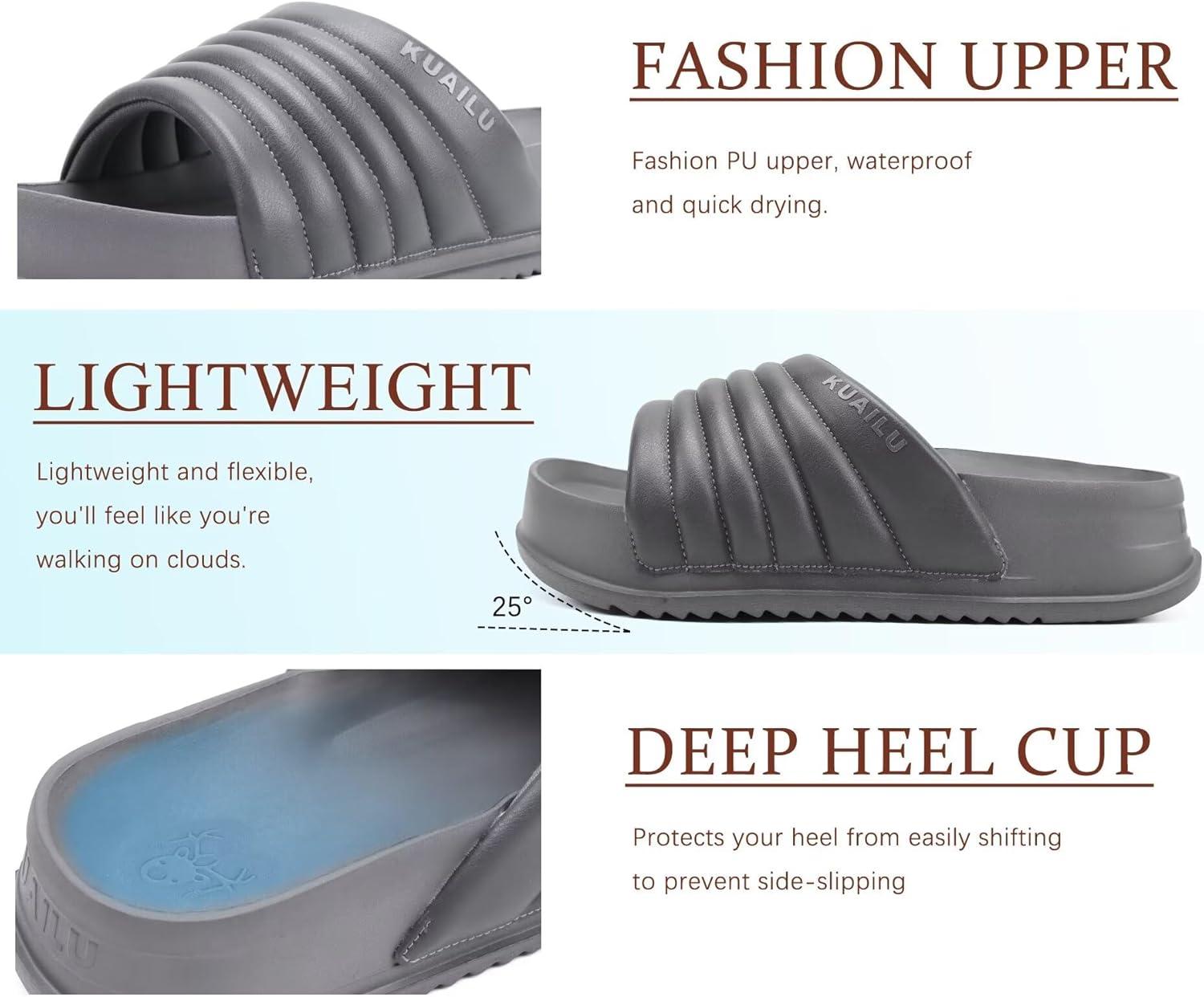 imageKuaiLu Womens Sandals with Arch Support Orthopedic Comfortable Lightweight Cushion Recovery Slides Summer Fashion Leather Casual Womans Plantar Fasciitis Sandals for IndoorampampOutdoor US Size 612Grey