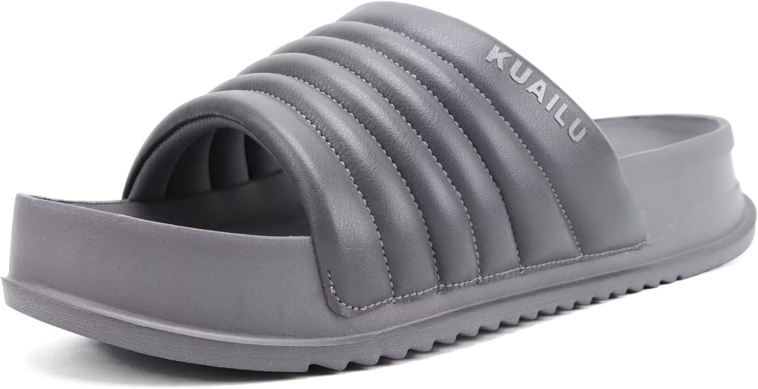 KuaiLu Womens Sandals with Arch Support Orthopedic Comfortable Lightweight Cushion Recovery Slides Summer Fashion Leather Casual Womans Plantar Fasciitis Sandals for Indoor&Outdoor (US Size 6-12)(Grey)