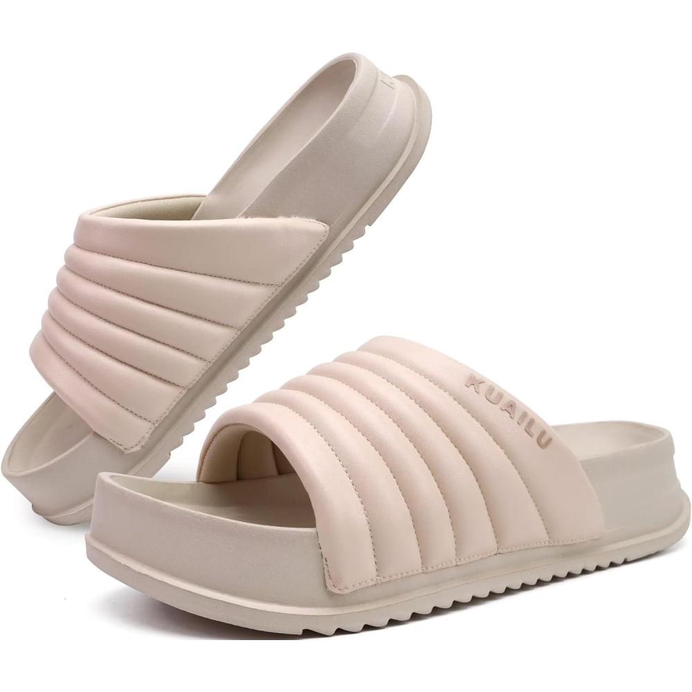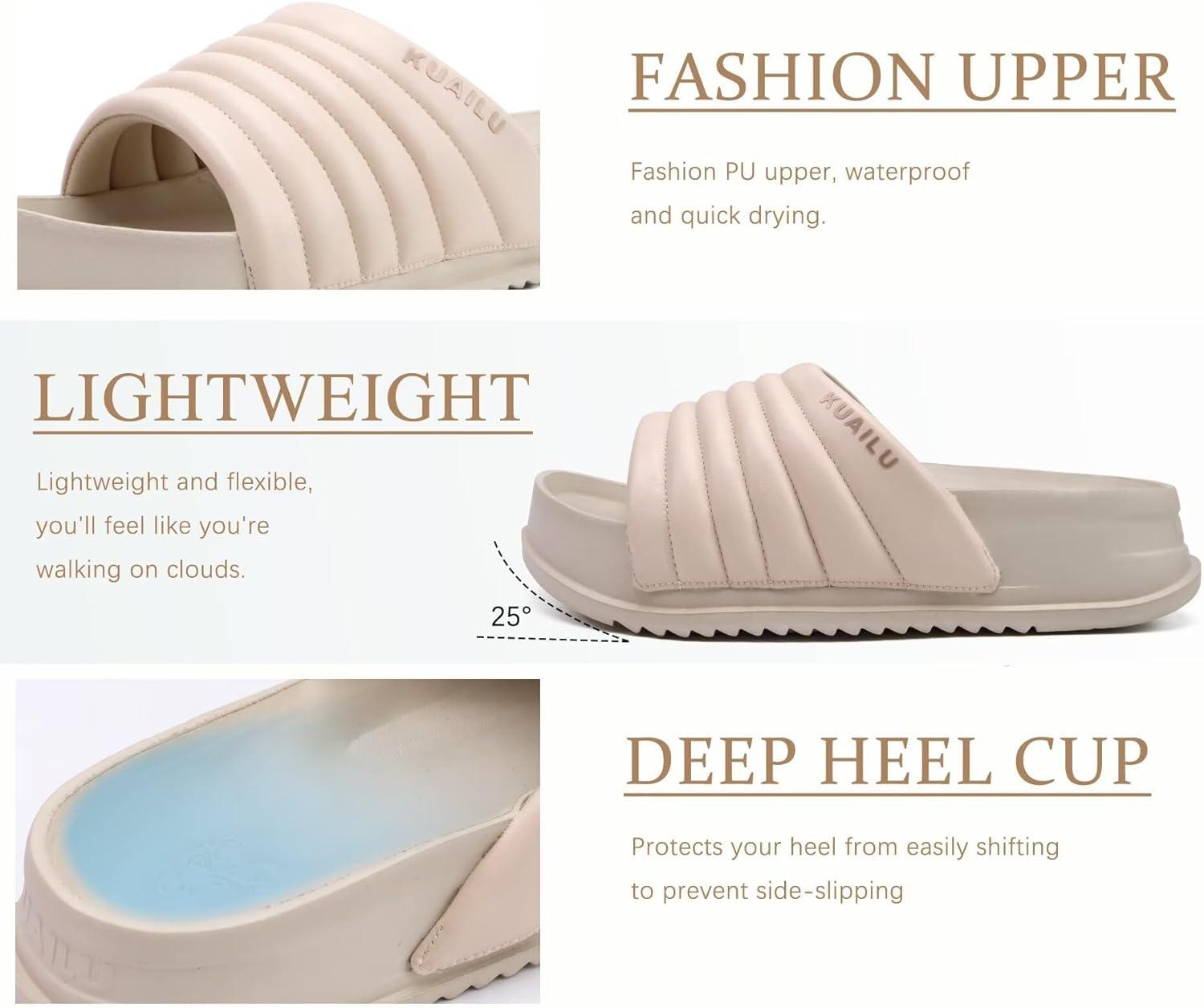 imageKuaiLu Womens Sandals with Arch Support Orthopedic Comfortable Lightweight Cushion Recovery Slides Summer Fashion Leather Casual Womans Plantar Fasciitis Sandals for IndoorampampOutdoor US Size 612Beige